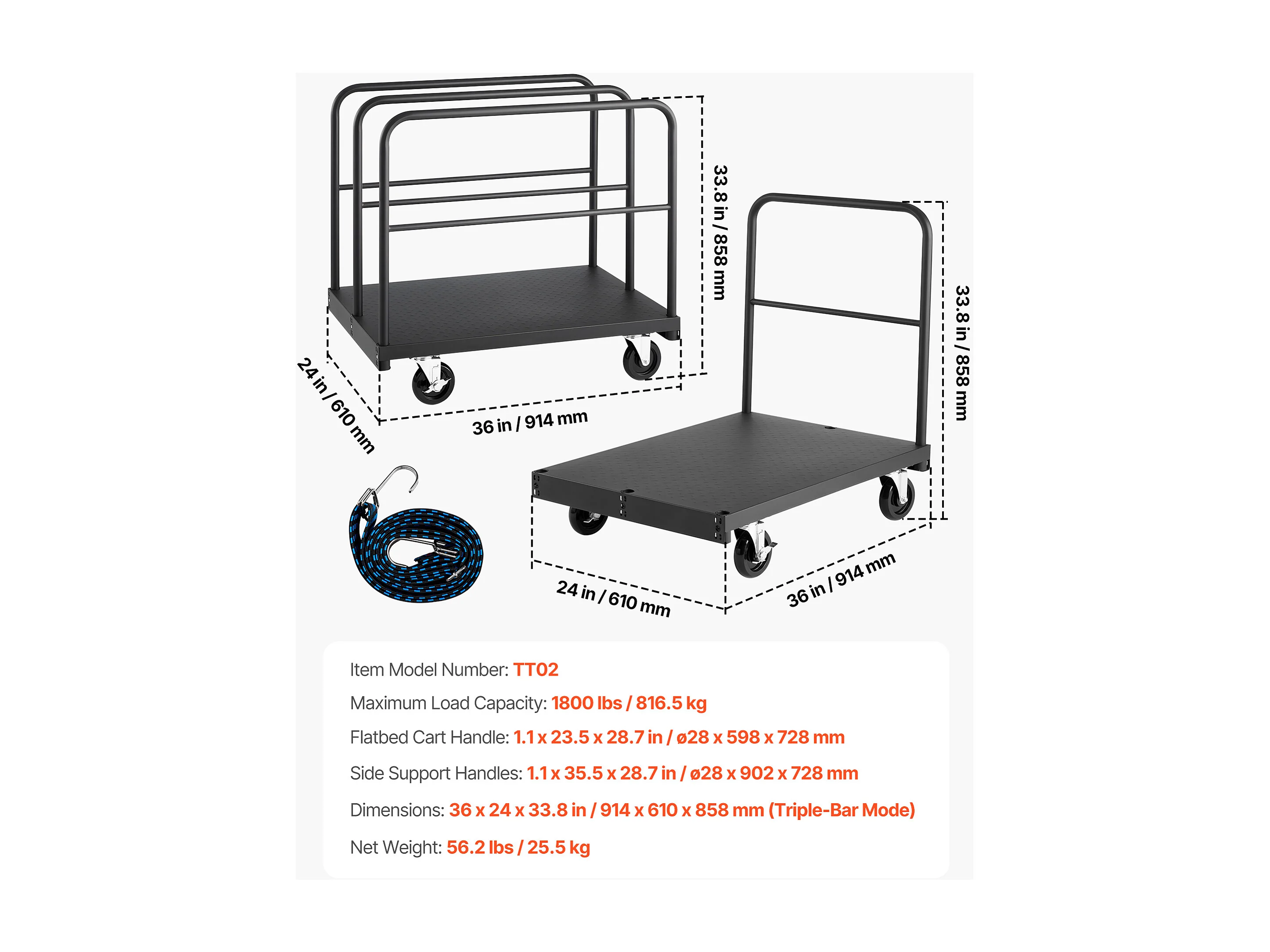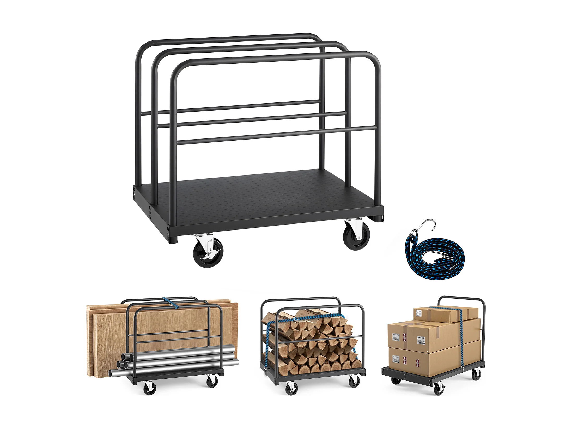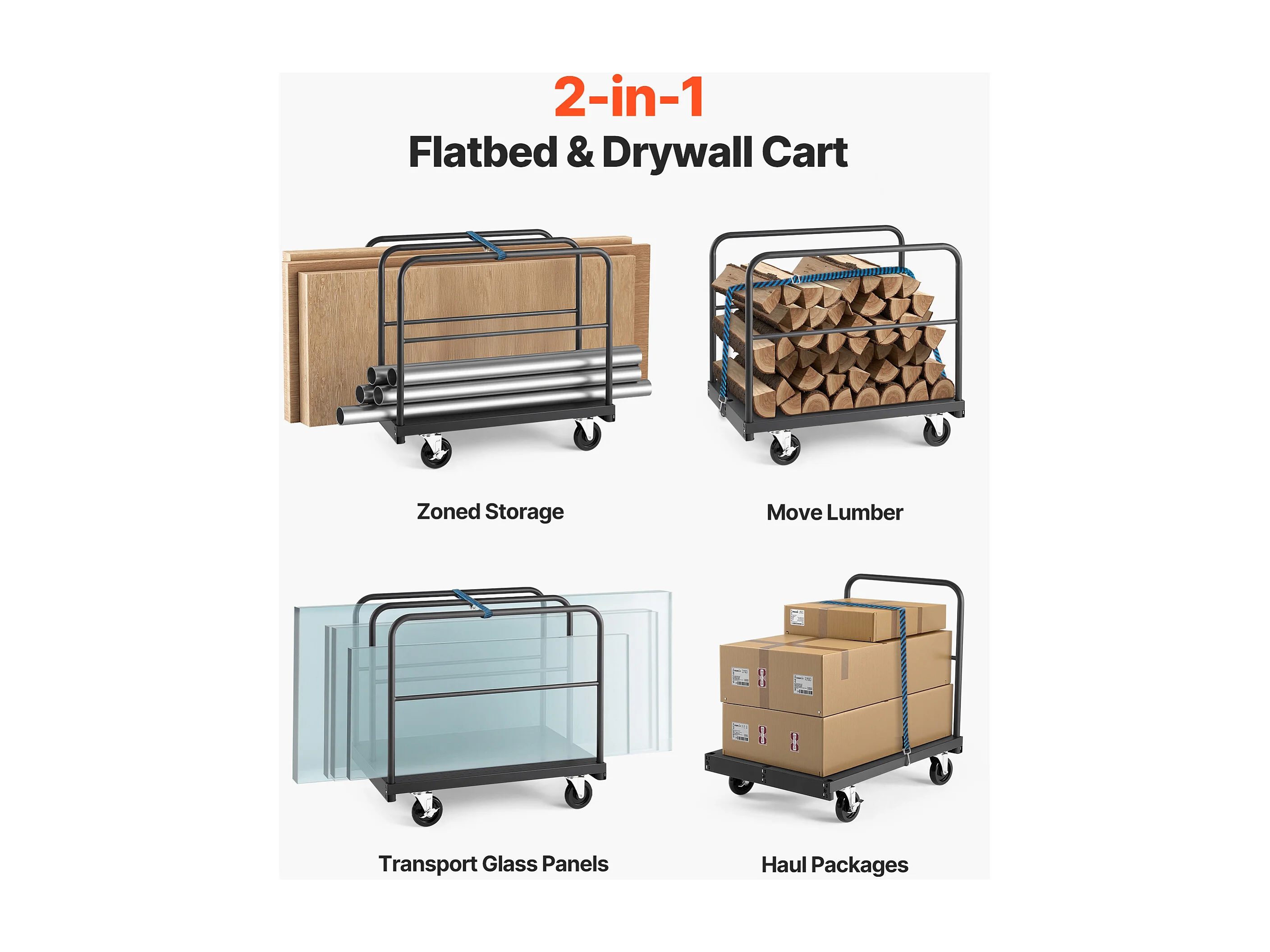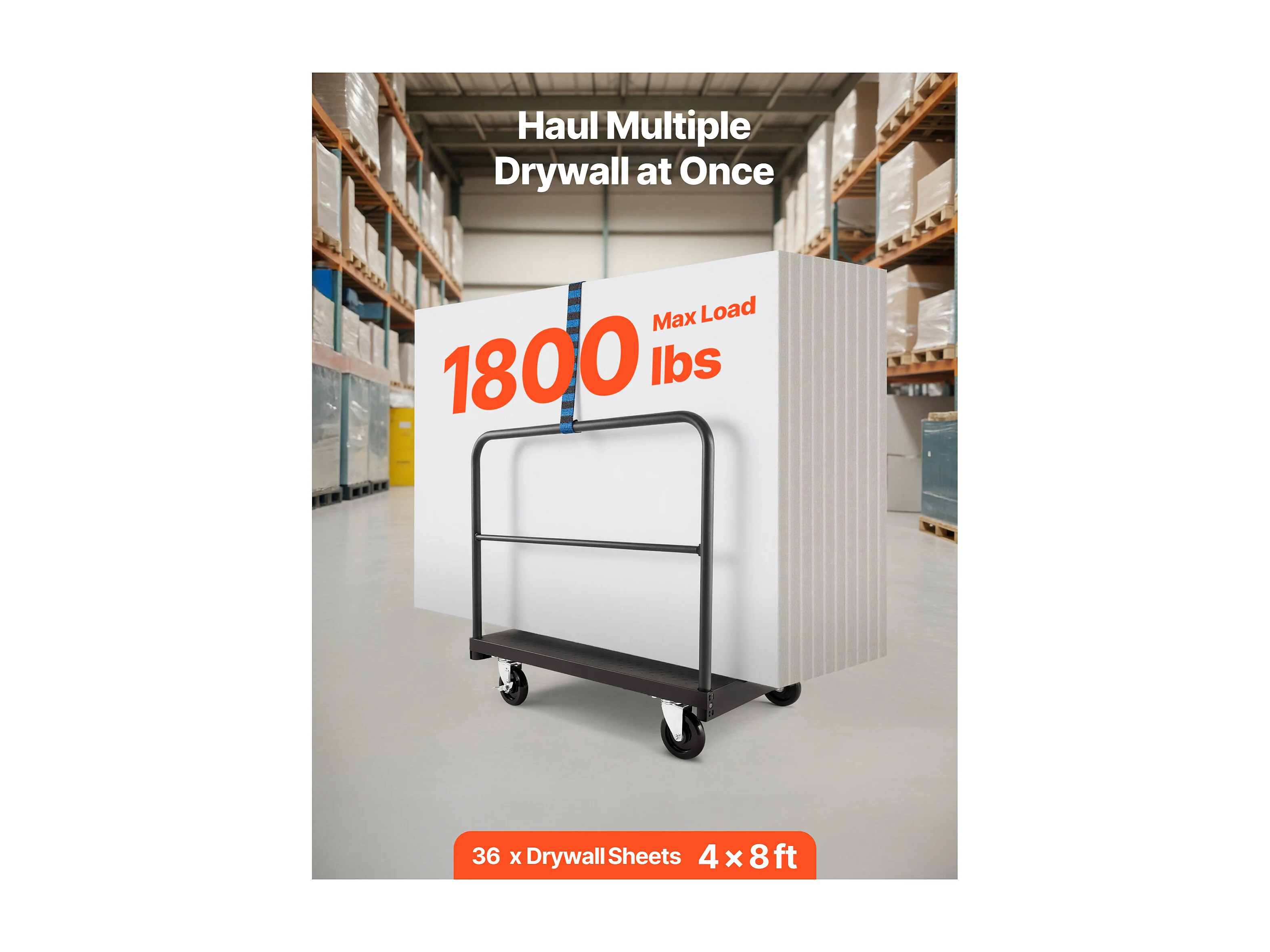 Chariot Porte-Plaques SucceBuy de Plâtre, Charge 816,5 kg, Chariot Porte-Panneaux de Cloisons Sèches à Plateforme 91.4 x 61 cm, pour Transport, Noir