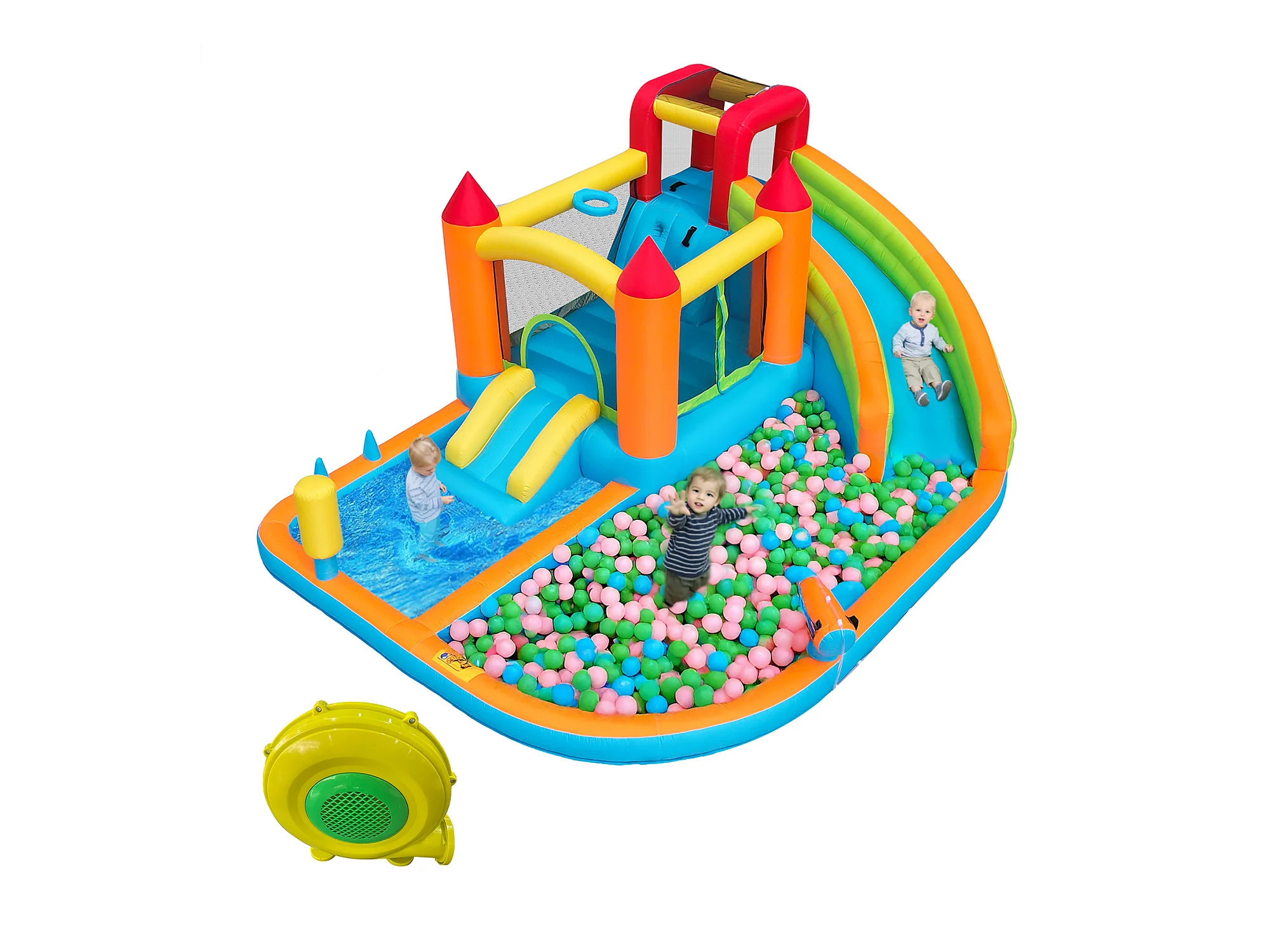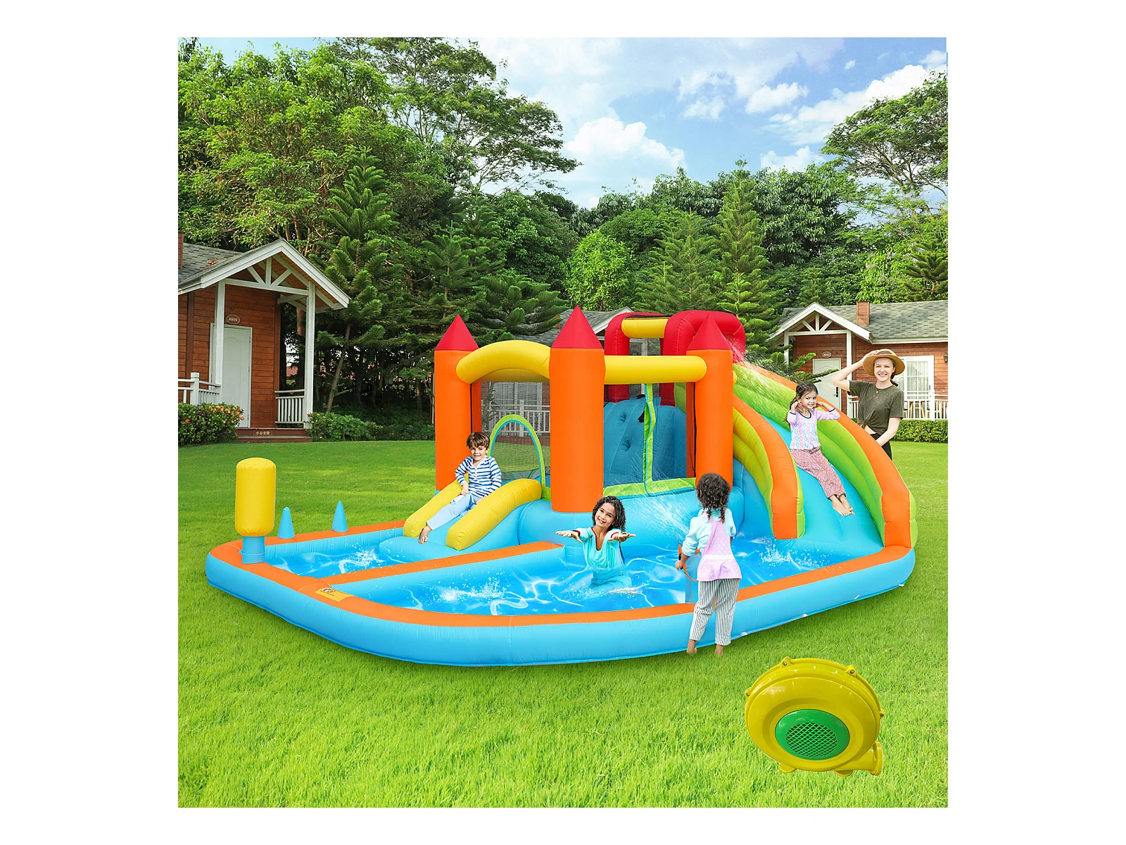 Château gonflable avec Souffleur, Piscine, Toboggan, pistolet à eau - 3 à 8 ans - charge max 180kg - 460x343x190cm