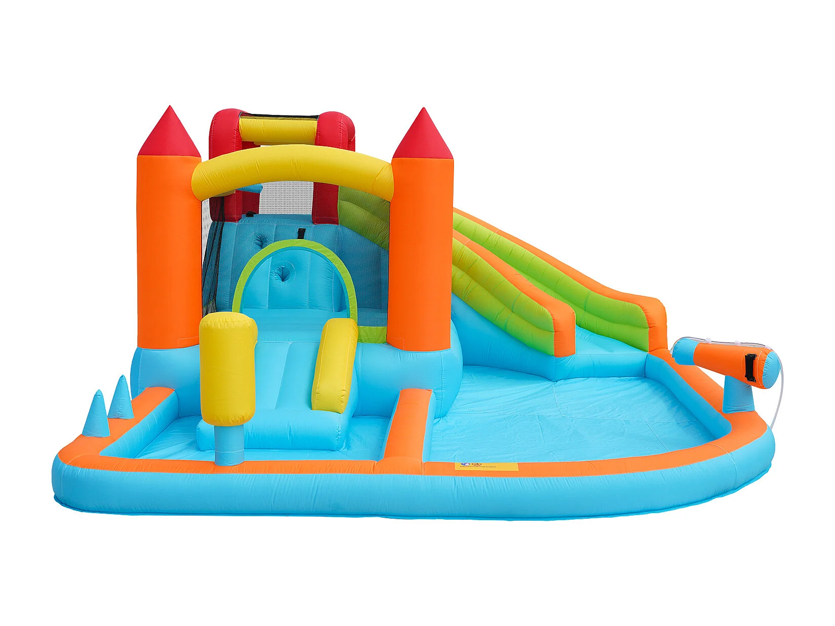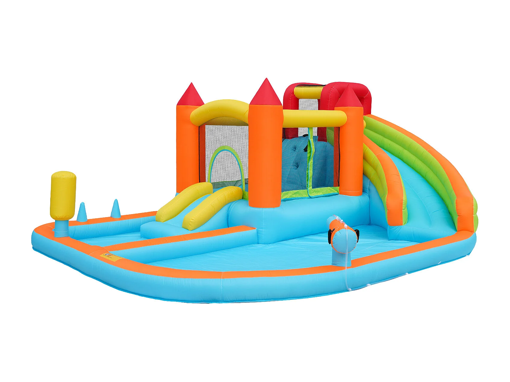 Château gonflable 450W, usage sec et humide, toboggan, trampoline, panier de basket, pistolets à eau, tissu Oxford orange