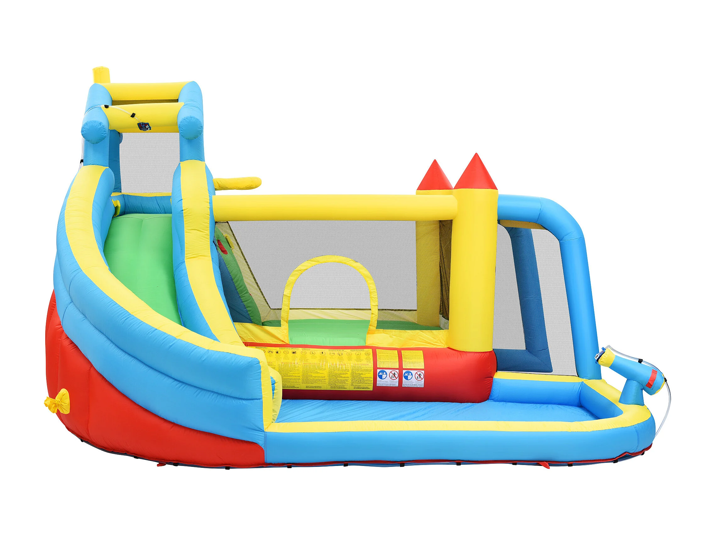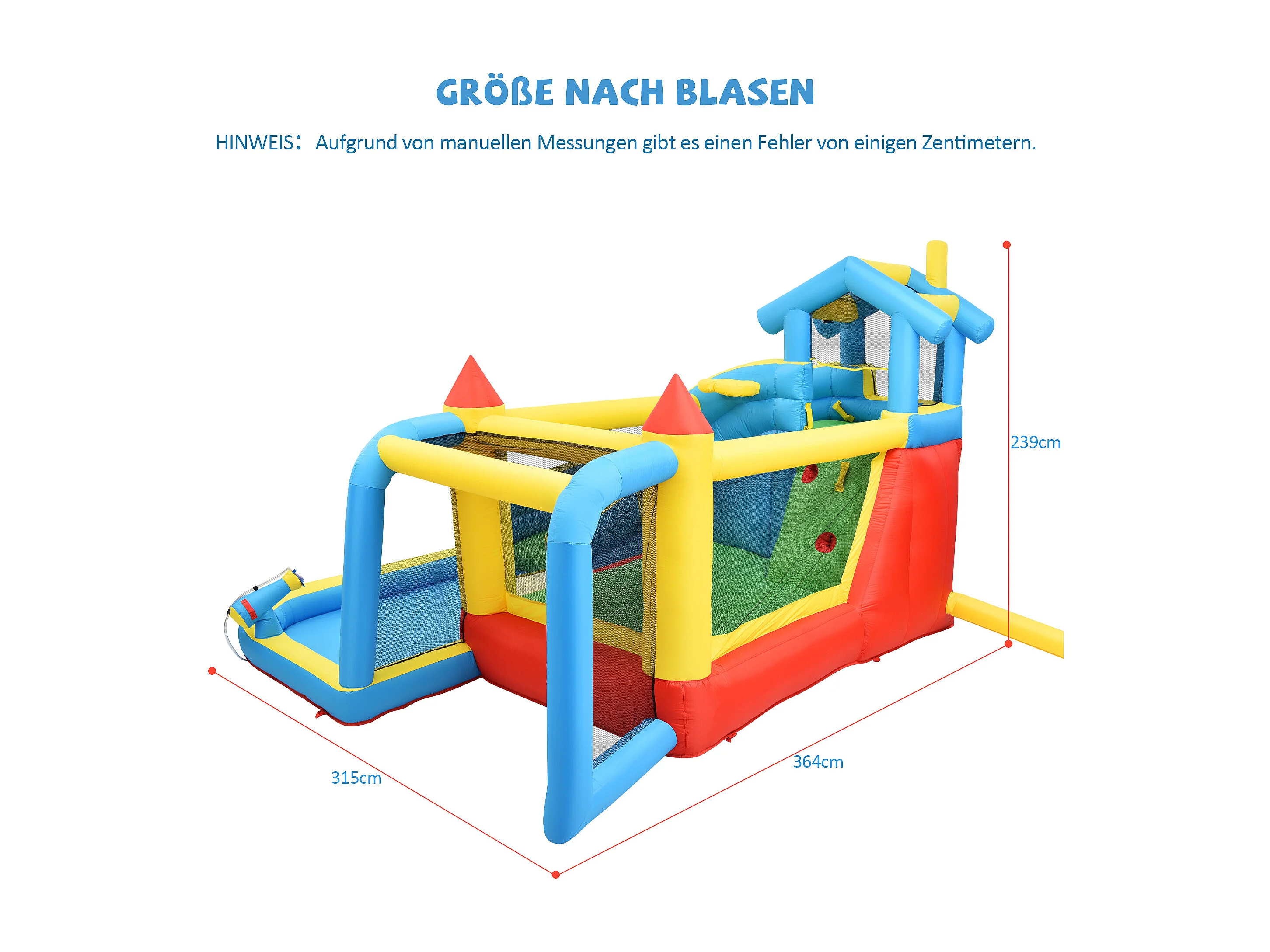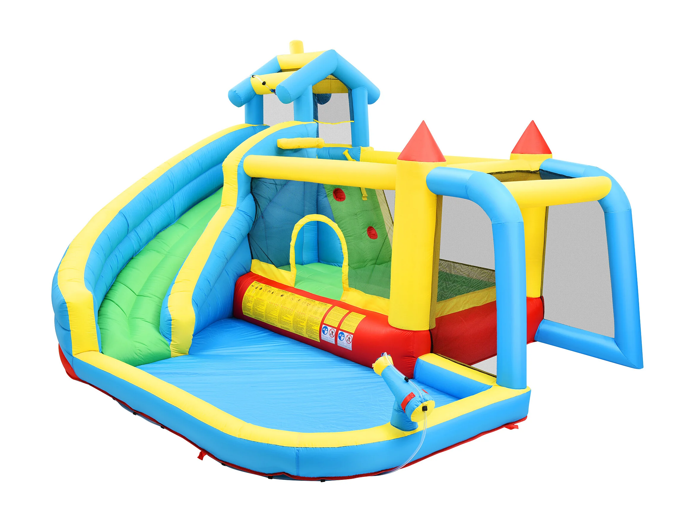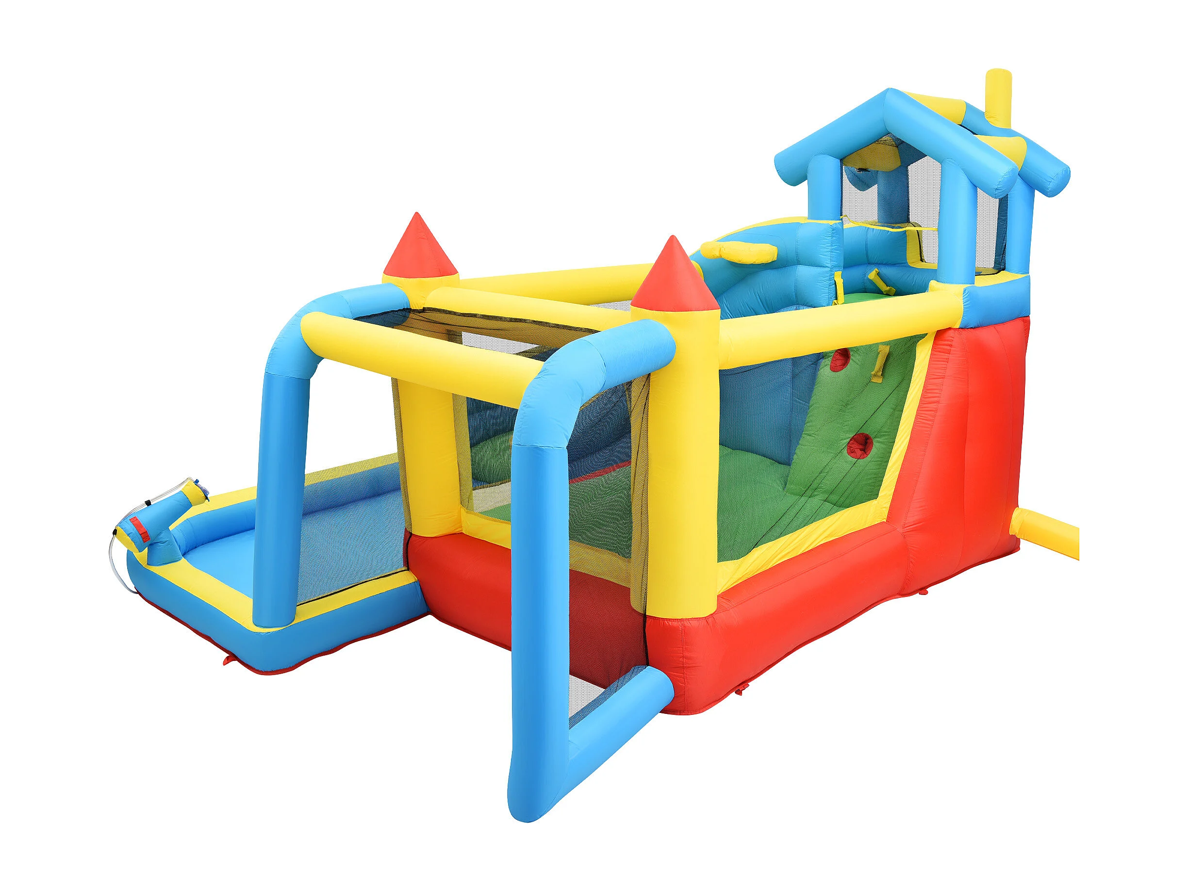 Château gonflable enfant 5-en-1 avec toboggan et piscine - Tissu Oxford bleu 364x315x239 cm