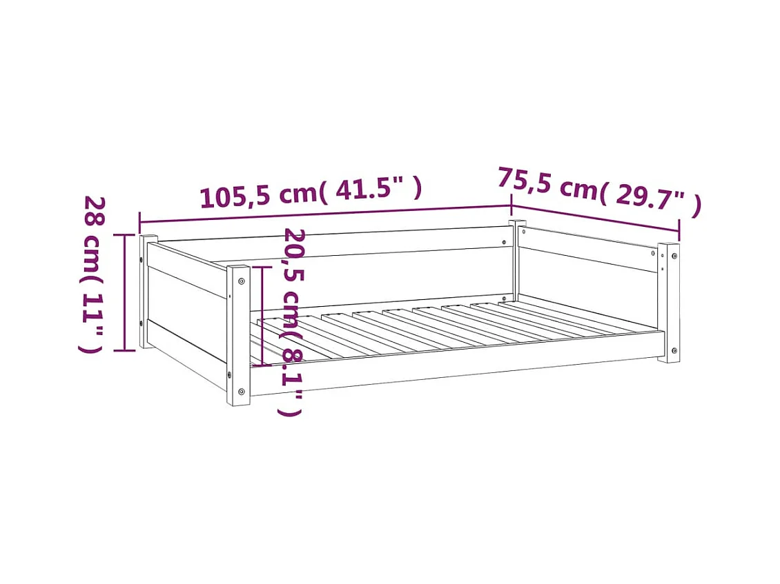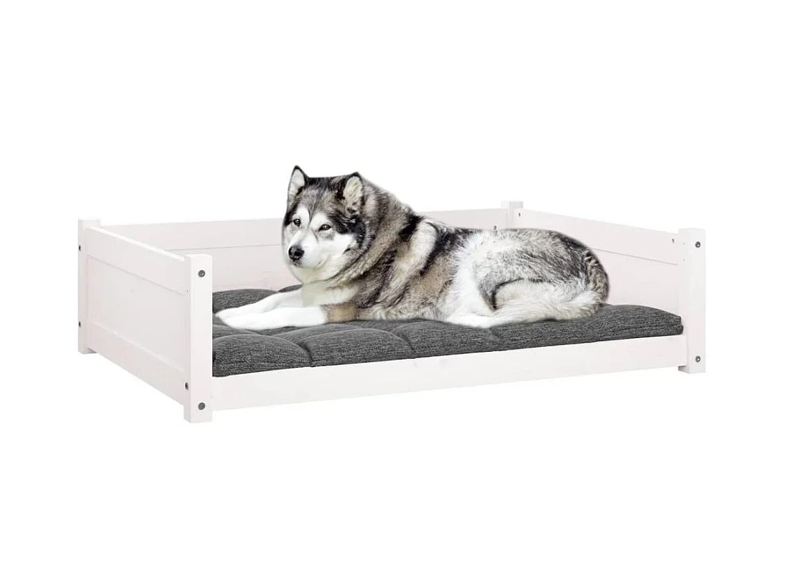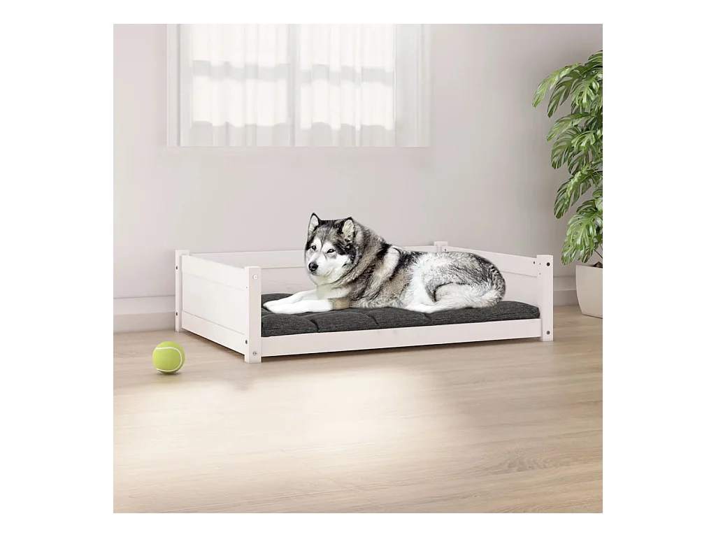 Lit pour chien blanc 105,5x75,5x28 cm bois de pin solide