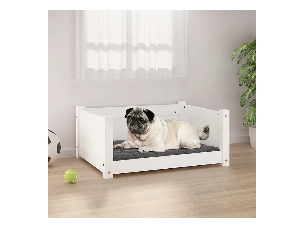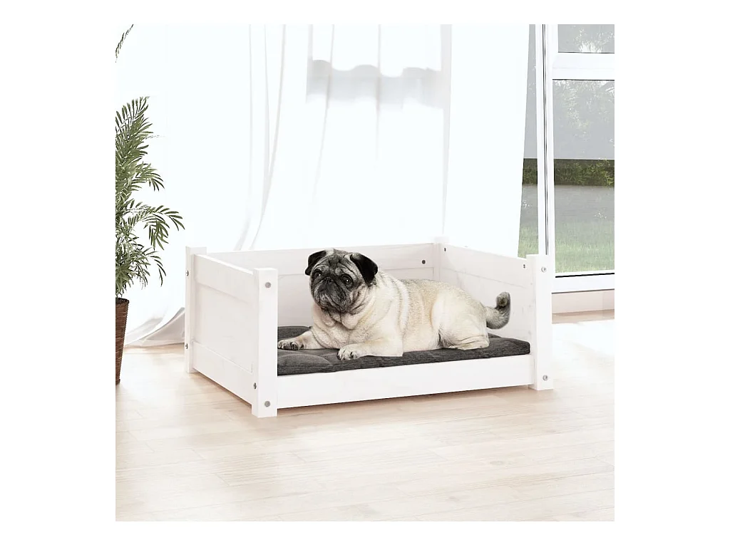 Lit pour chien blanc 105,5x75,5x28 cm bois de pin solide