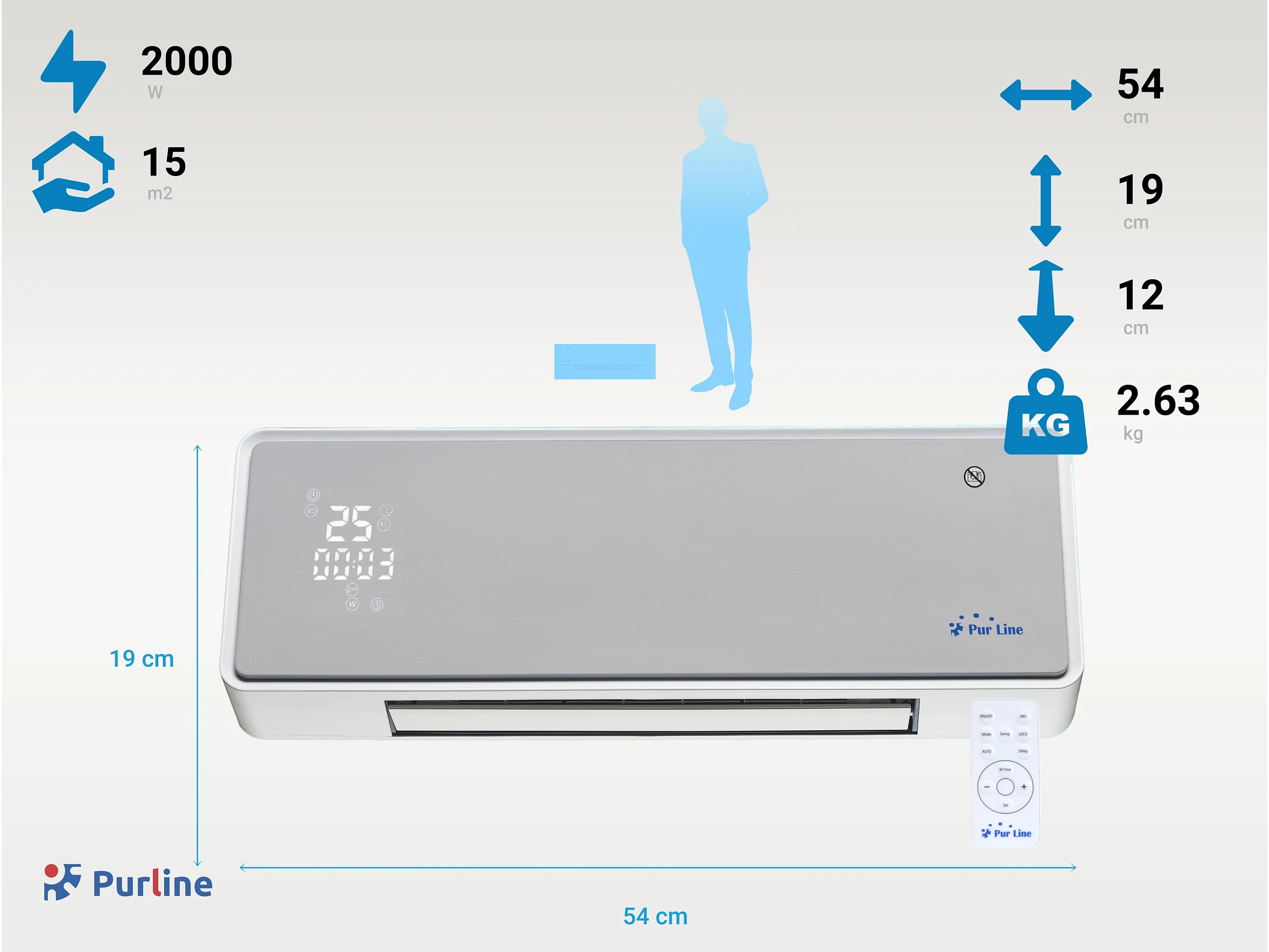 Chauffage split mural 2000 W avec télécommande et minuterie