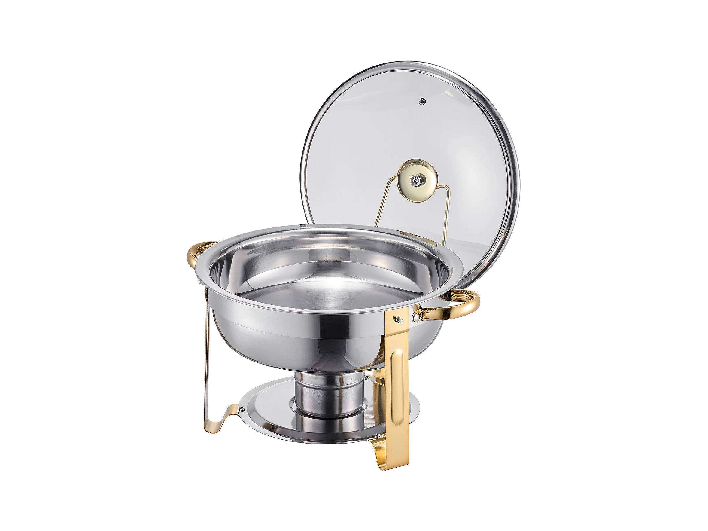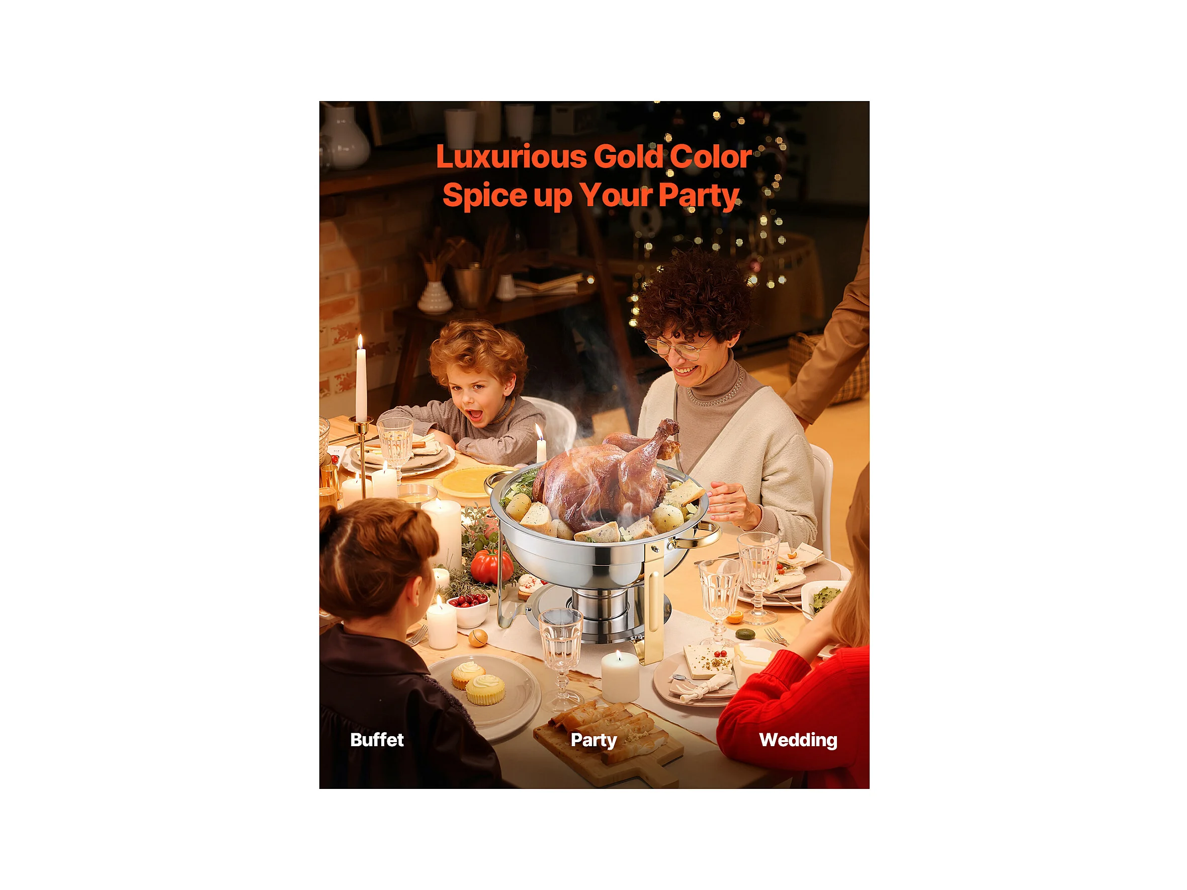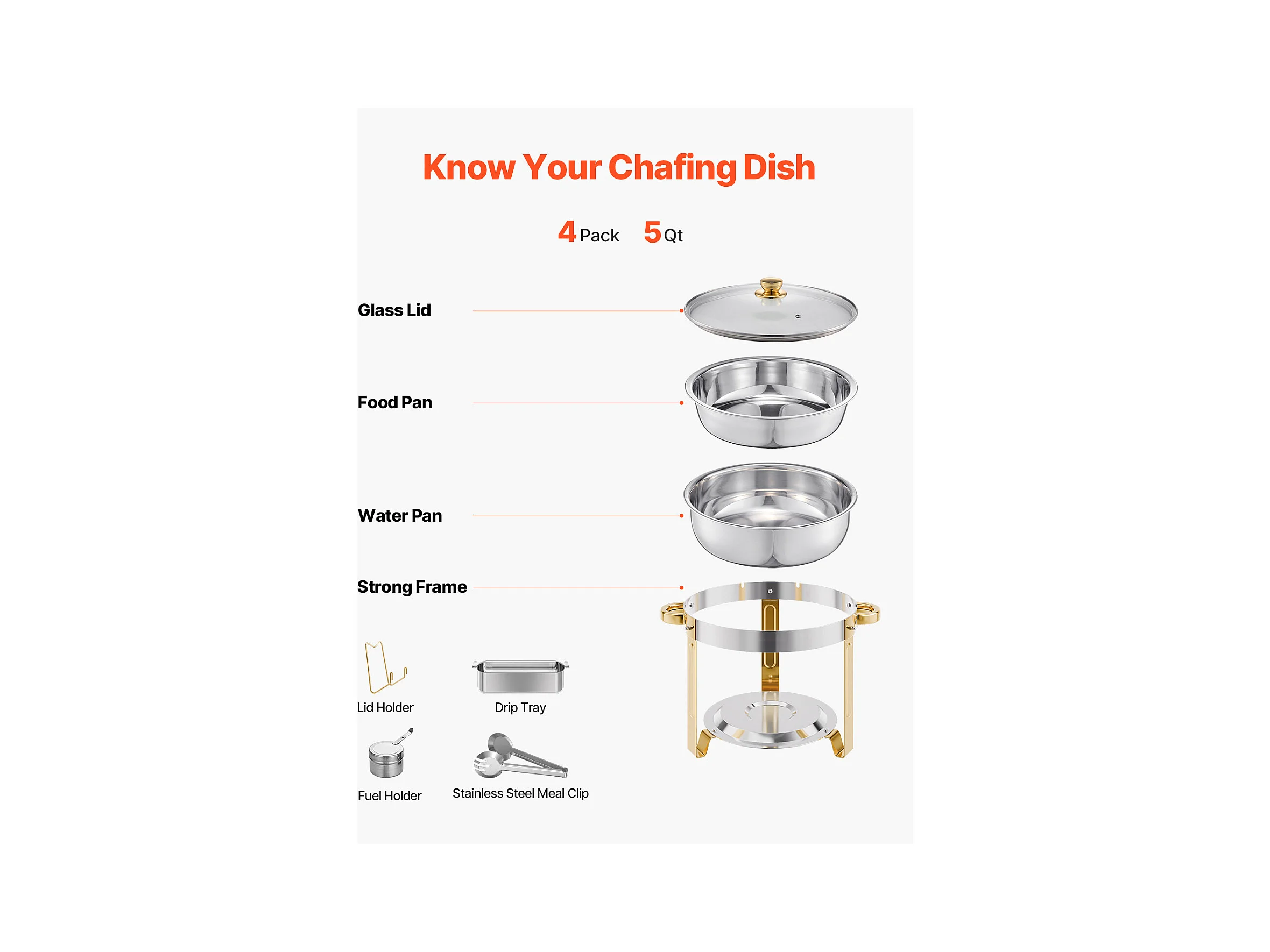 Chauffe-Plats SucceBuy Chauffe-Plat Buffet Rond 4 Pièces 4.7 L Buffet Chauffant Rond, Réchaud en Acier Inoxydable, avec 4 Bacs de Grande Capacité
