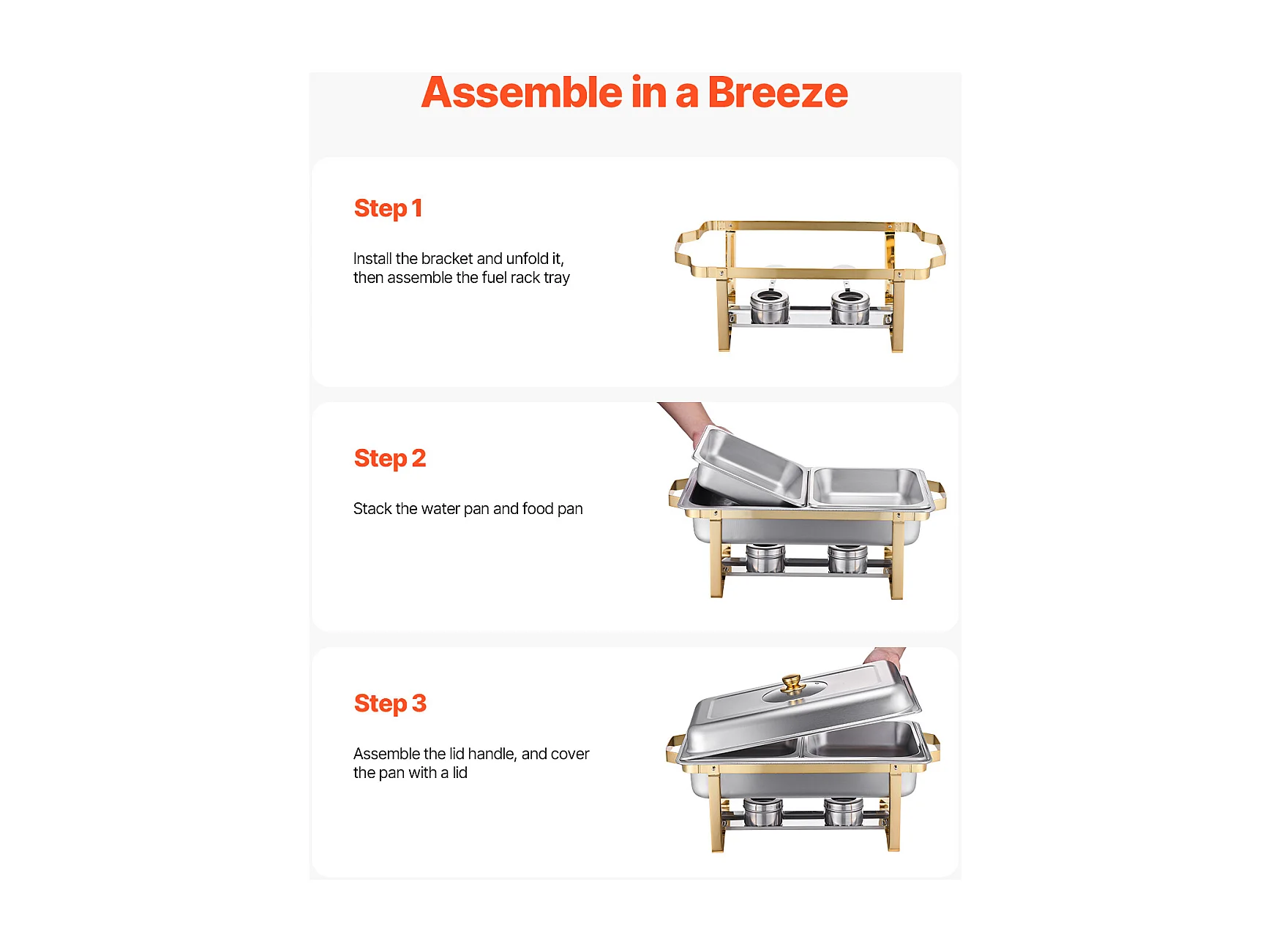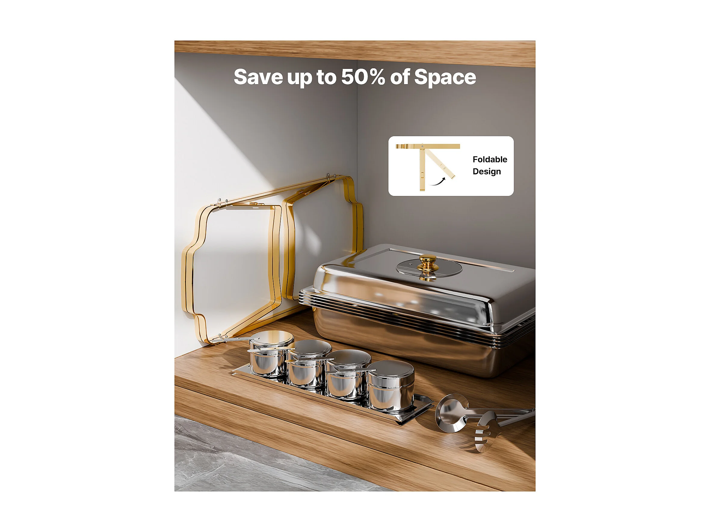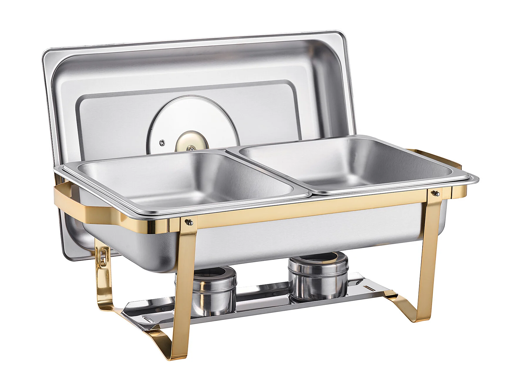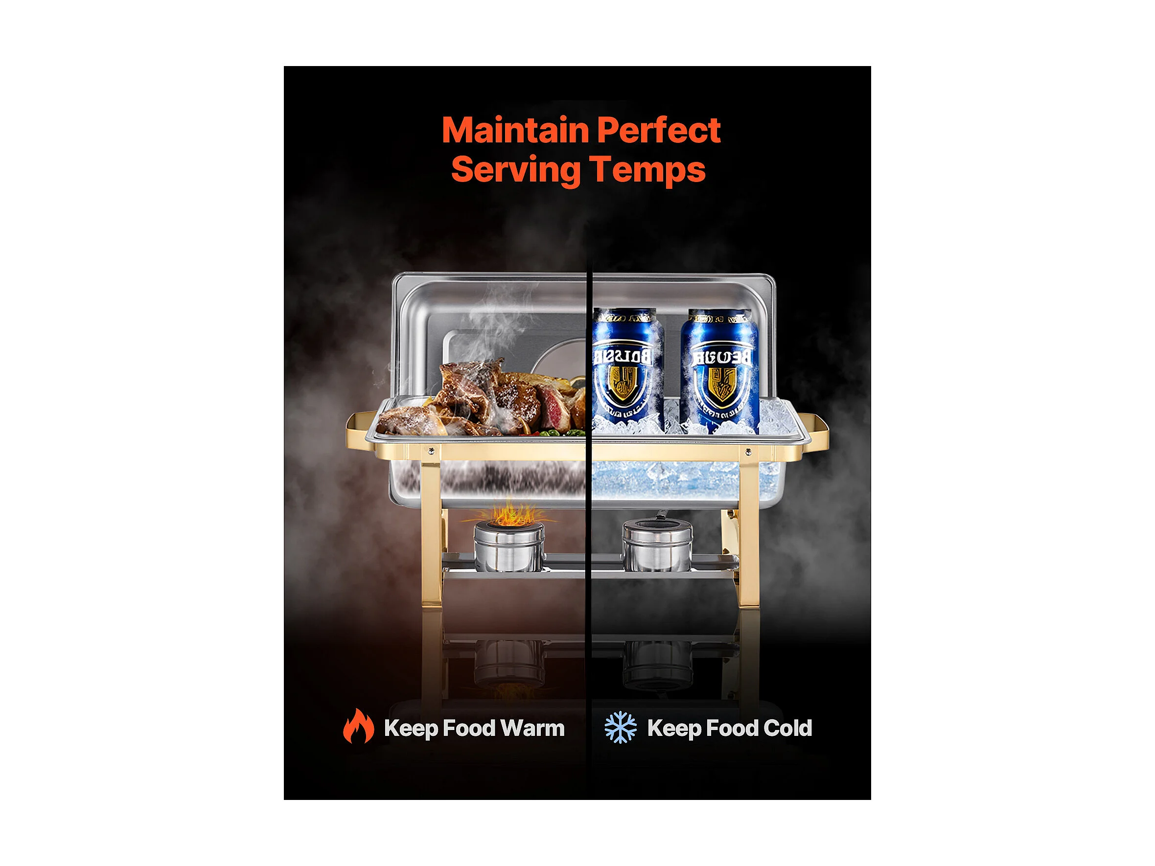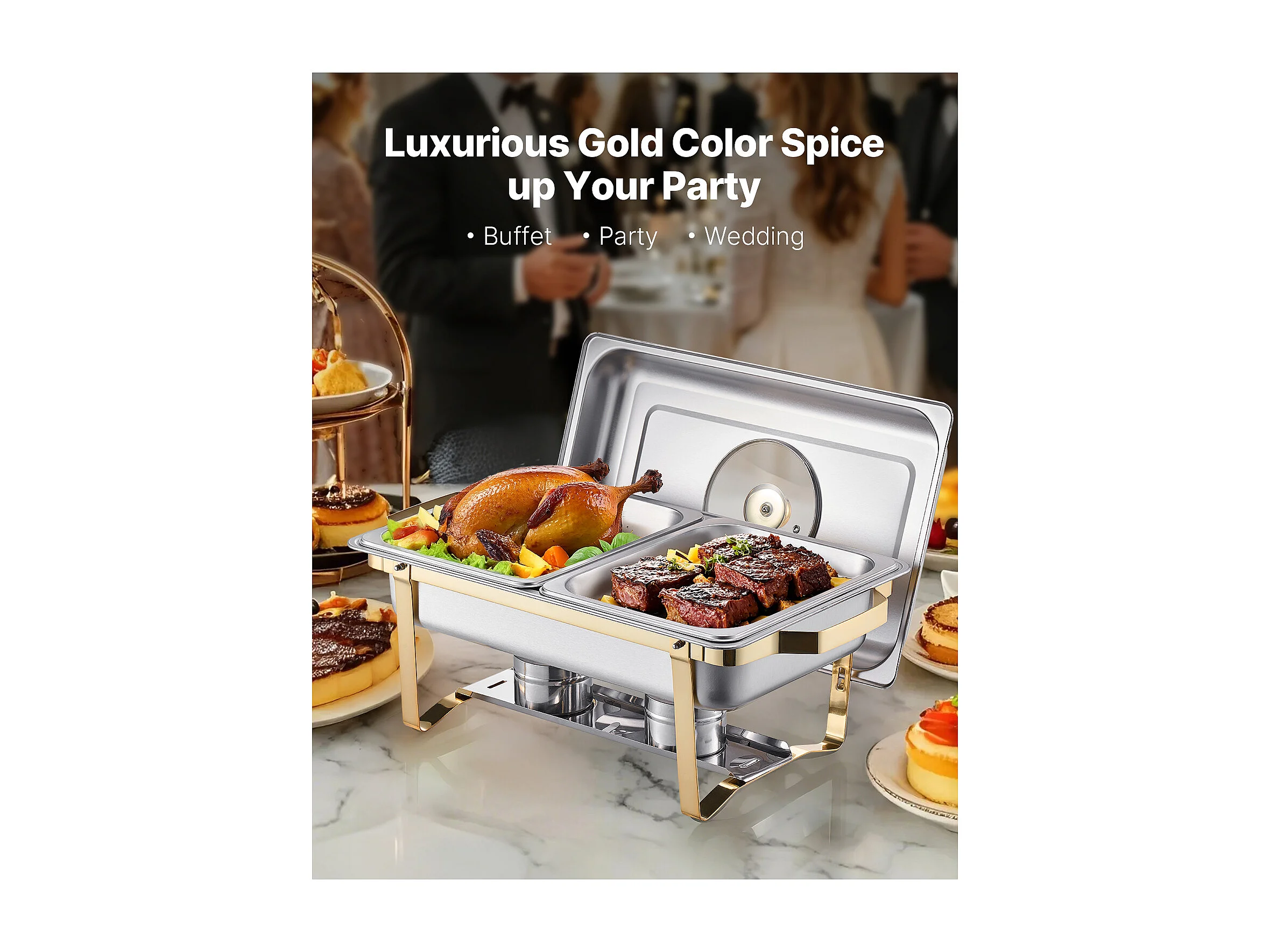 Chauffe-Plats SucceBuy Chauffe-Plat Rectangulaire Lot de 4 Pièces 7,5 L en Acier Inoxydable Doré, Idéal pour Buffet, Hôtel, Traiteur et Restauration