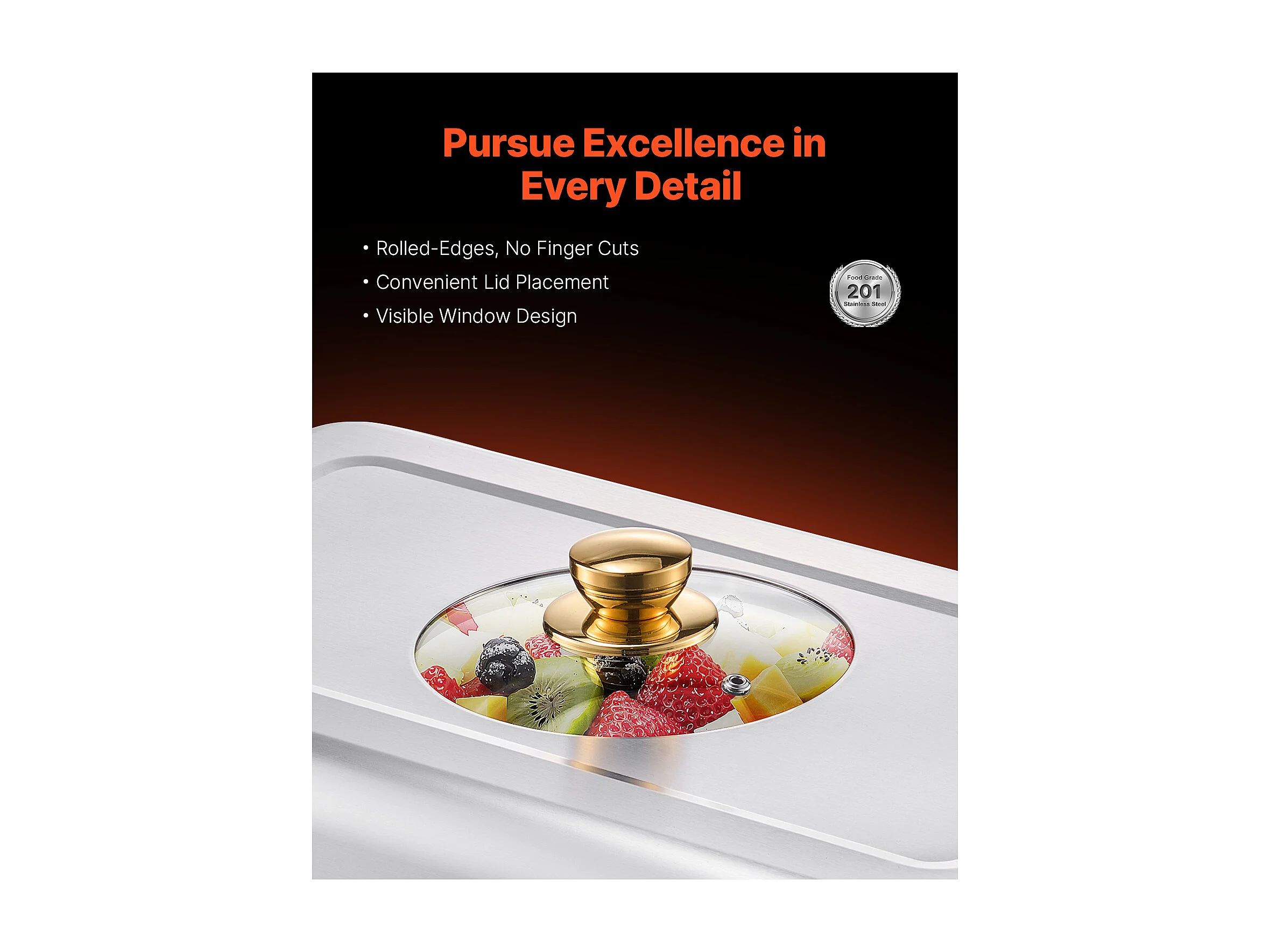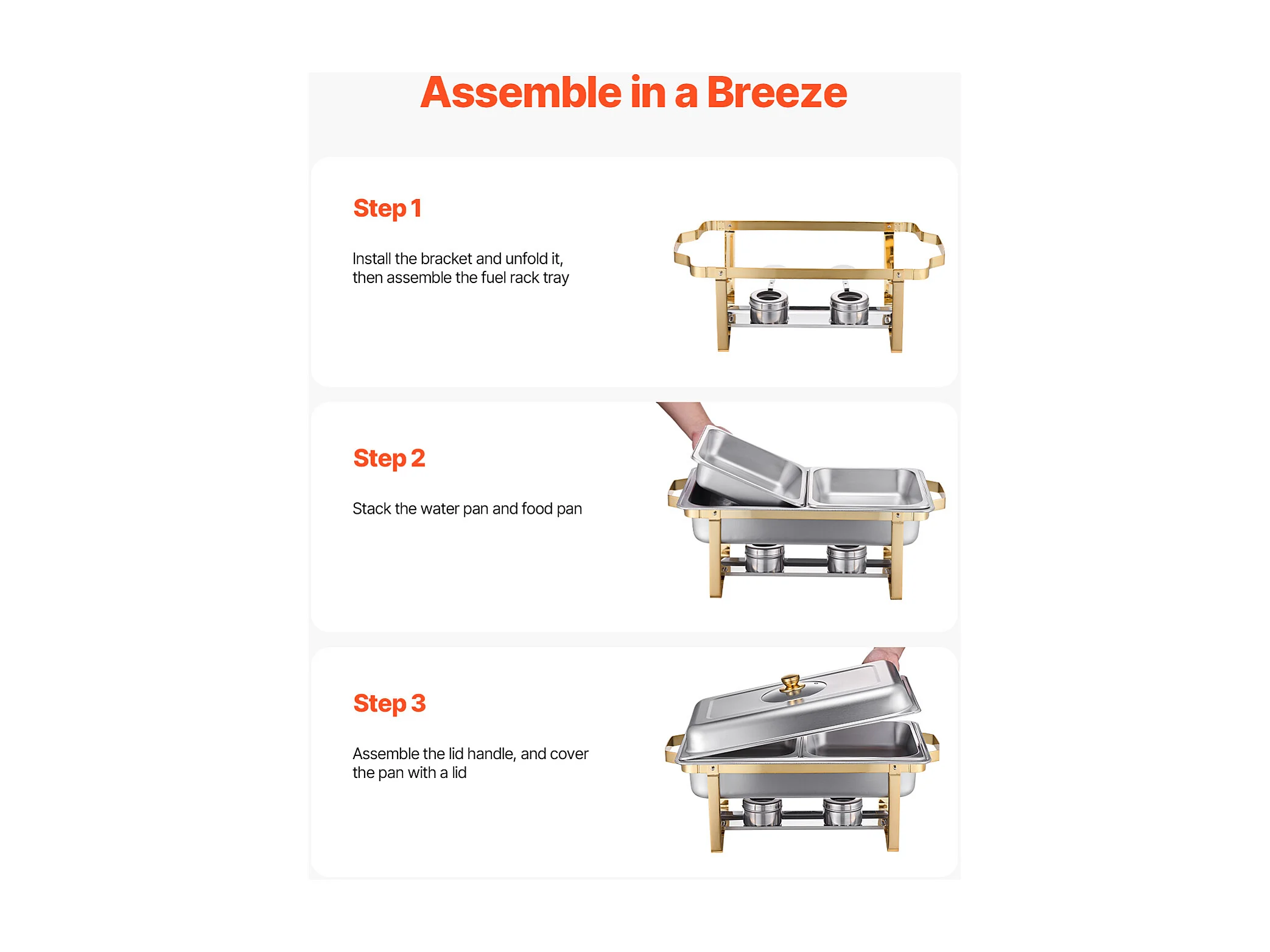 Chauffe-Plats SucceBuy Ensemble Buffet Rectangulaire de 7.5 L, Lot de 2, avec Casseroles Demi-Format en Acier Inoxydable