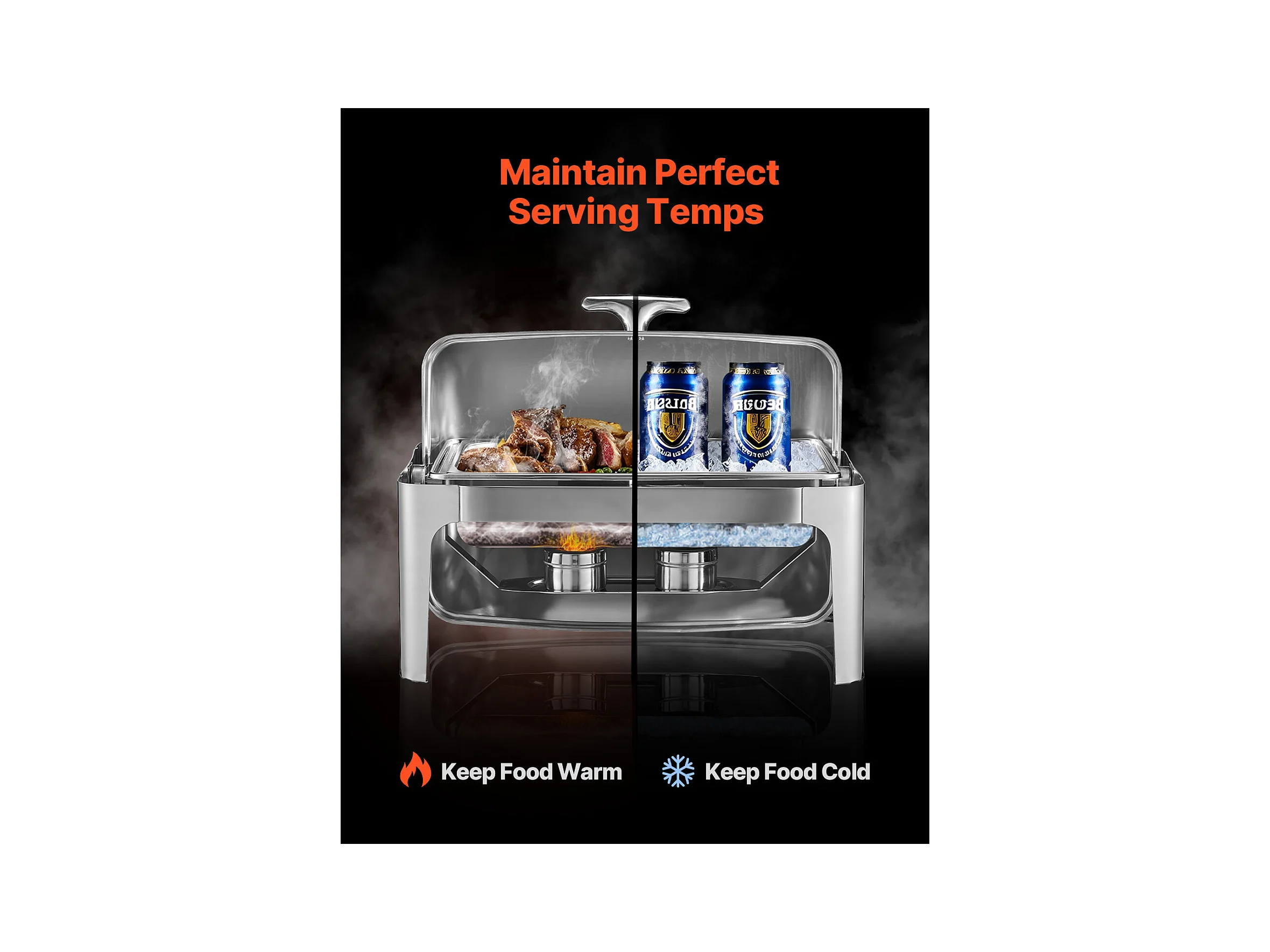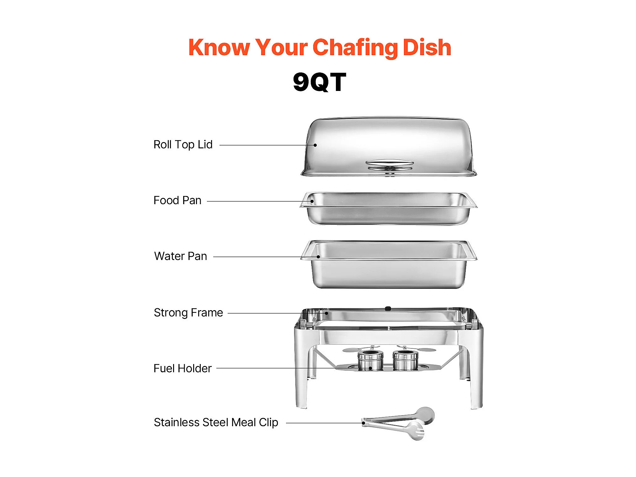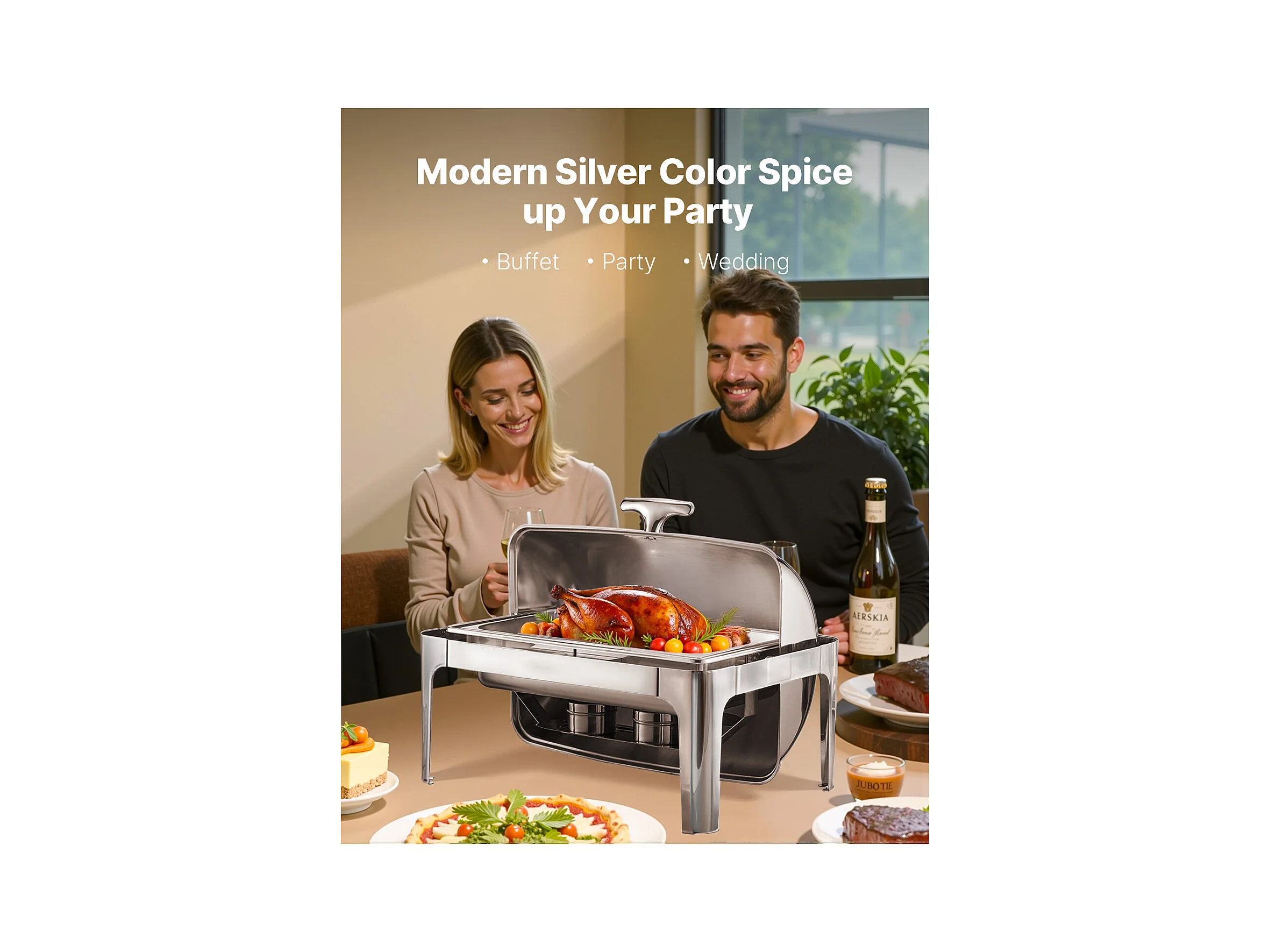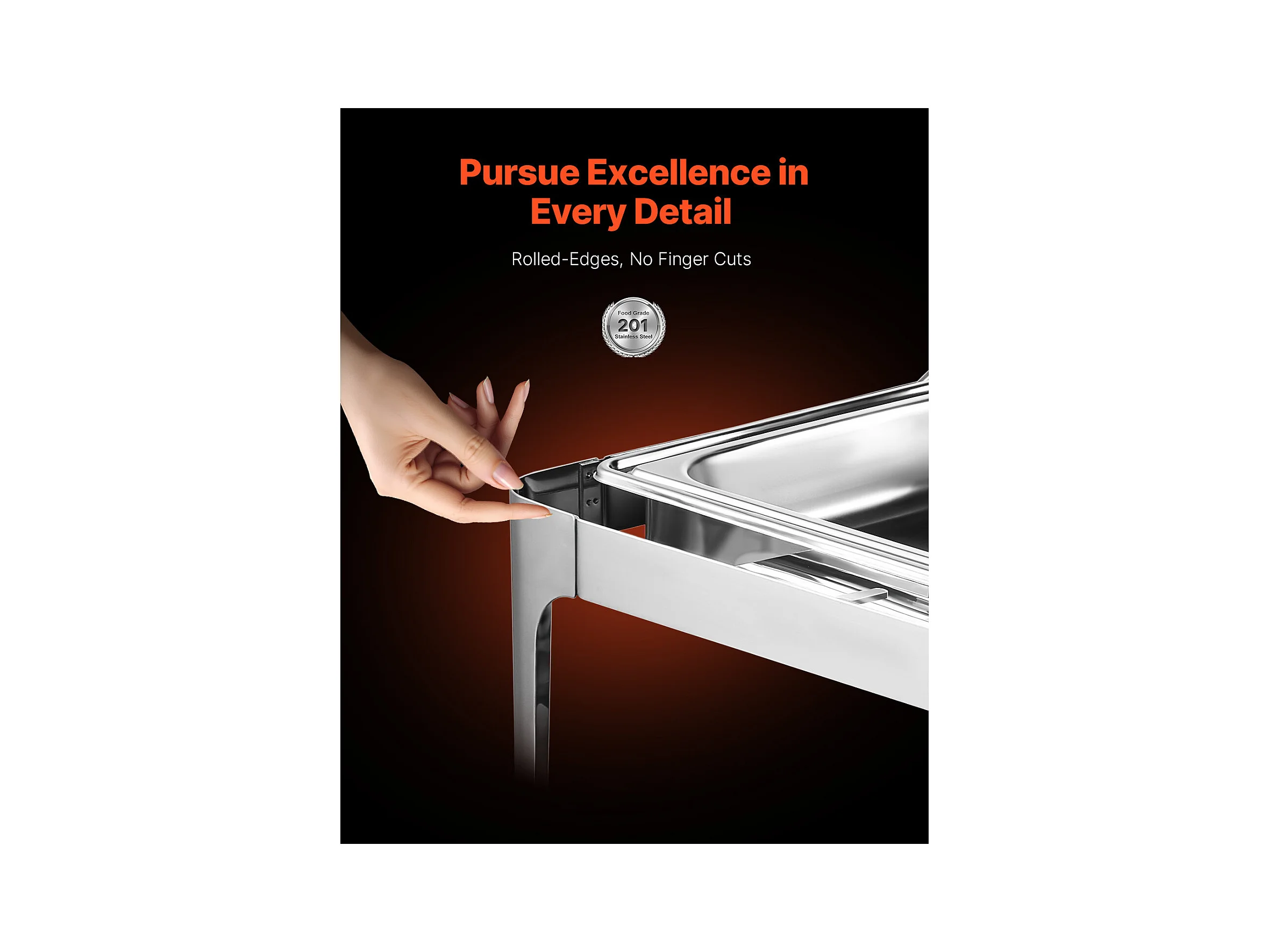 Chauffe-Plats SucceBuy Ensemble de Réchauds Rectangulaires 8.5 L avec Couvercle à Roulettes, en Acier Inoxydable, avec Poêle Pleine Grandeur