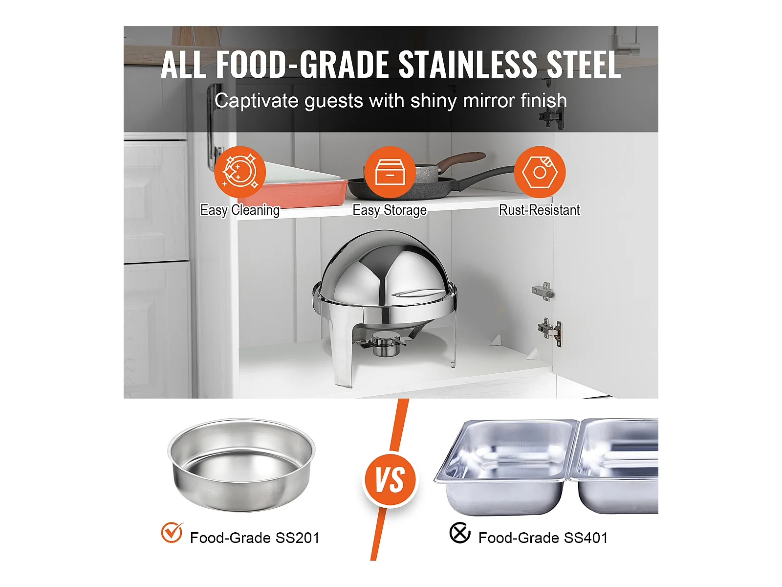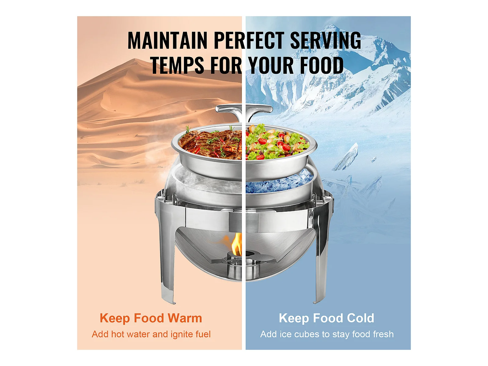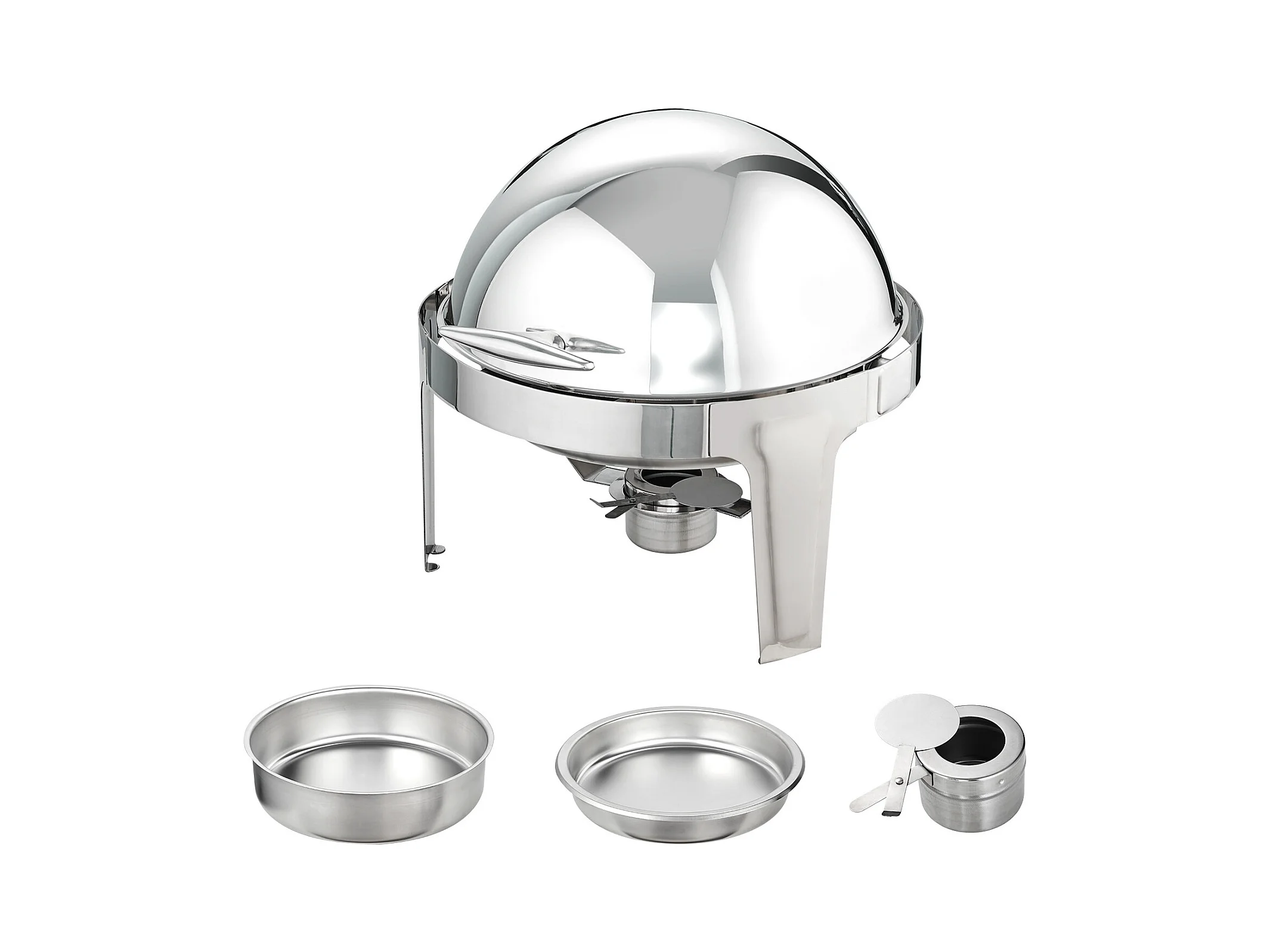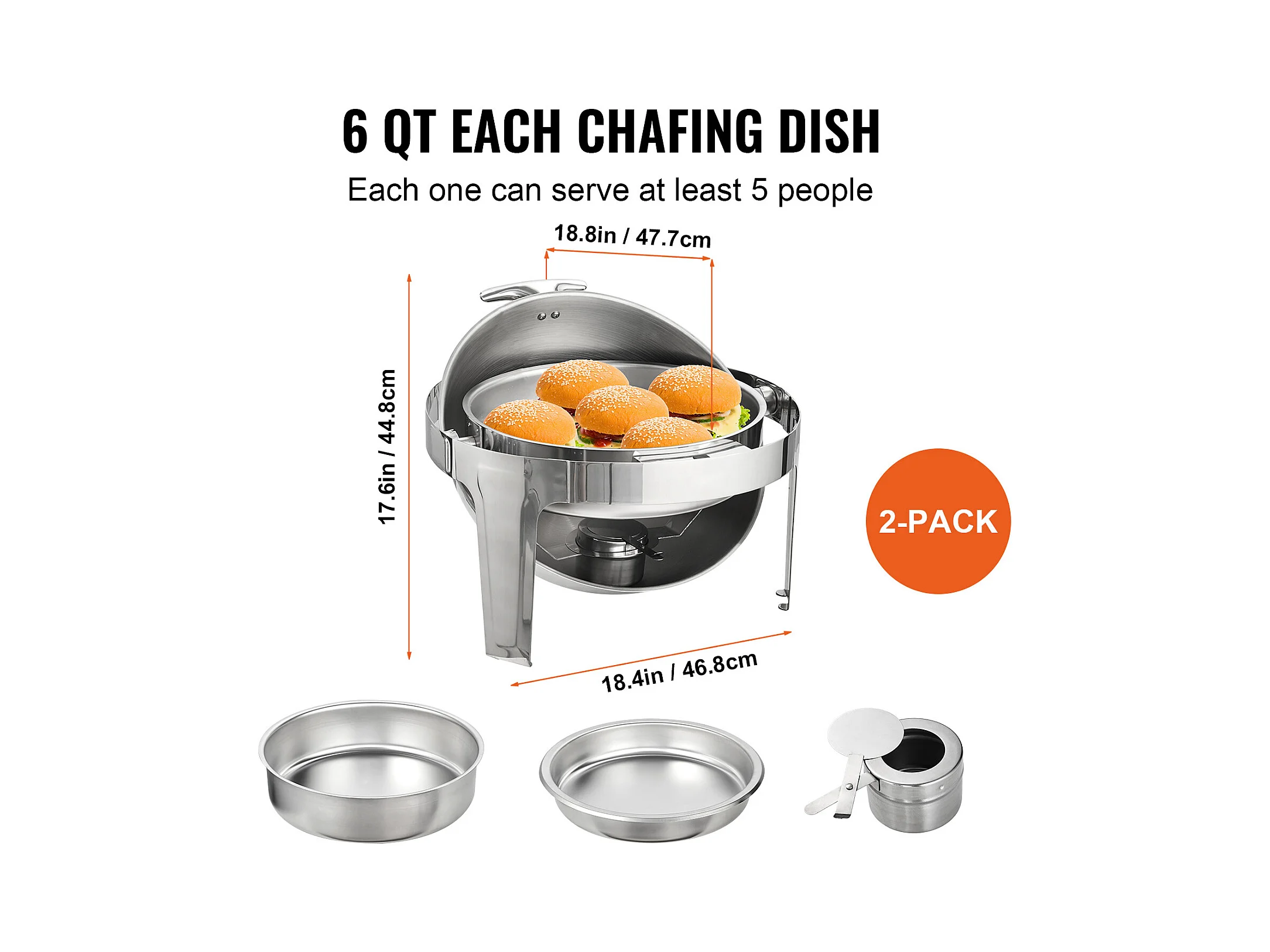 Chauffe-Plats SucceBuy Lot de 2 Plats à Réchaud Ronds avec Couvercle en Acier Inoxydable, Casserole de Taille Standard de 5.5 Litres, Support de Combustible