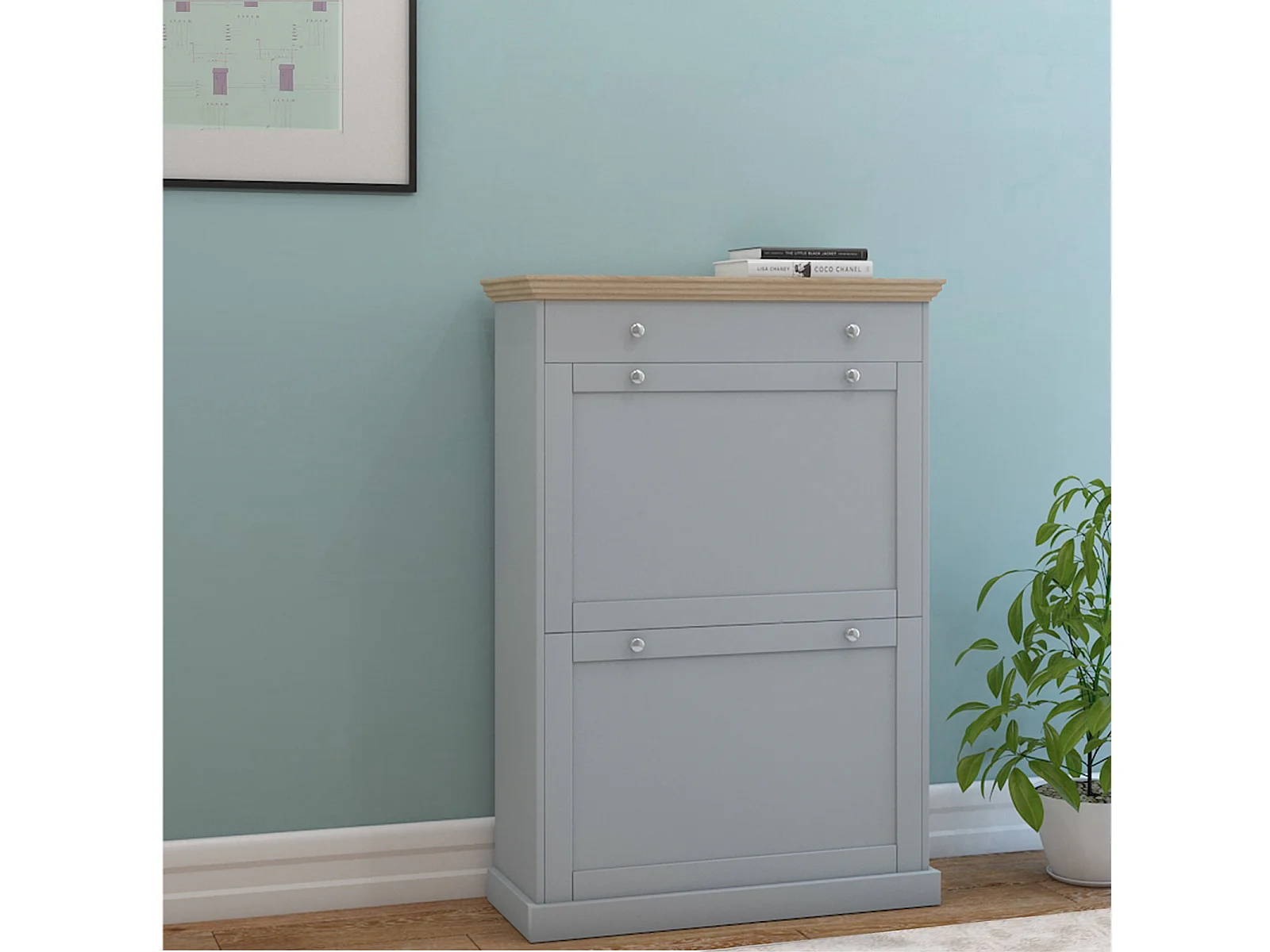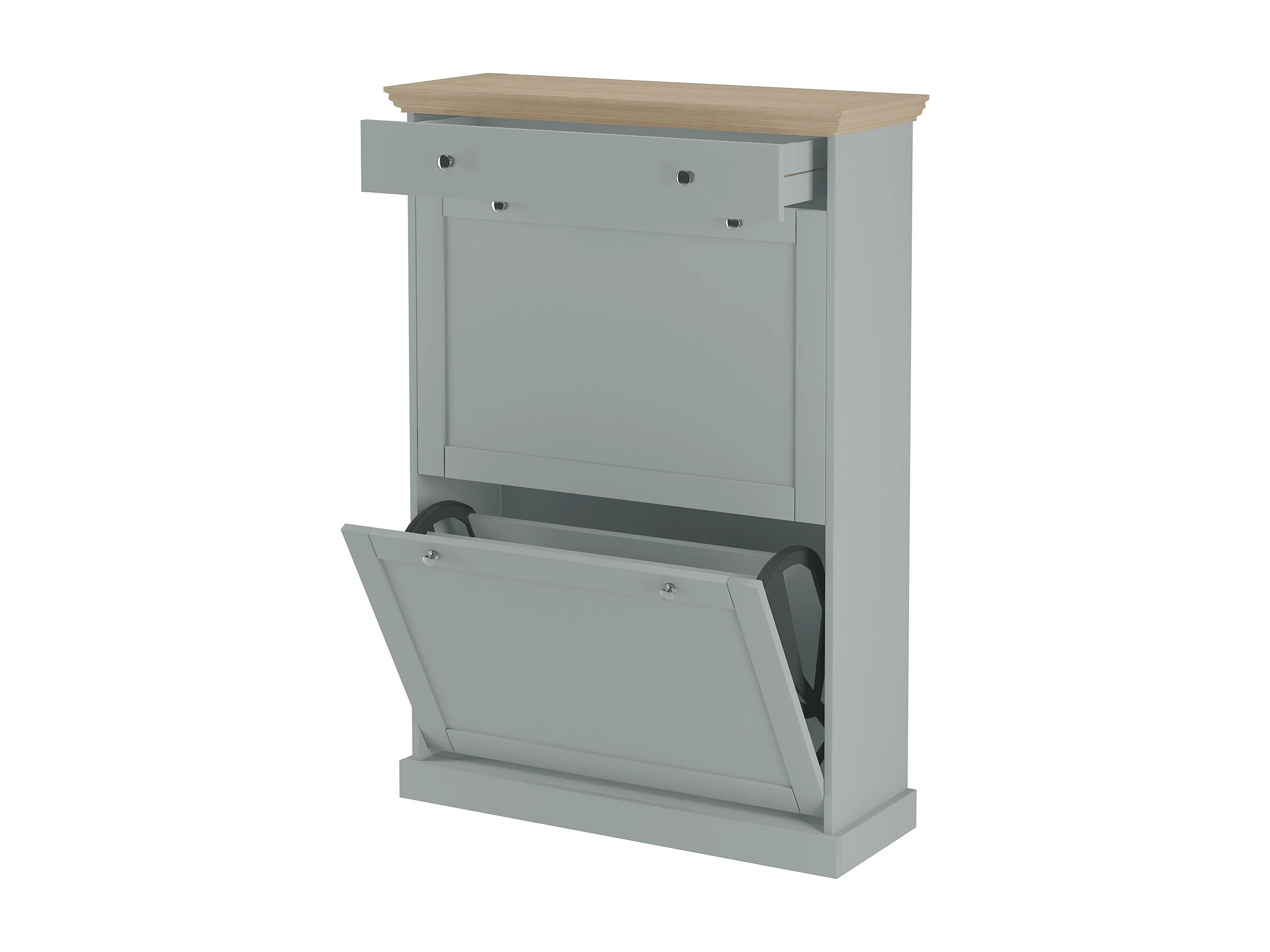 Binz|Coffre à chaussures 2 portes battantes et 1 tiroir en effet bois gris