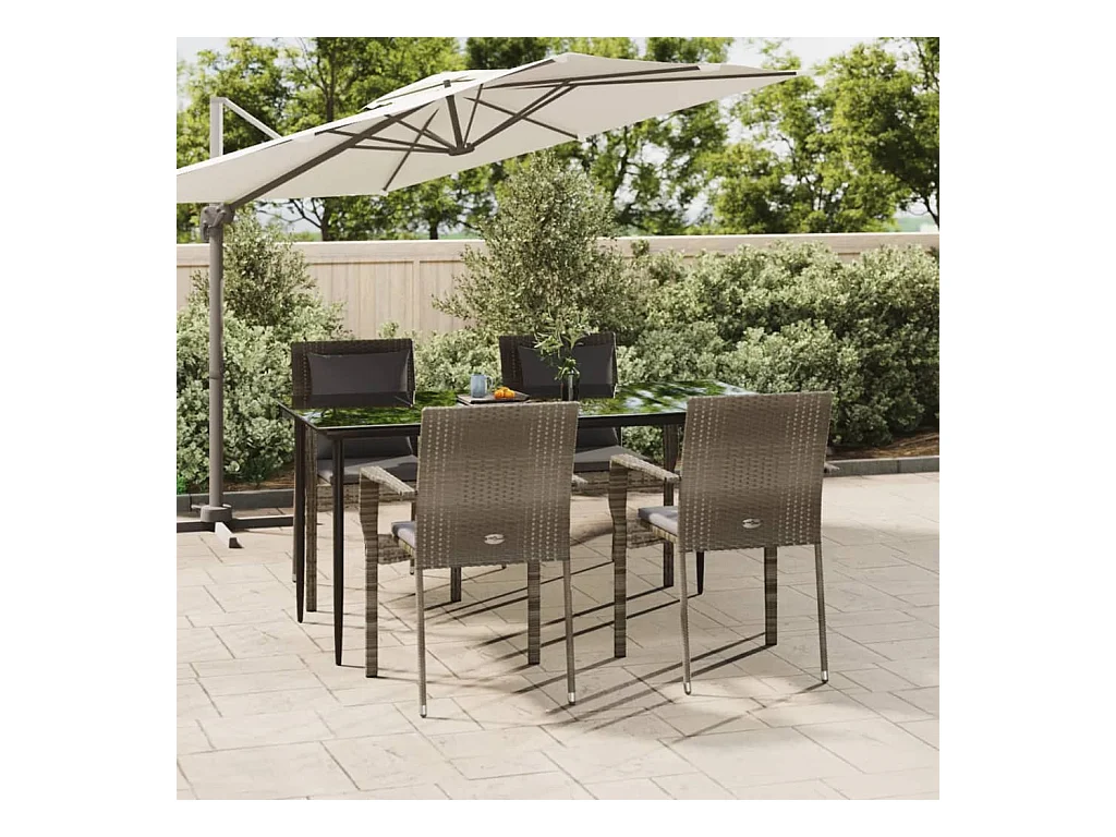 Vernon Ensemble à manger de jardin et coussins 5pcs Gris/noir