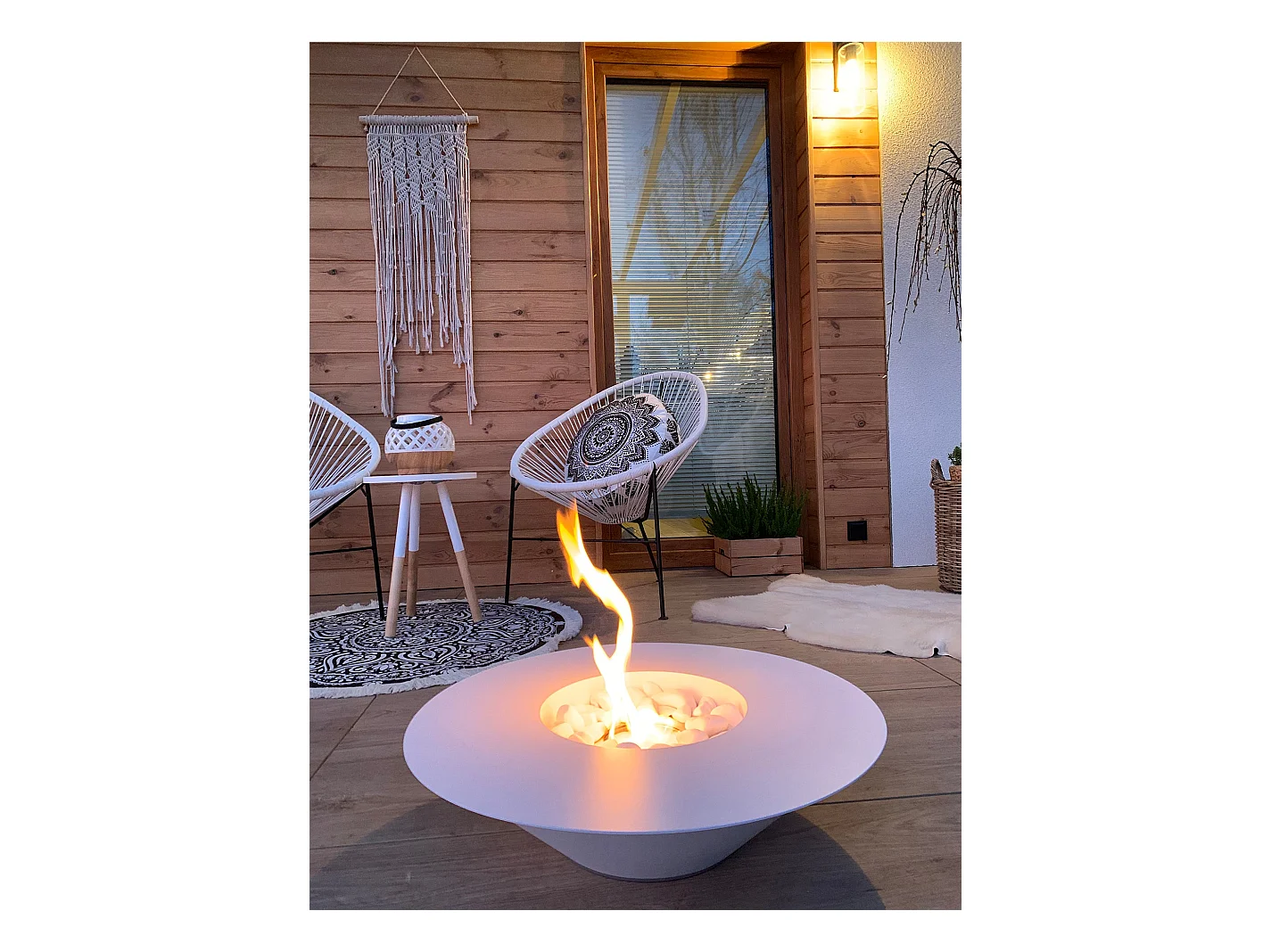 Cheminée à bioéthanol de jardin ronde pour extérieur SANTORINI Blanc d.60
