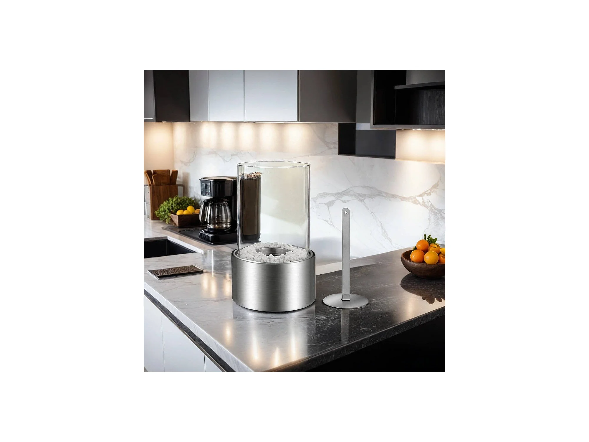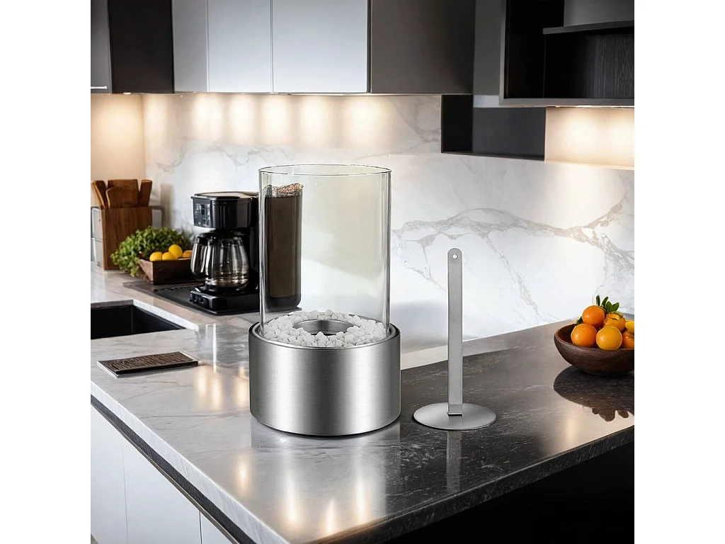 Cheminée à bioéthanol Taipei, capacité 0,2 L Made in Italy, 16x16x27h cm Argent