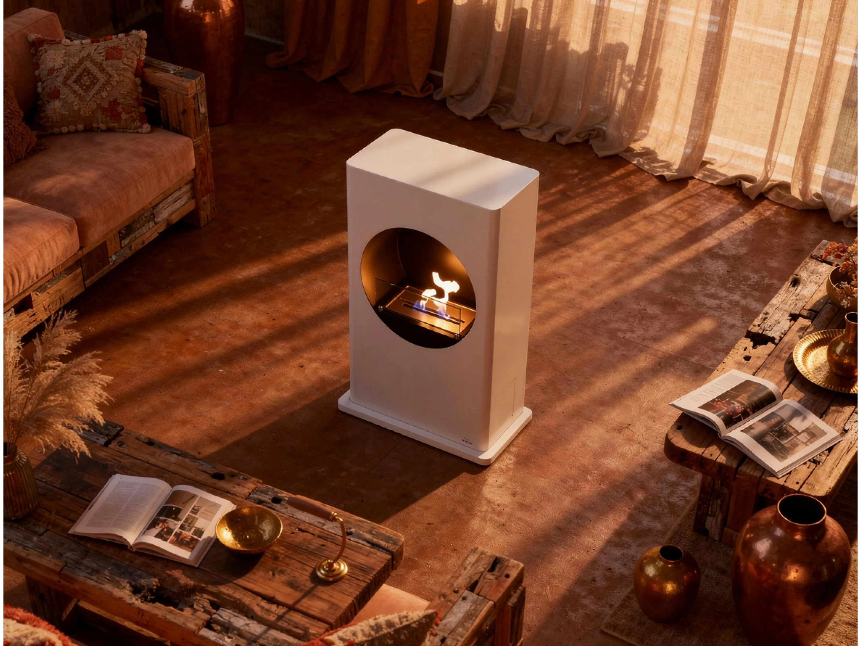 Cheminée à l'éthanol au sol en acier laqué blanc