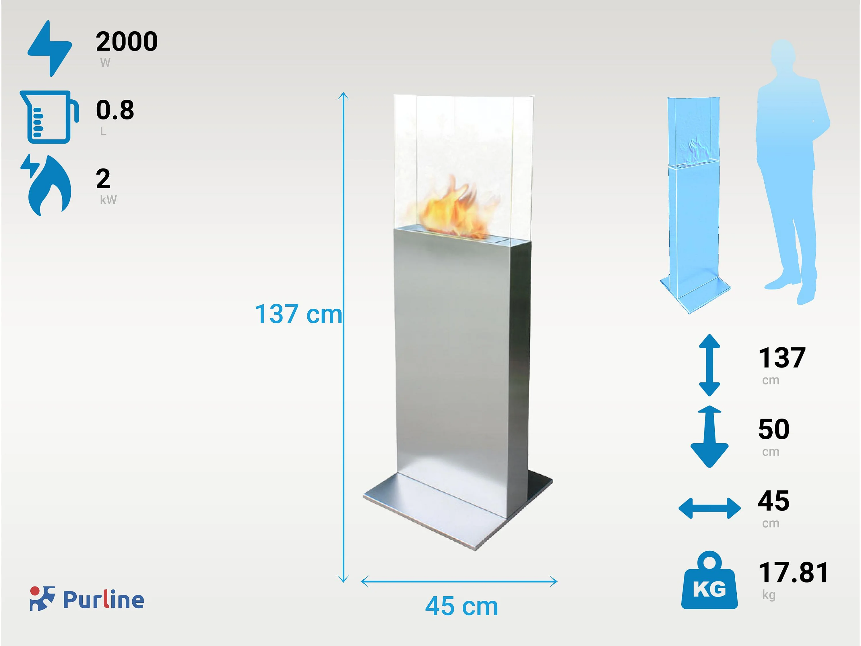 Cheminée à l'éthanol au sol en acier noir et flamme réglable