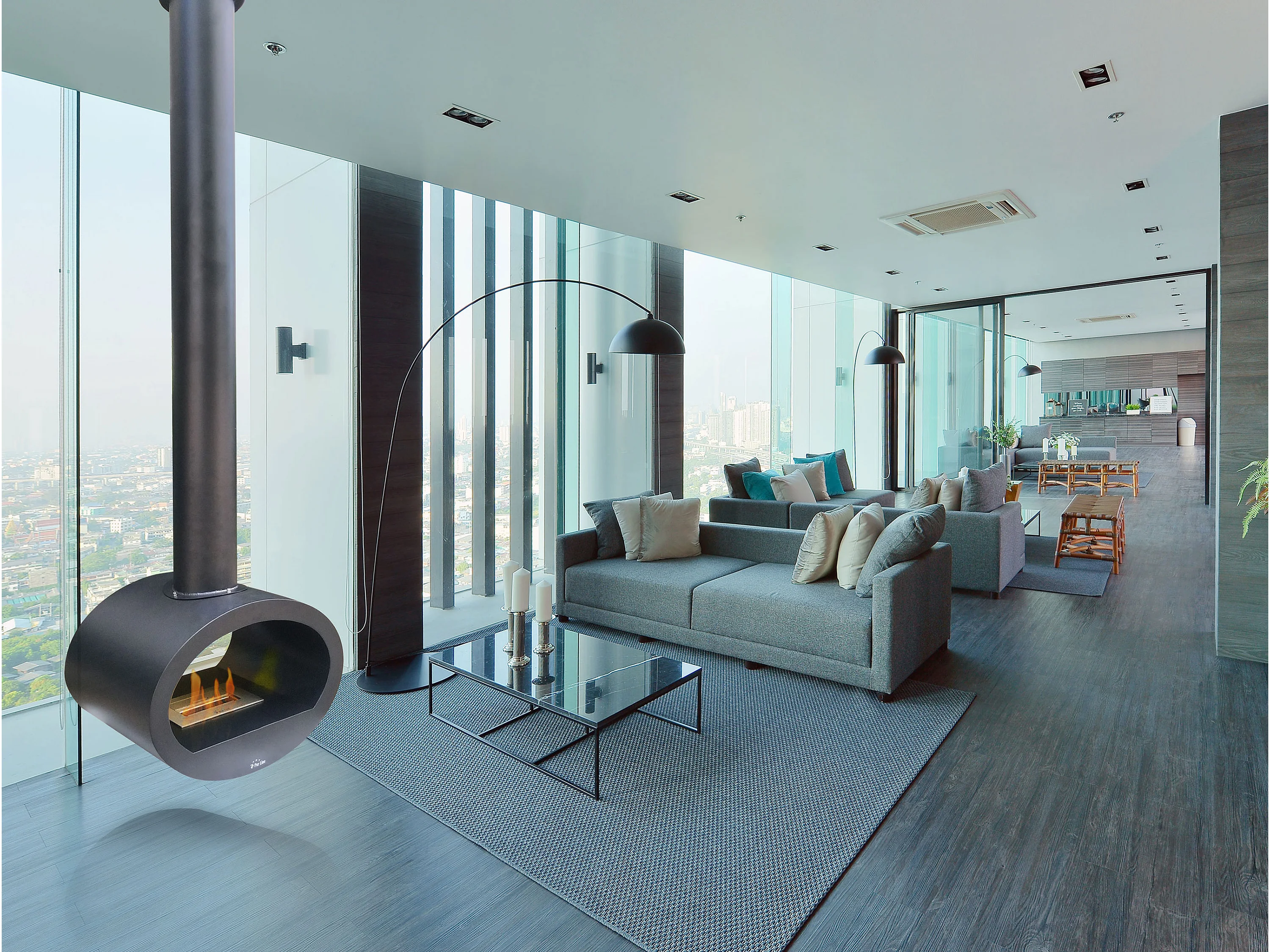 Cheminée à l'éthanol de plafond en acier noir