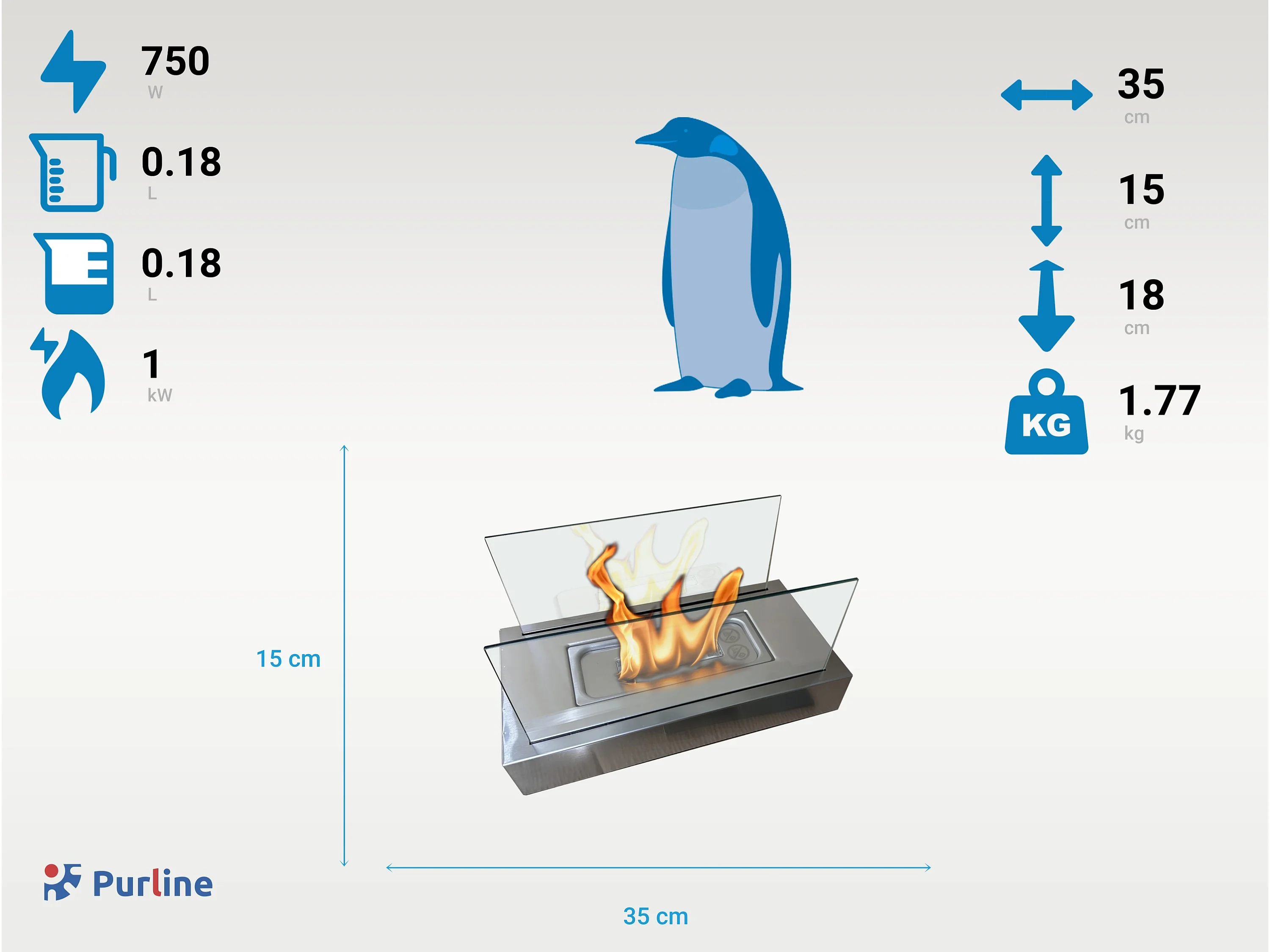 Brûleur de cheminée au bioéthanol biocheminée en acier inoxydable 3,5 lt 45,7X18,7XH9,5 cm