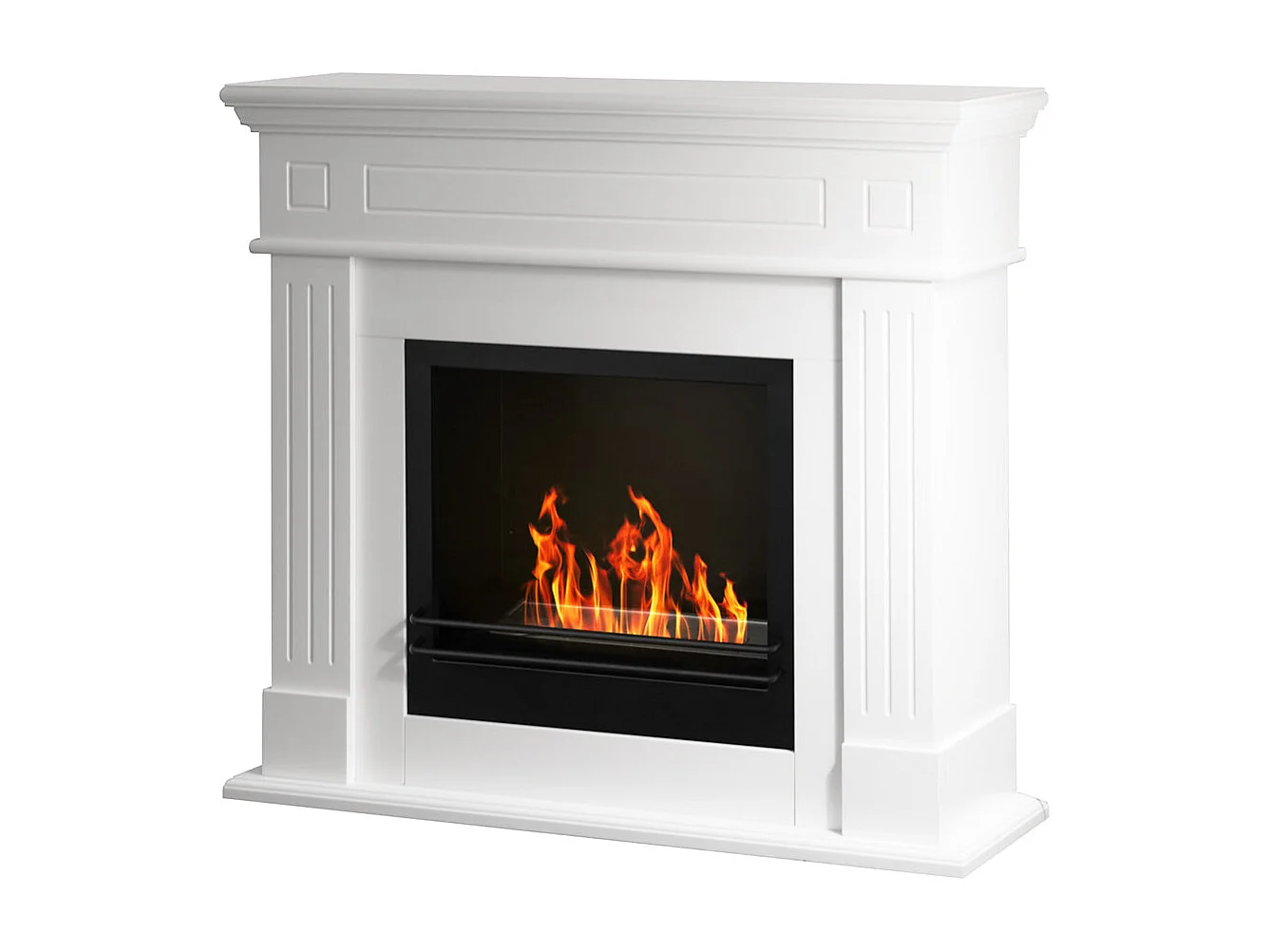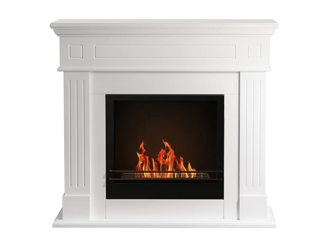 Cheminée au bioéthanol Cambridge au sol en bois blanc 110x37x102h