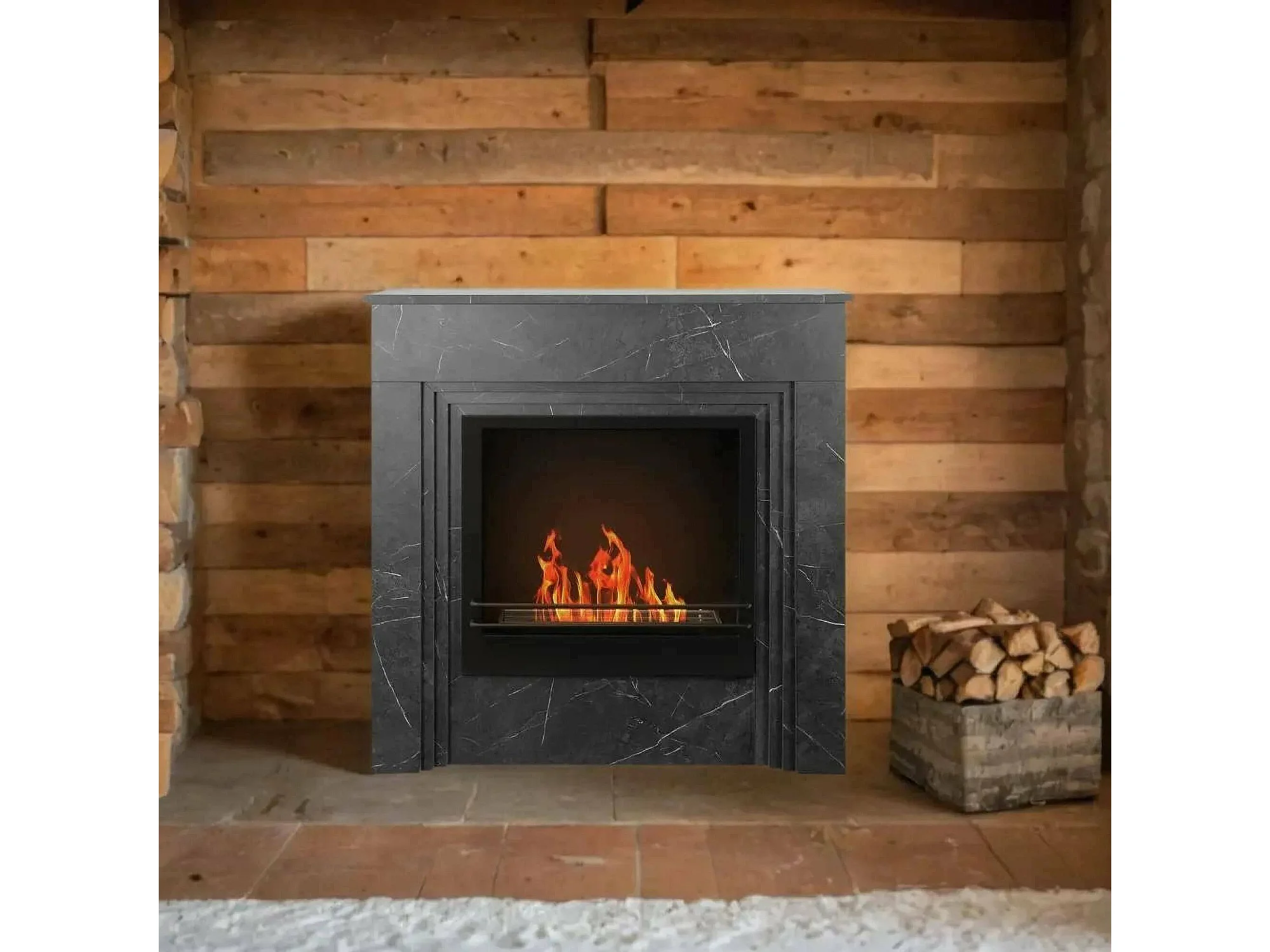 Cheminée bioéthanol Kinsasa, Capacité 1,8 L Fabriqué en Italie, 35x96x96h cm Noir