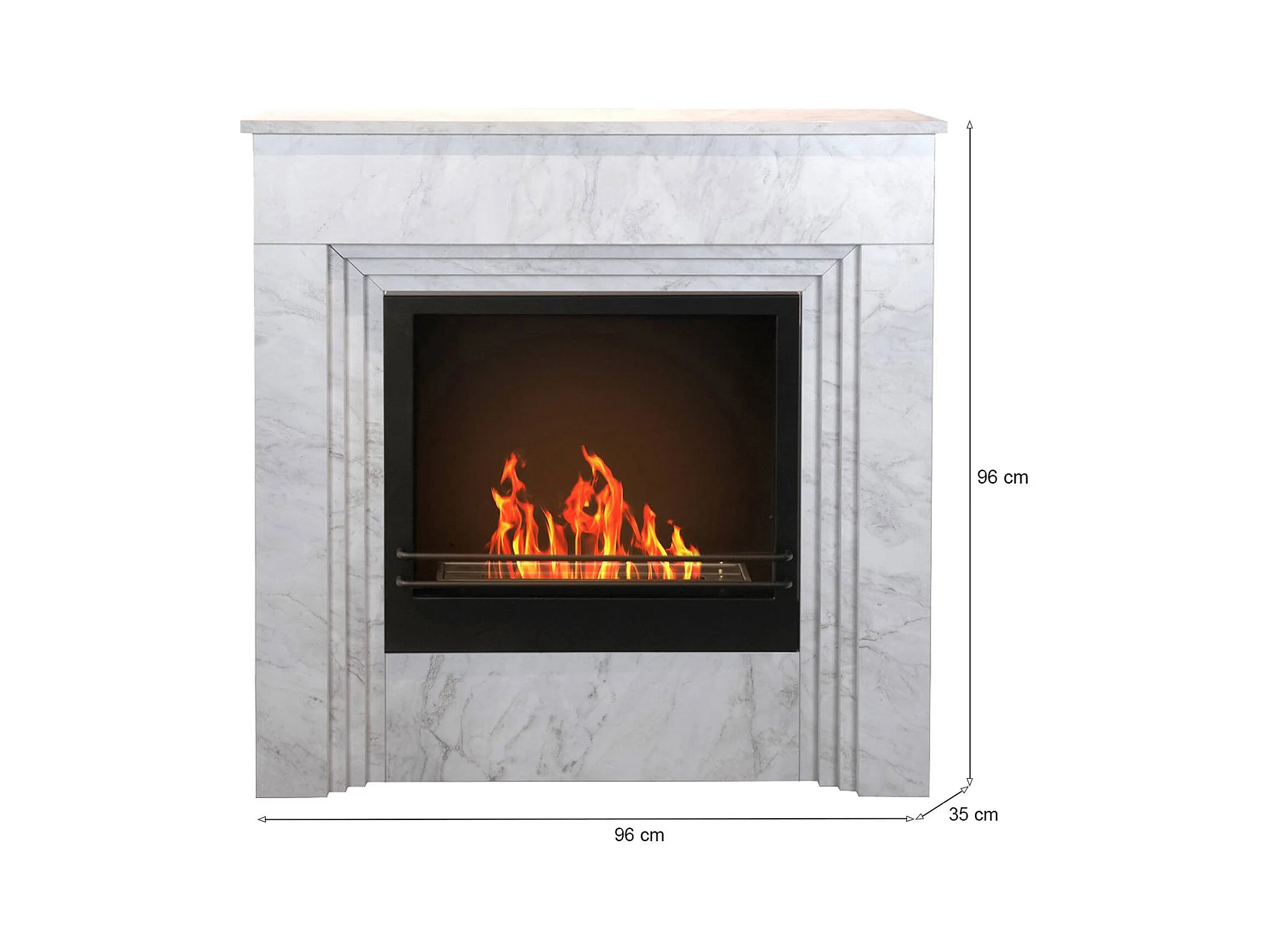 Cheminée bioéthanol Kinsasa, Capacité 1,8 lt Fabriqué en Italie, 35x96x96h cm Blanc