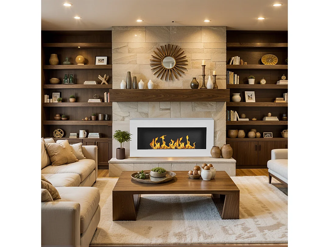 Cheminée bioéthanol murale biocheminée Siena blanc L 90xP 12xH40