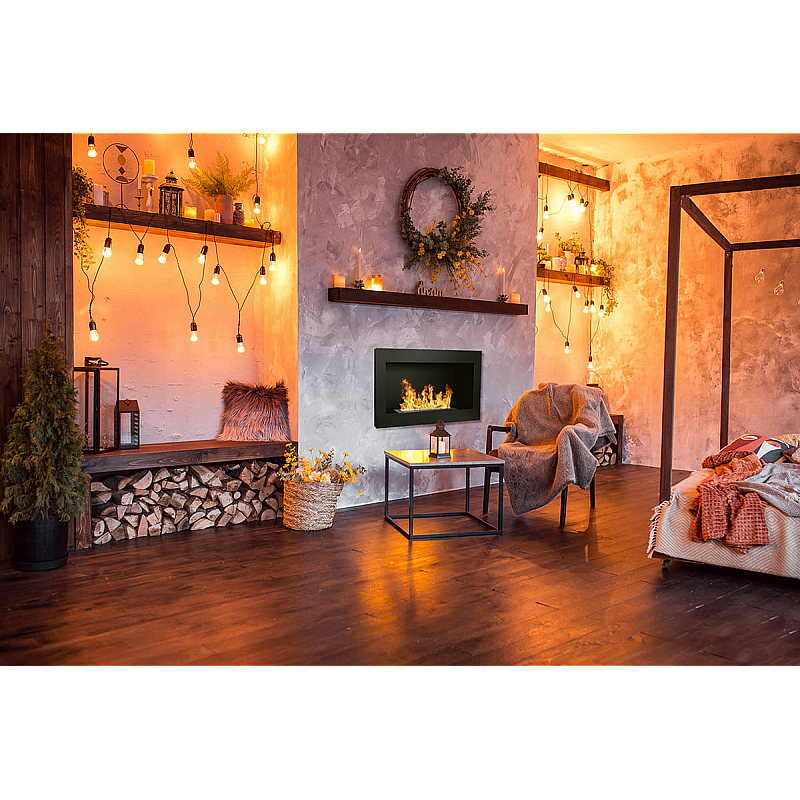 Cheminée bioéthanol murale ou encastrable Lucca Black L 90 x P 12 x H 40