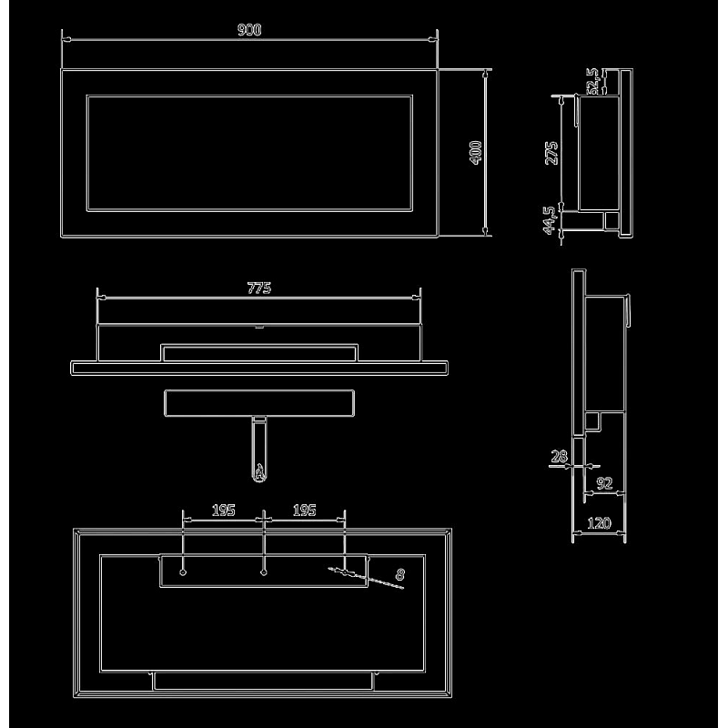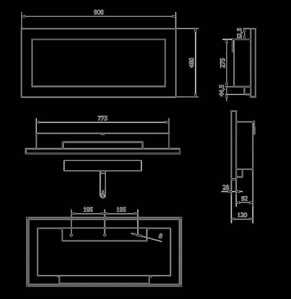 DIVINA FIRE Cheminée murale encastrable au bioéthanol BEIJING L90 x H55 x P17