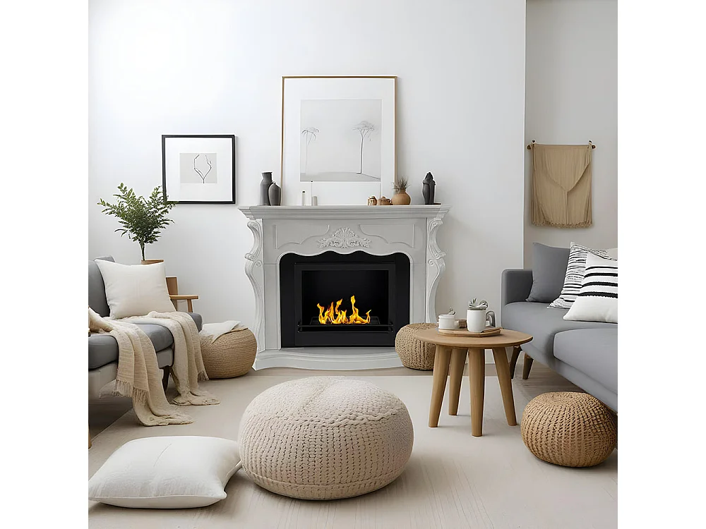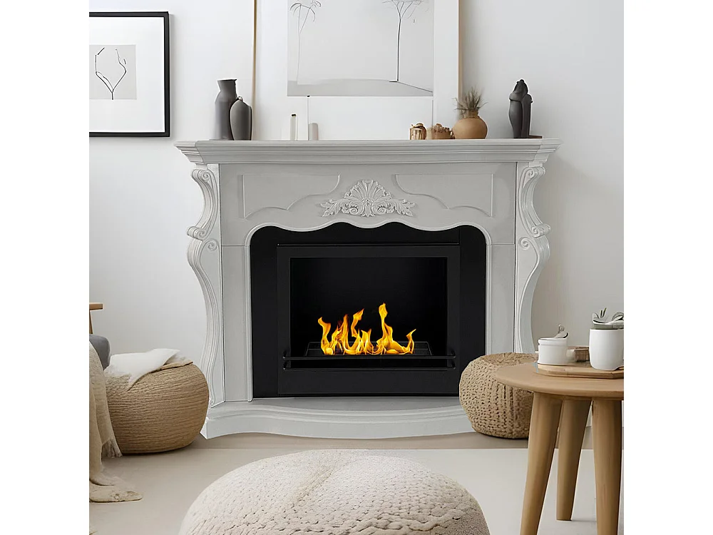 Cheminée bioéthanol Paris cheminée bio au sol en bois blanc L123xP39xH100