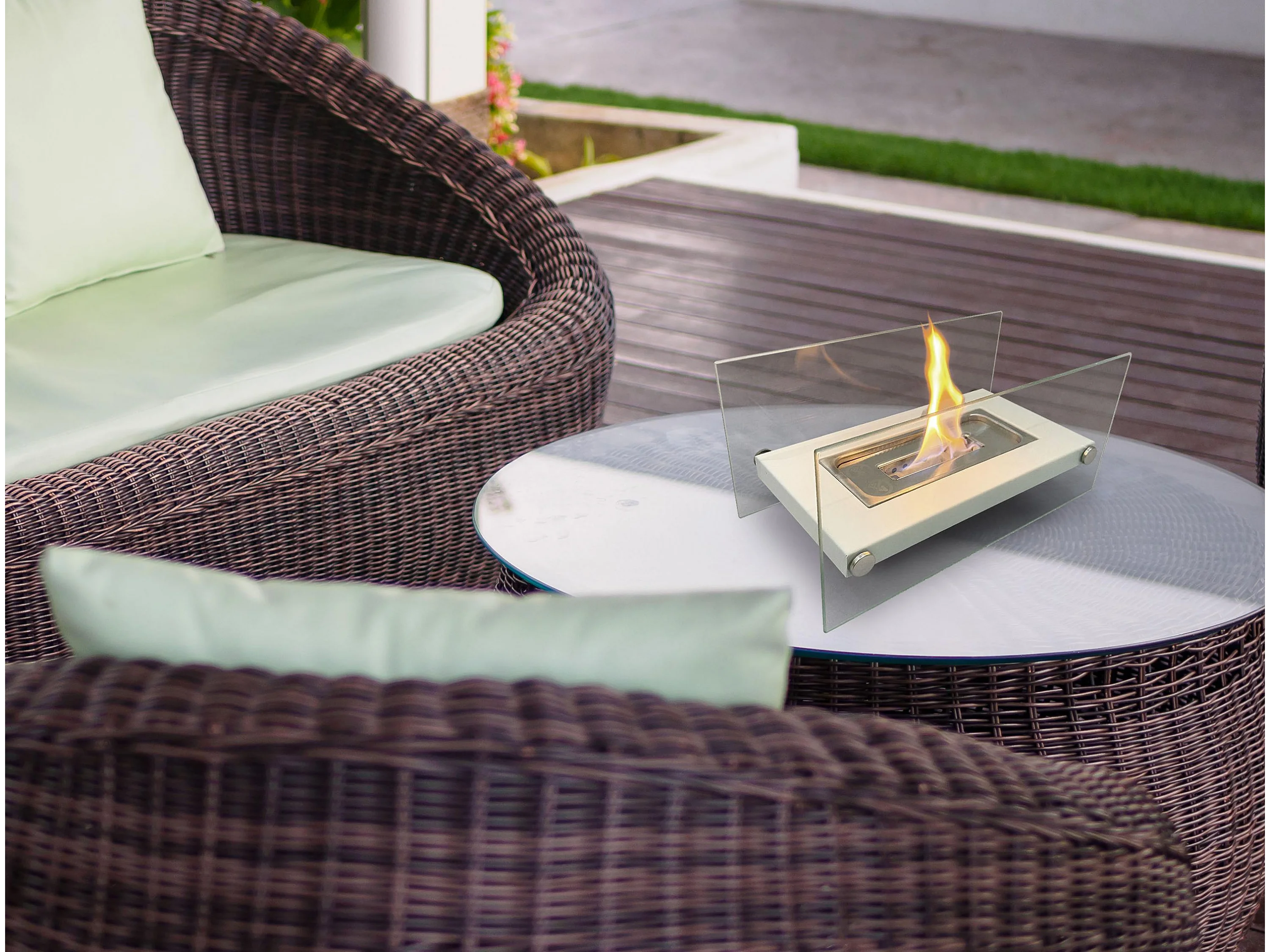Cheminée à l'éthanol de table avec deux abat-jours en verre trempé