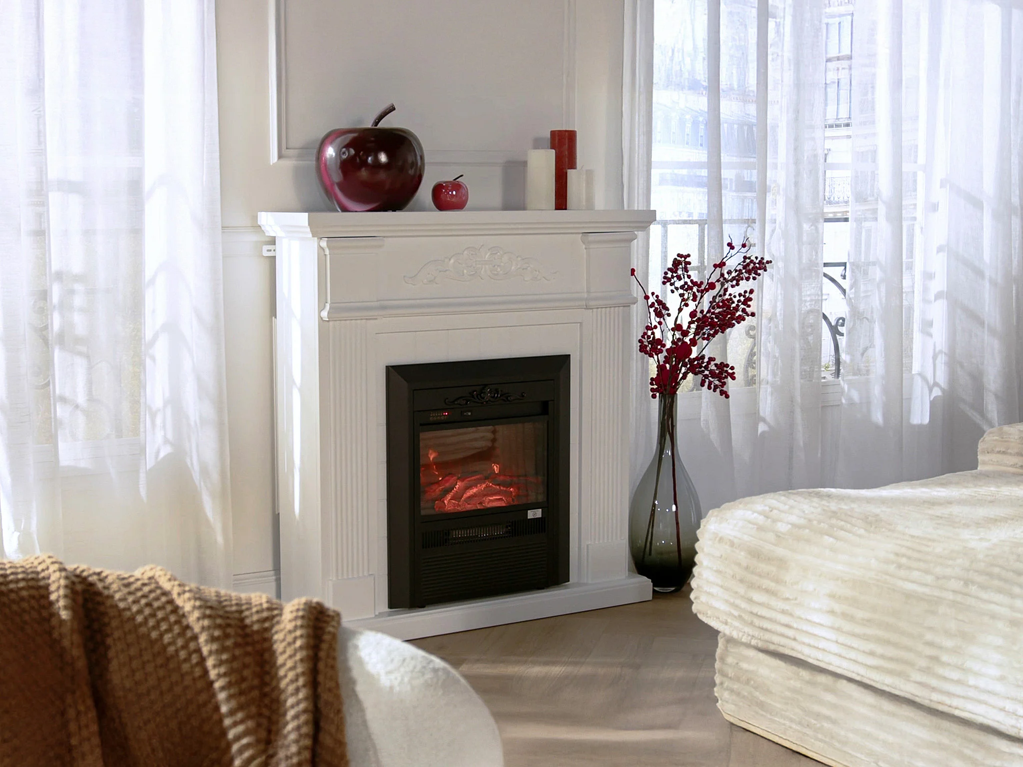 Cheminée électrique à poser - Avec manteau - L98 x P26 x H100,8 cm - Blanc - OTEMANU