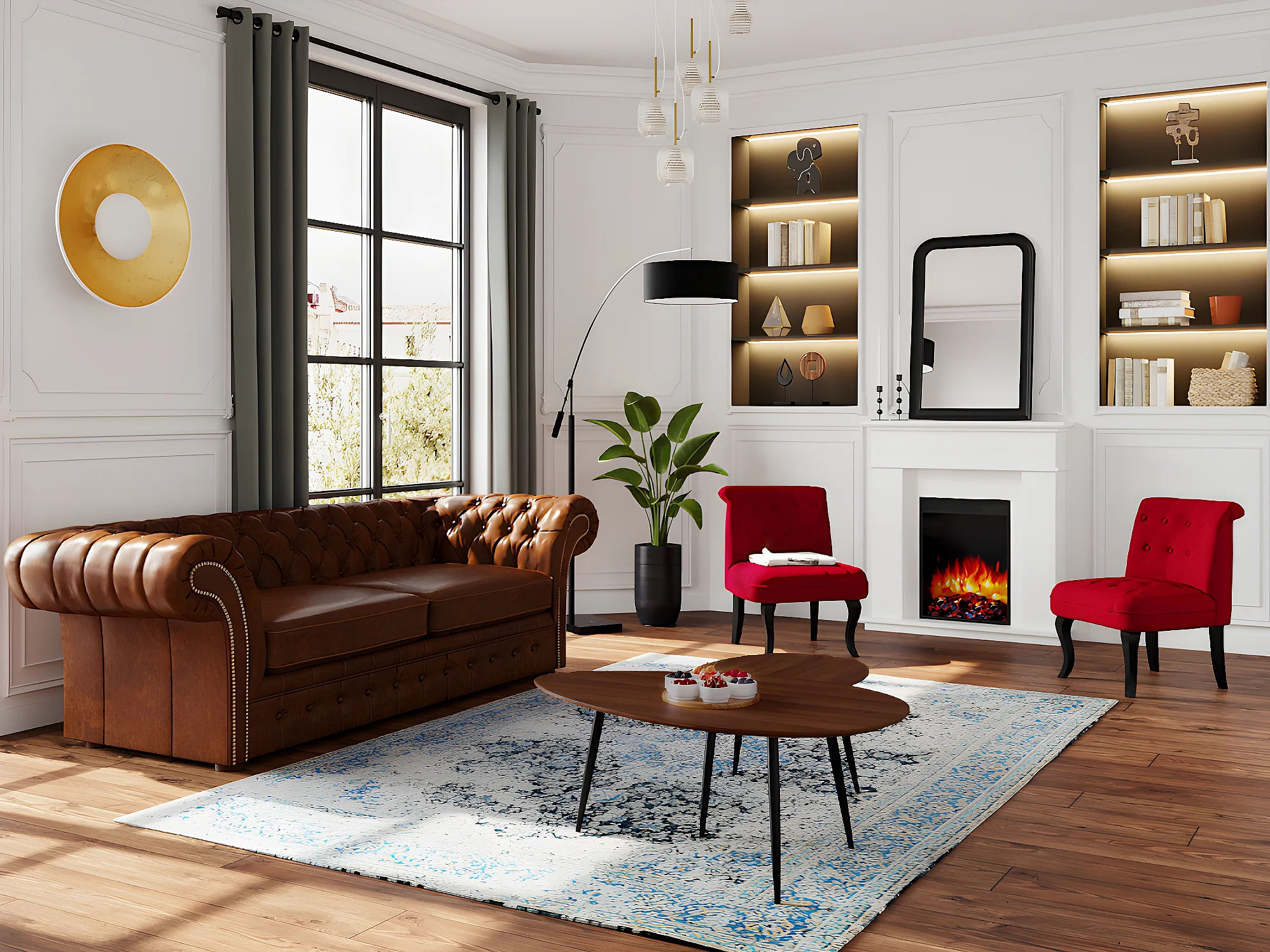 Cheminée électrique à poser VESUVIA - avec manteau - L98 x P24 x H102.5cm - Blanche