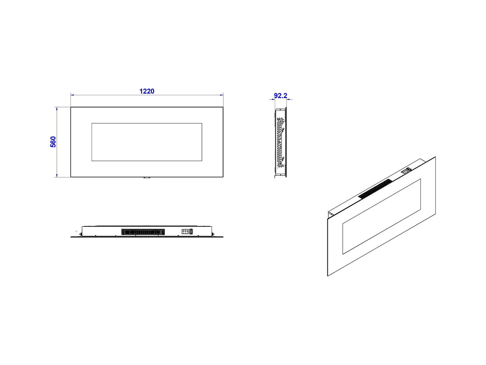 Cheminée Électrique Potoprens, Surface Chauffée 30 m2 Fabriquée en Italie, 101.6x14x54.6h cm Noir