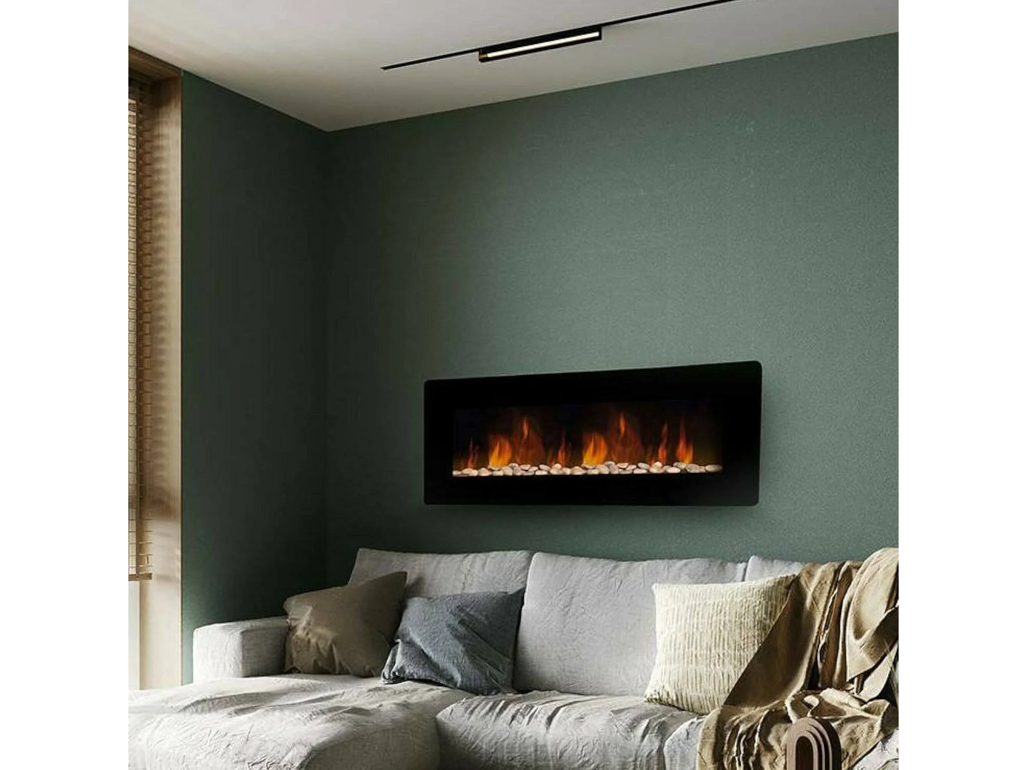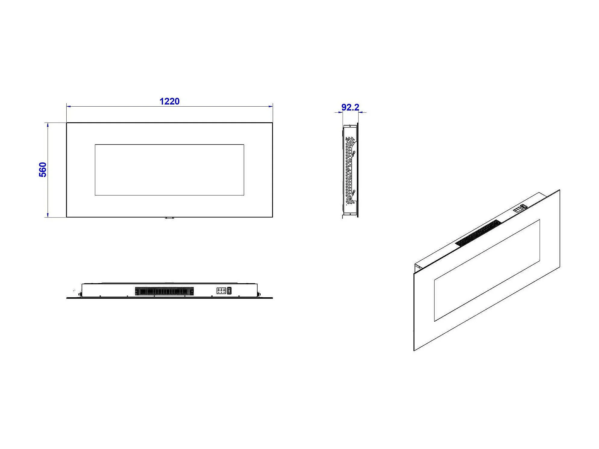 Cheminée Électrique Aidone, Surface Chauffée 30 m² Made in Italy, 127x11x50h cm Noir