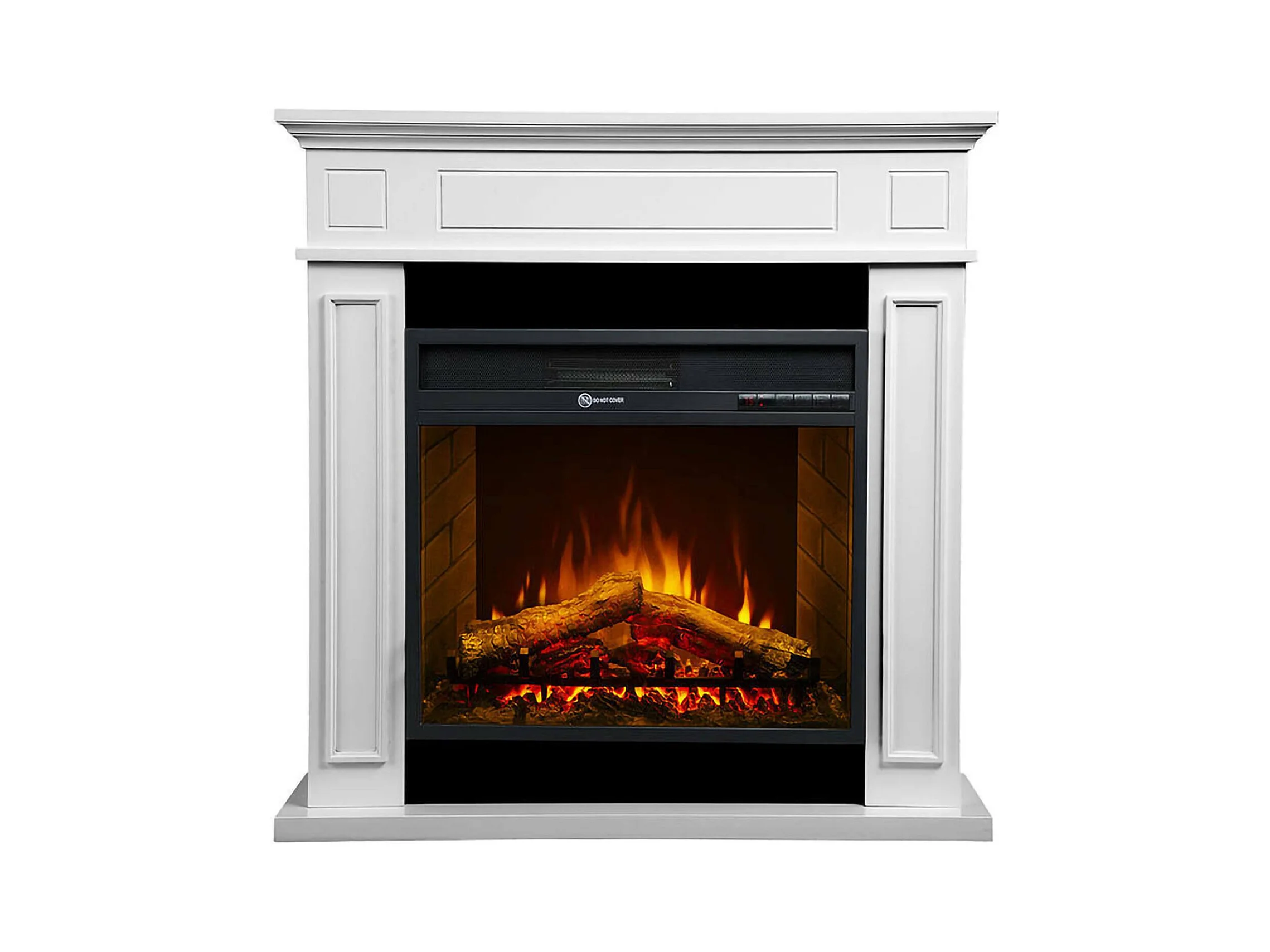 Cheminée électrique à poser VESUVIA - avec manteau - L98 x P24 x H102.5cm - Blanche