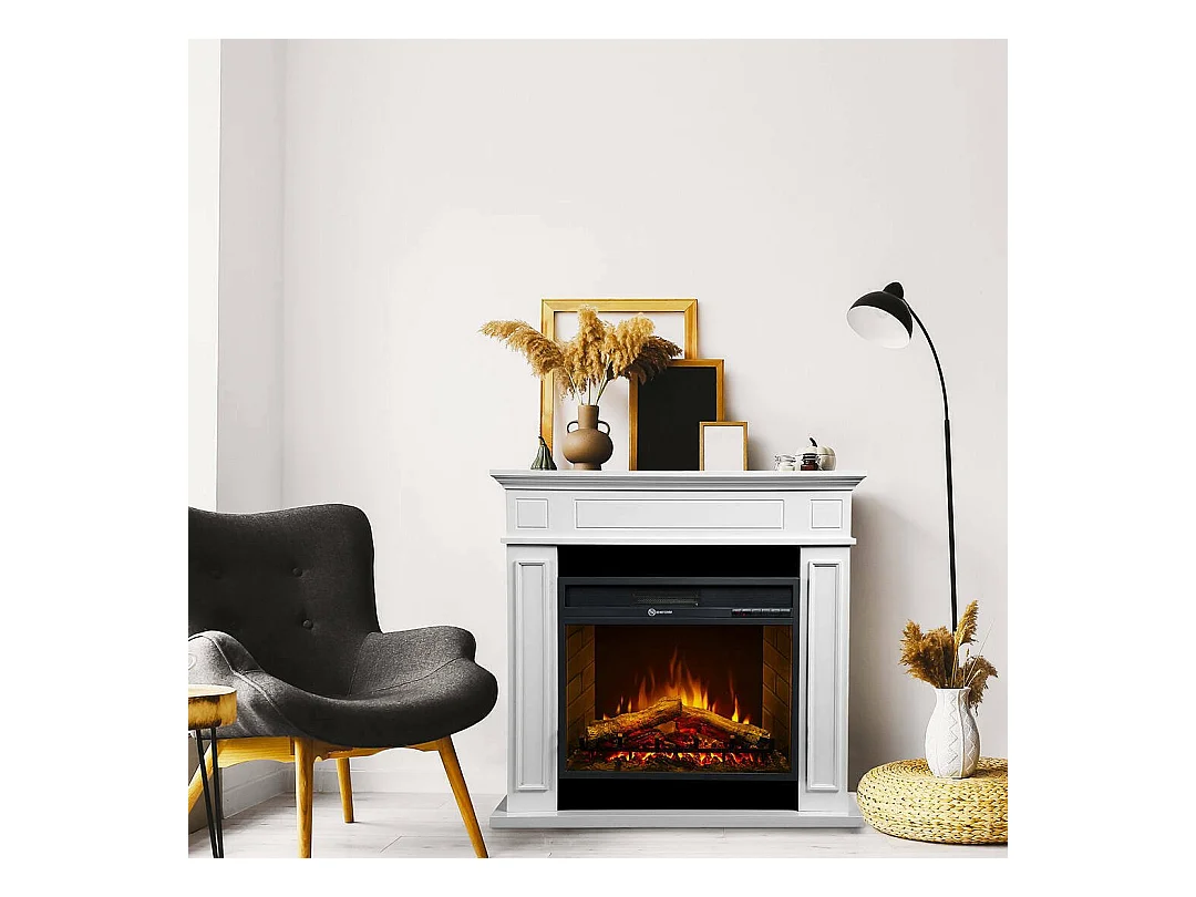 Cheminée électrique à poser - Avec manteau - L98 x P26 x H100,8 cm - Blanc - OTEMANU