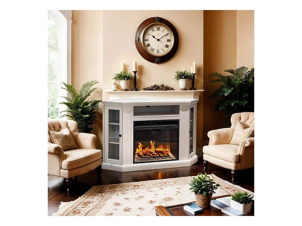Cheminée Électrique Angrogna, Surface Chauffable 30 m² Made in Italy, 24x107x95,2h cm Blanc