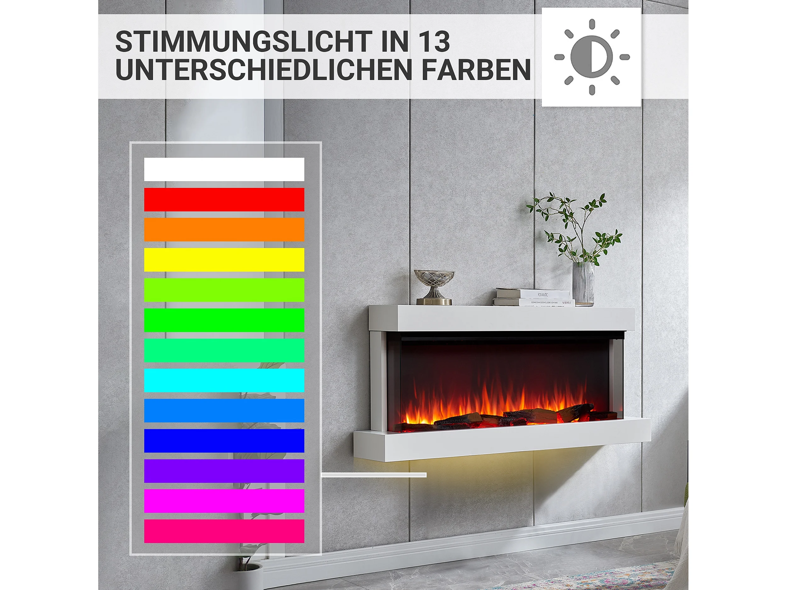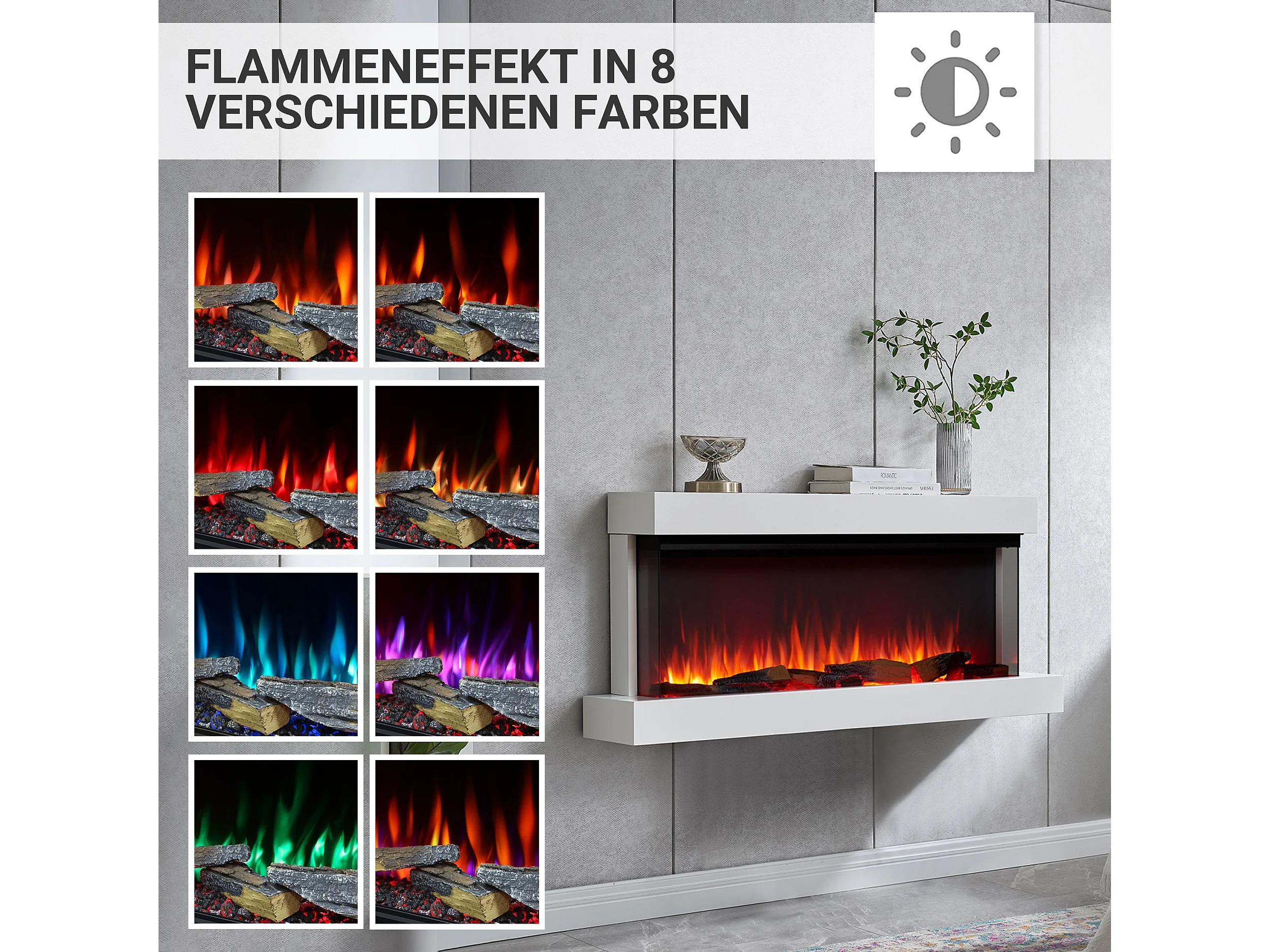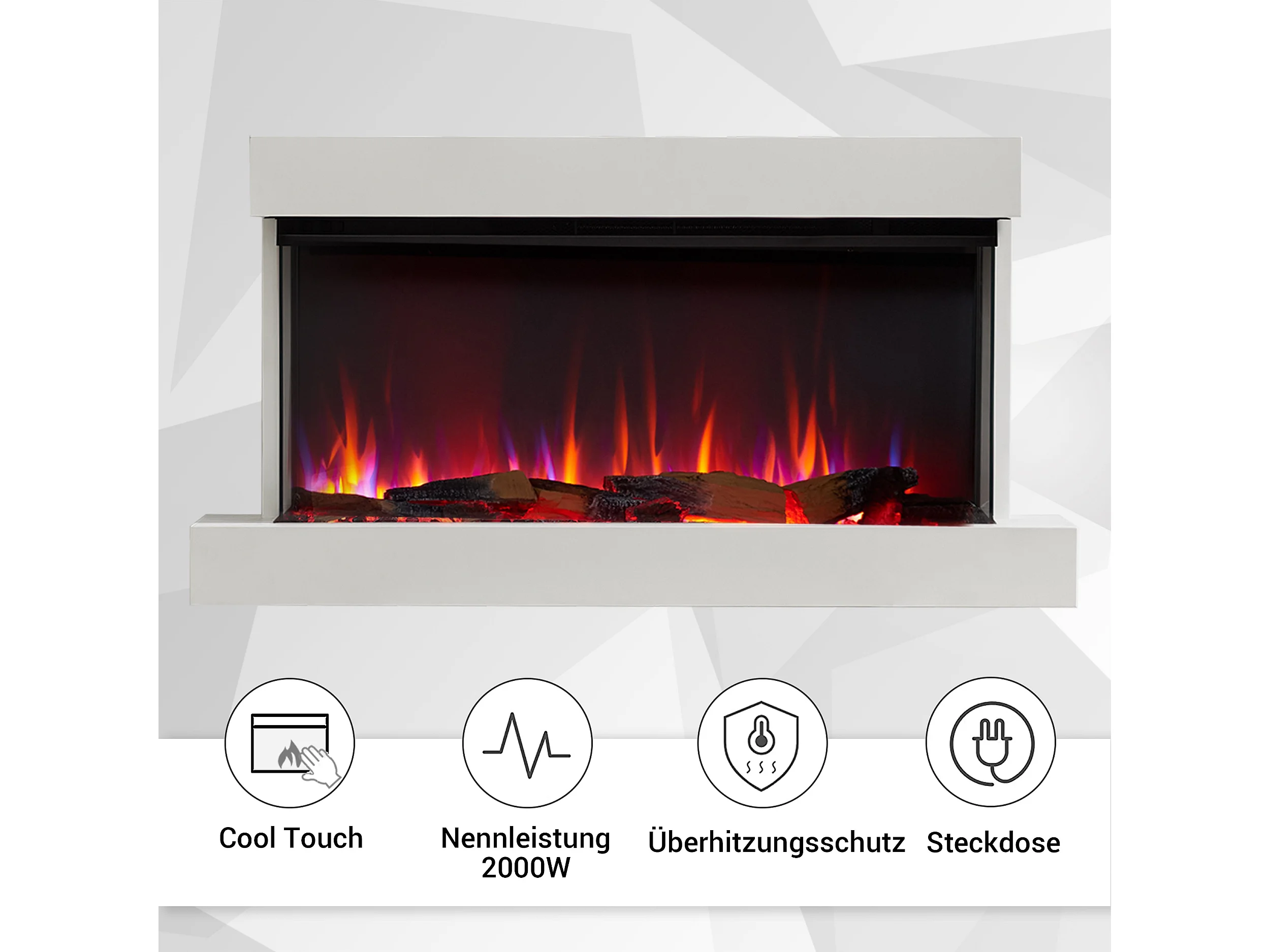 Cheminée électrique BALDERIA Achilles (L) - Cheminée murale avec chauffage - Blanc