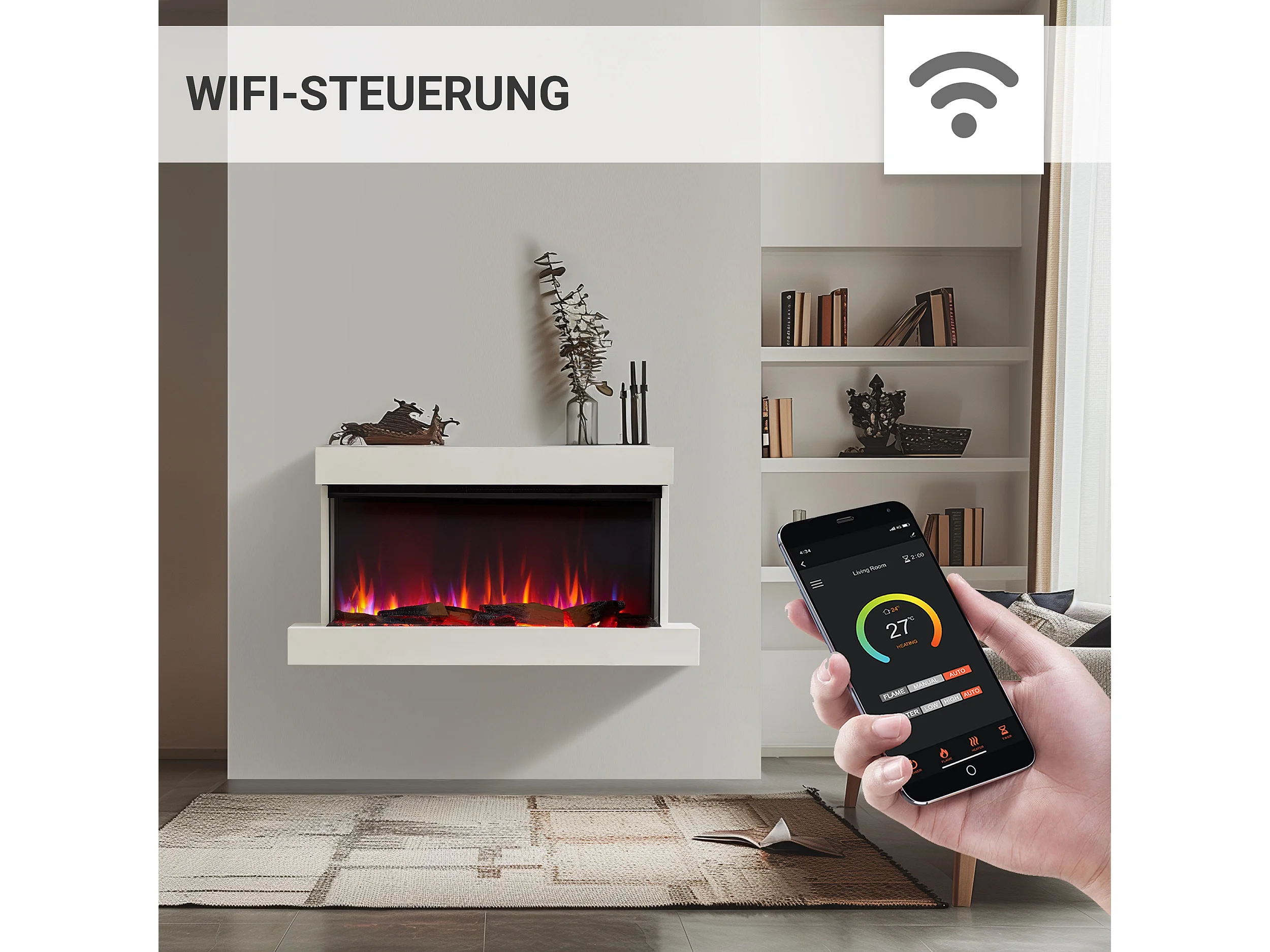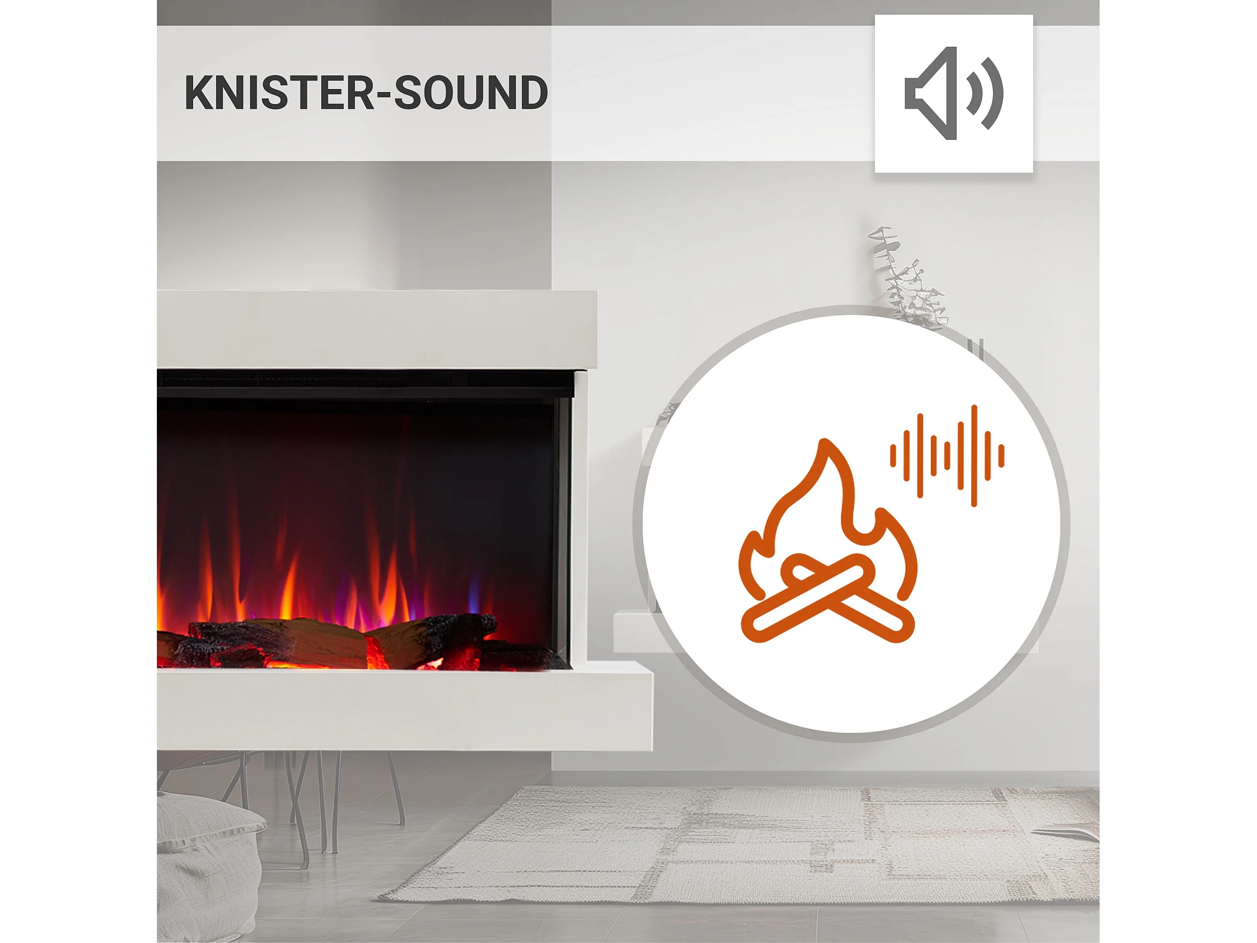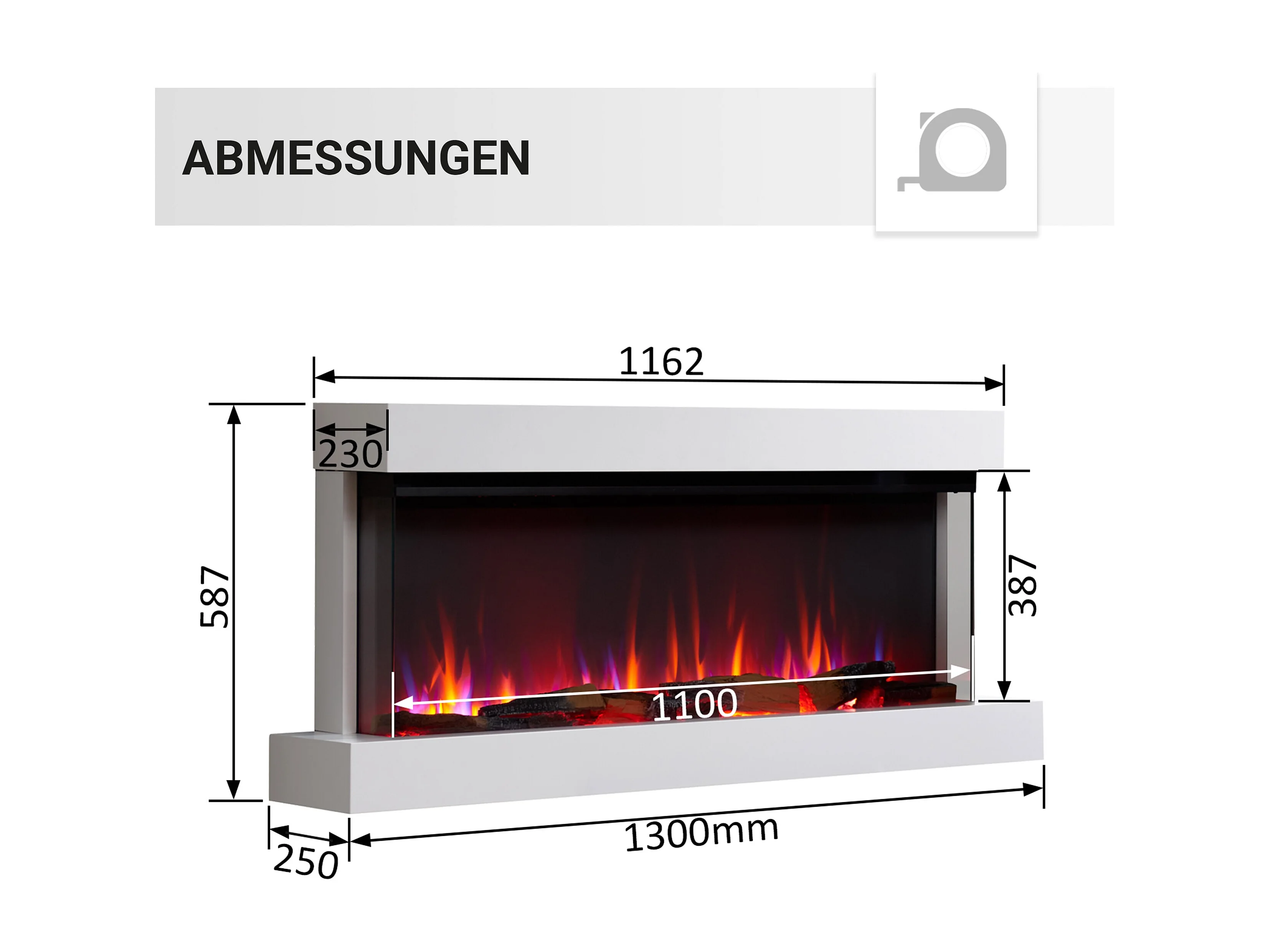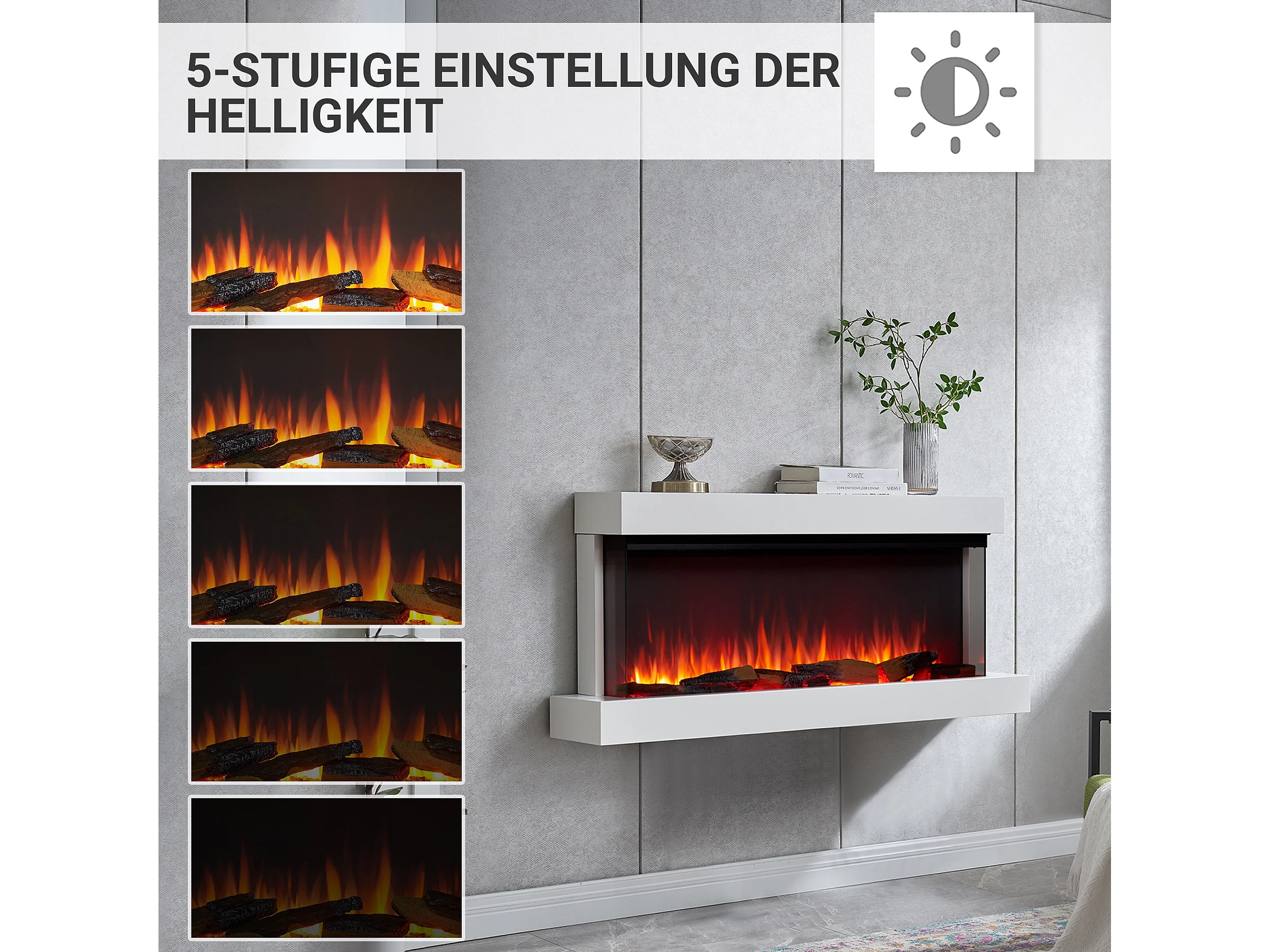 Cheminée électrique BALDERIA Achilles (L) - Cheminée murale avec chauffage - Blanc