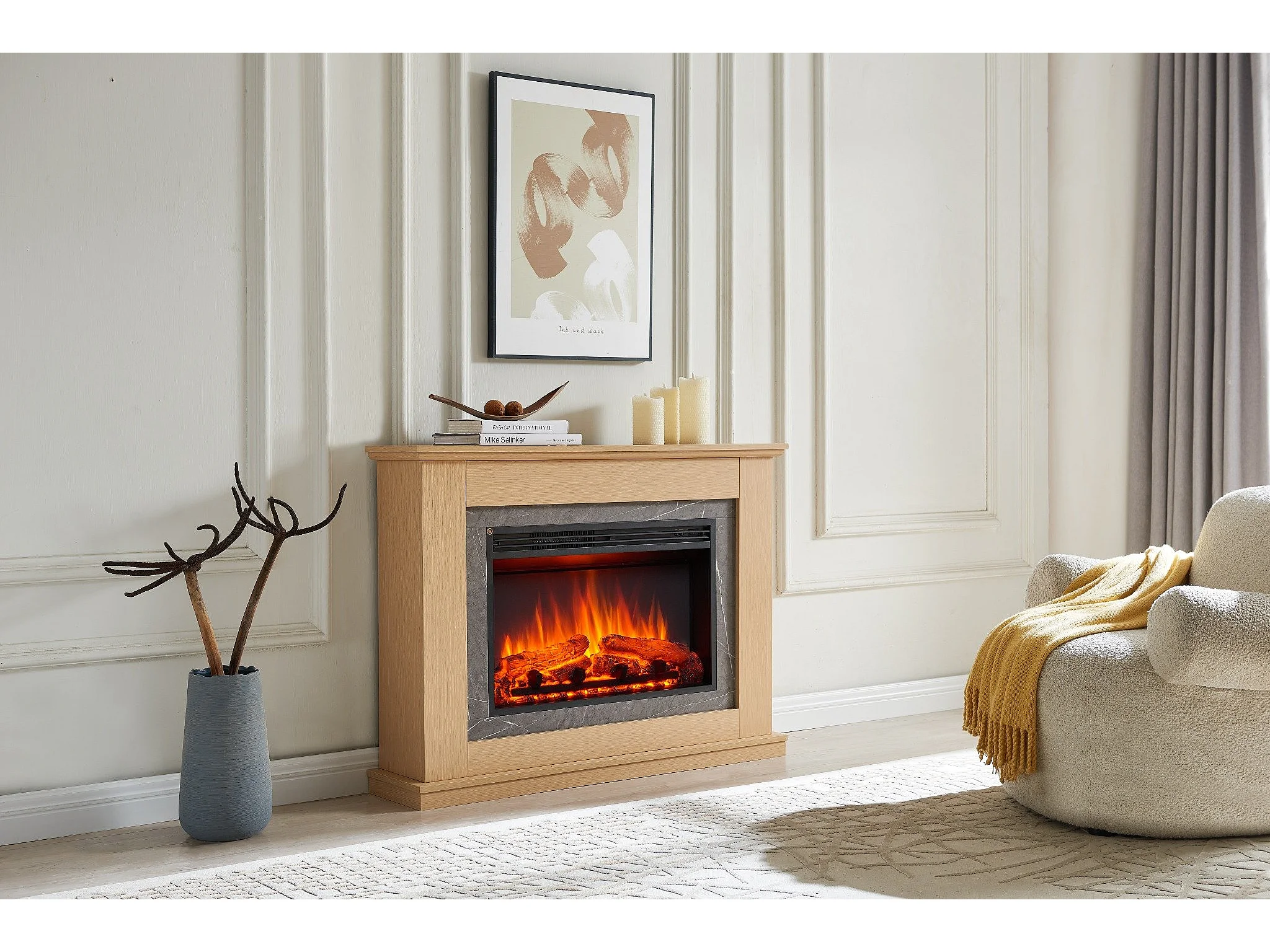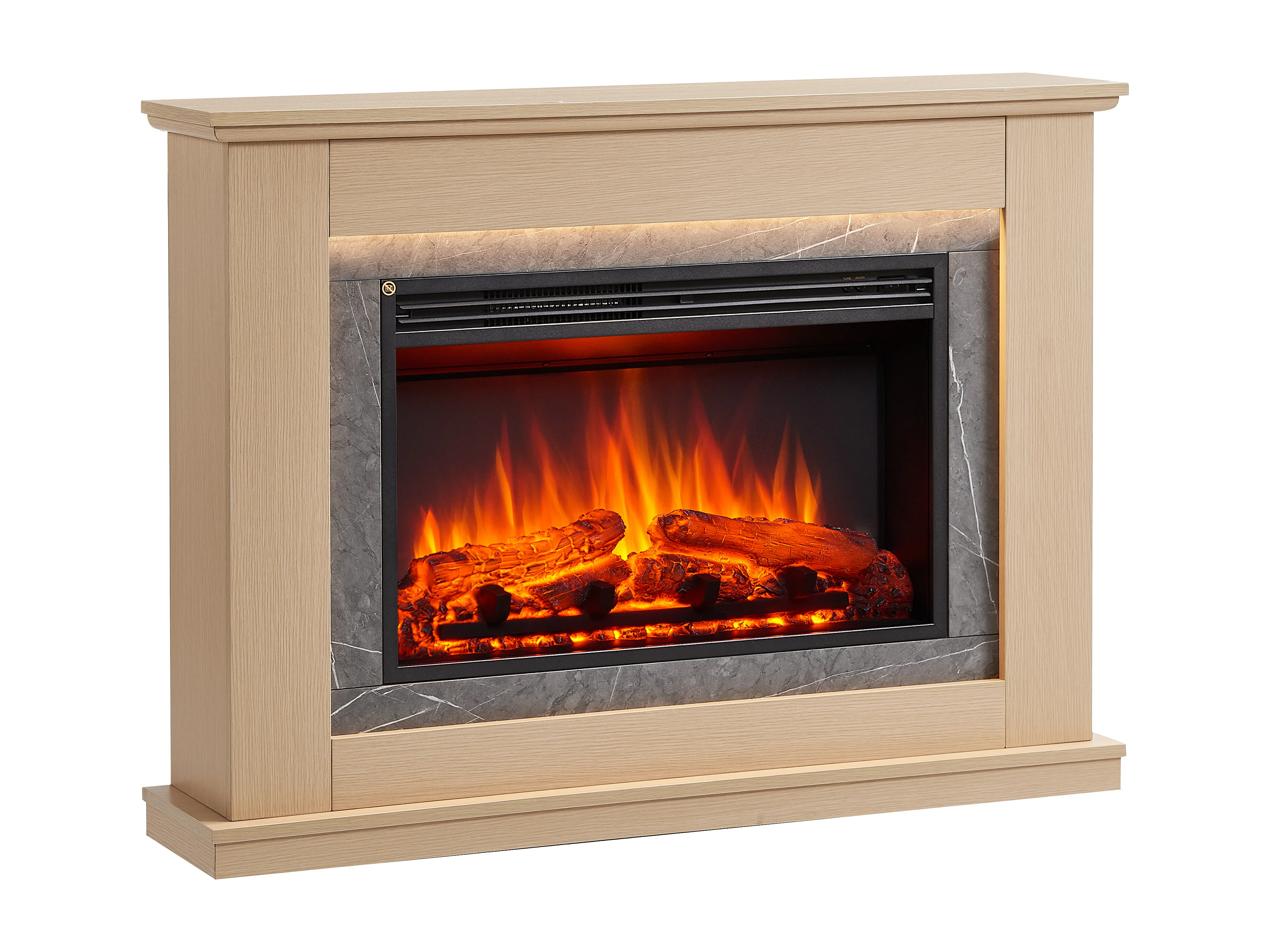 Cheminée électrique BALDERIA Alexios - Cheminée sur pied avec chauffage - Chêne clair