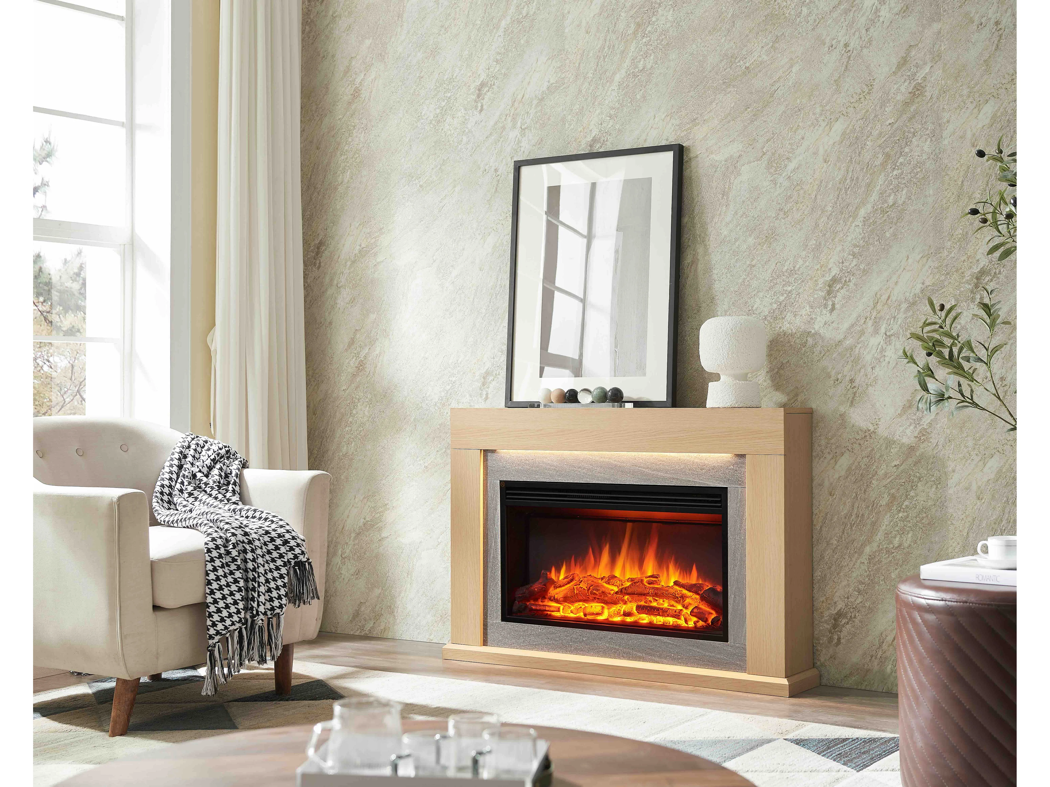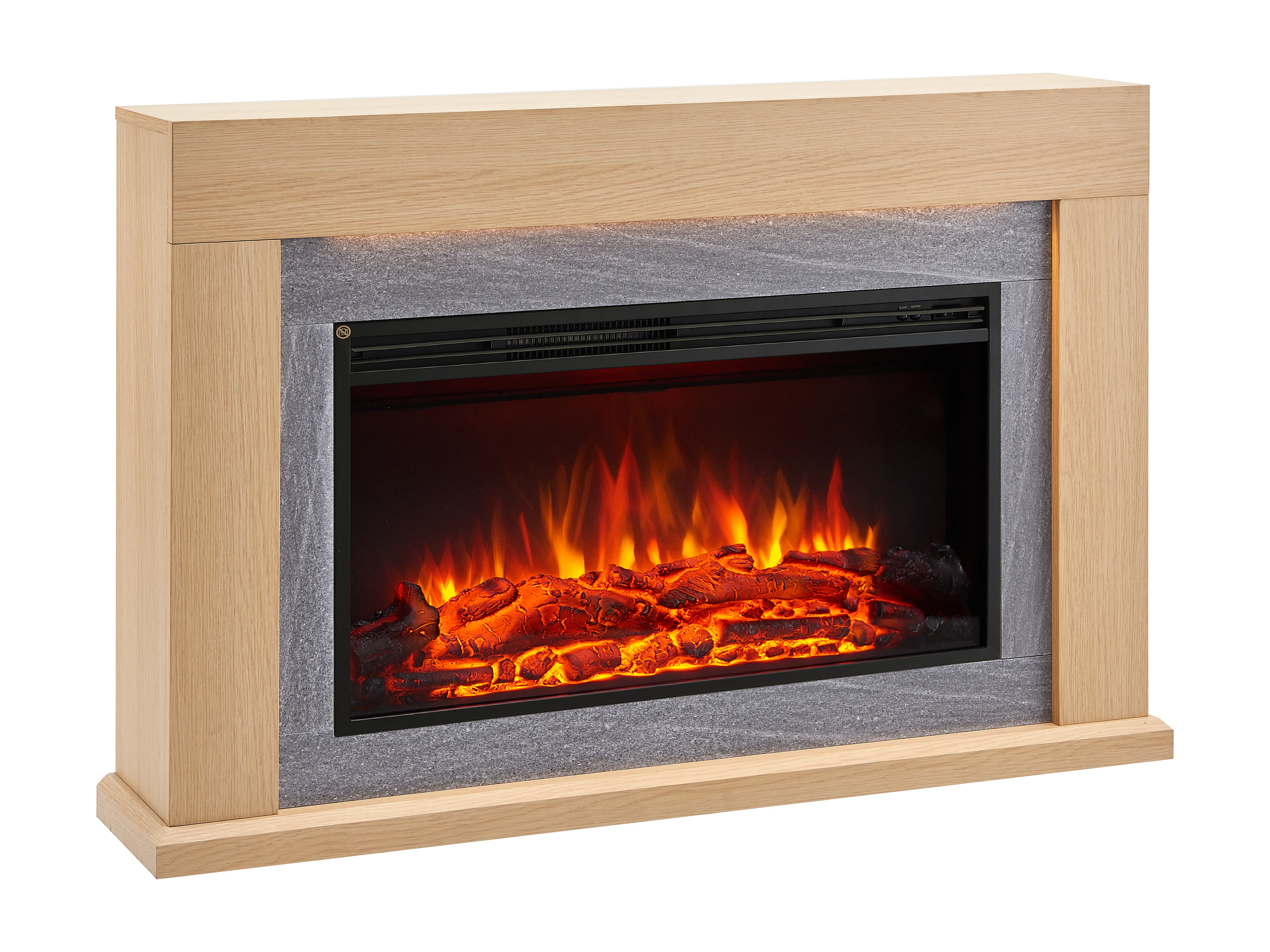 Cheminée électrique BALDERIA Xerxes - Cheminée sur pied, chauffage 2000 W - Chêne clair