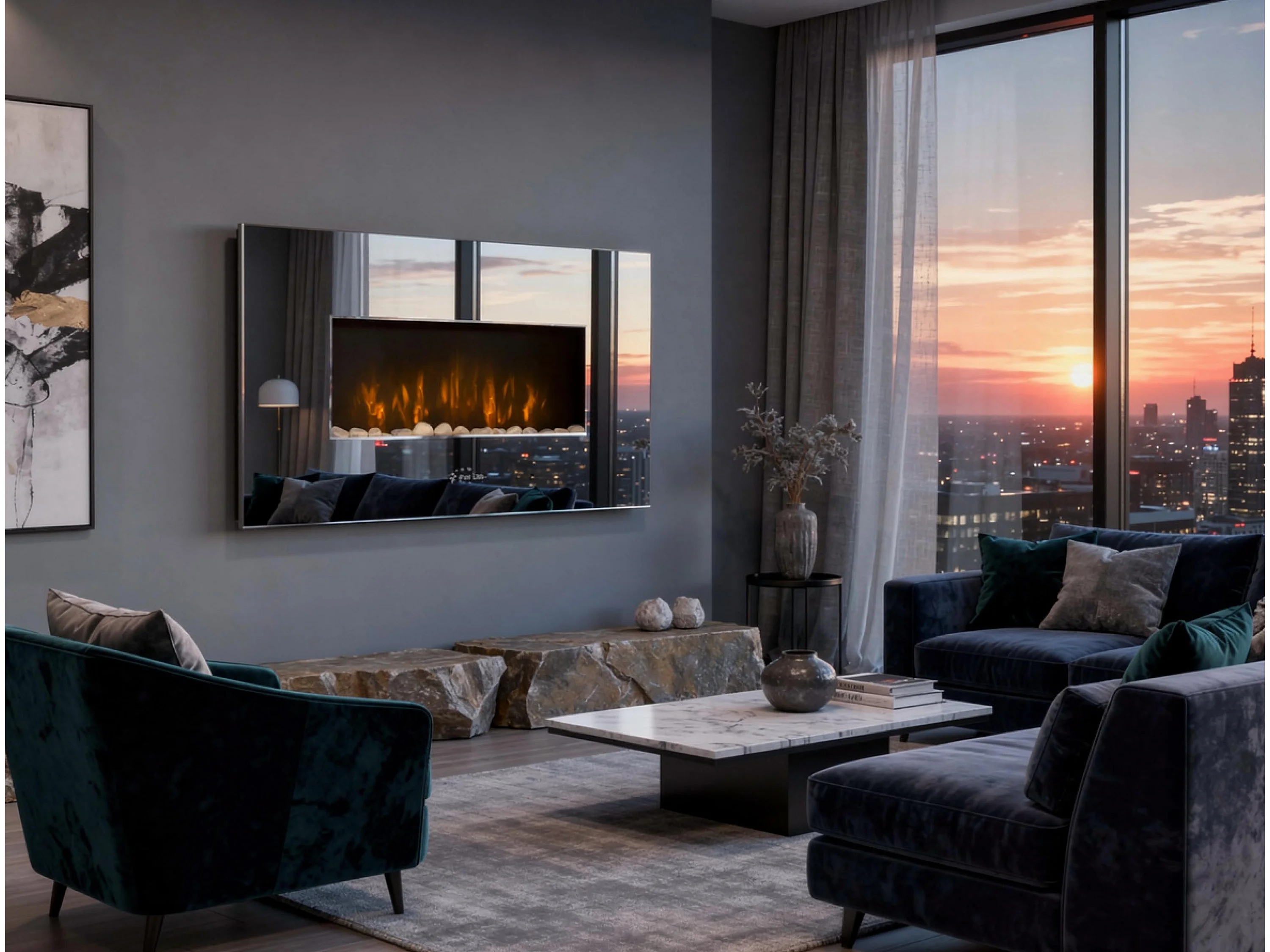 Cheminée électrique en verre trempé effet miroir avec télécommande
