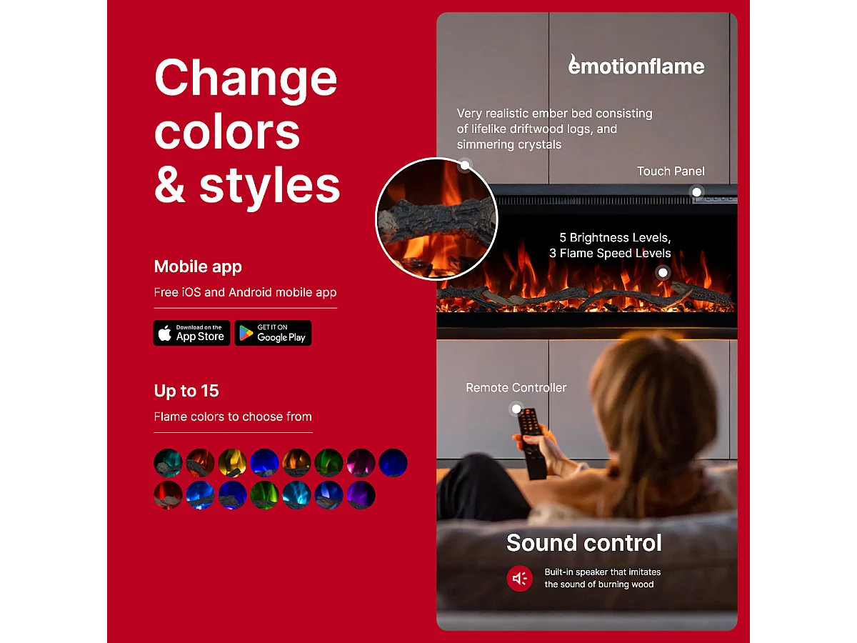 Cheminée électrique REGAL 182 - feu premium - murale et encastrable - 182x35x12 cm - cheminée LED décorative avec chauffage 900/1800 W