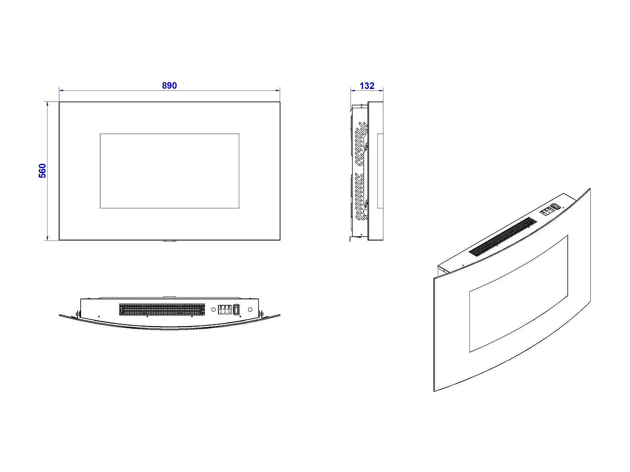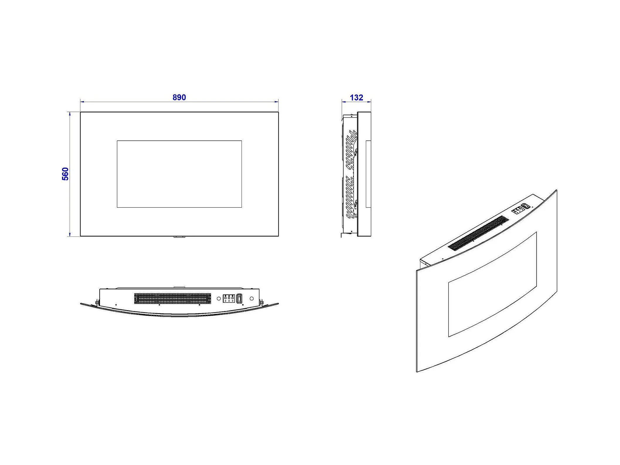 Cheminée Électrique Stockholm, Surface Chauffante 30 m² Made in Italy, 88.5x13.5x56h cm Noir