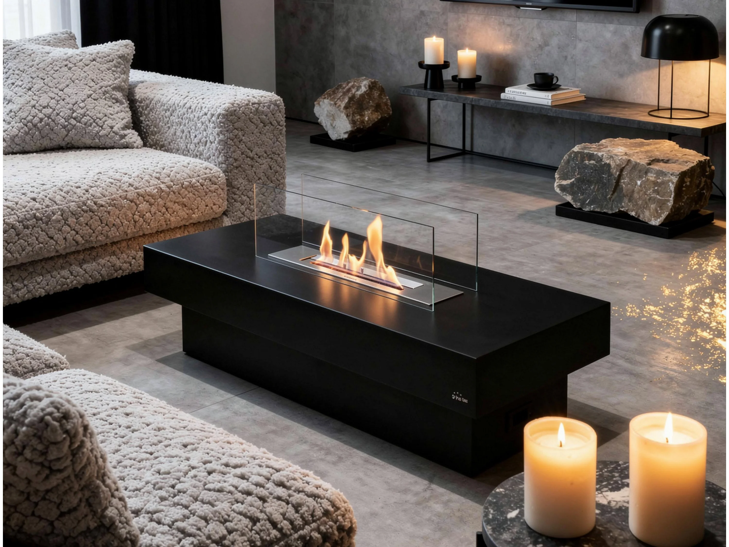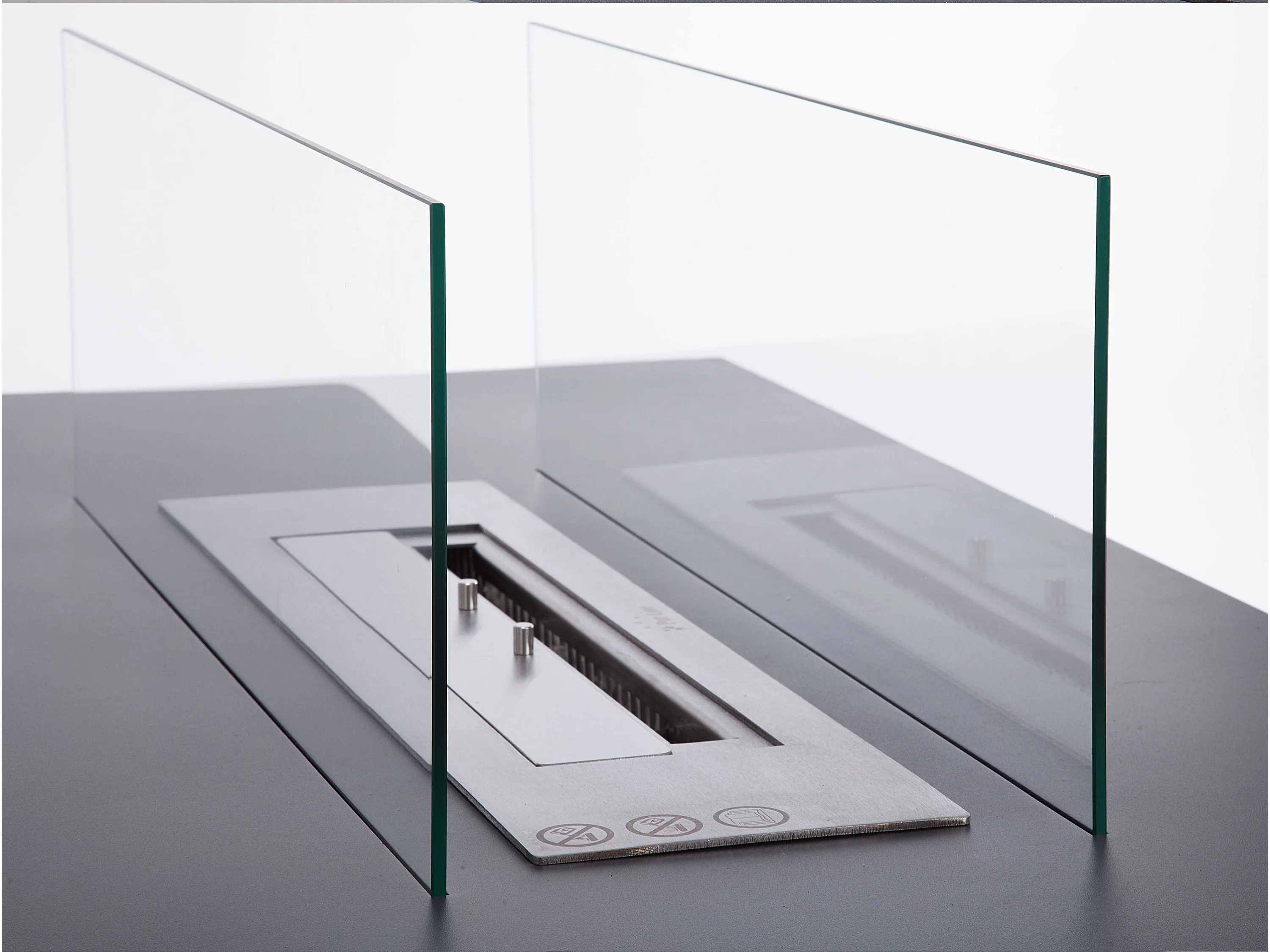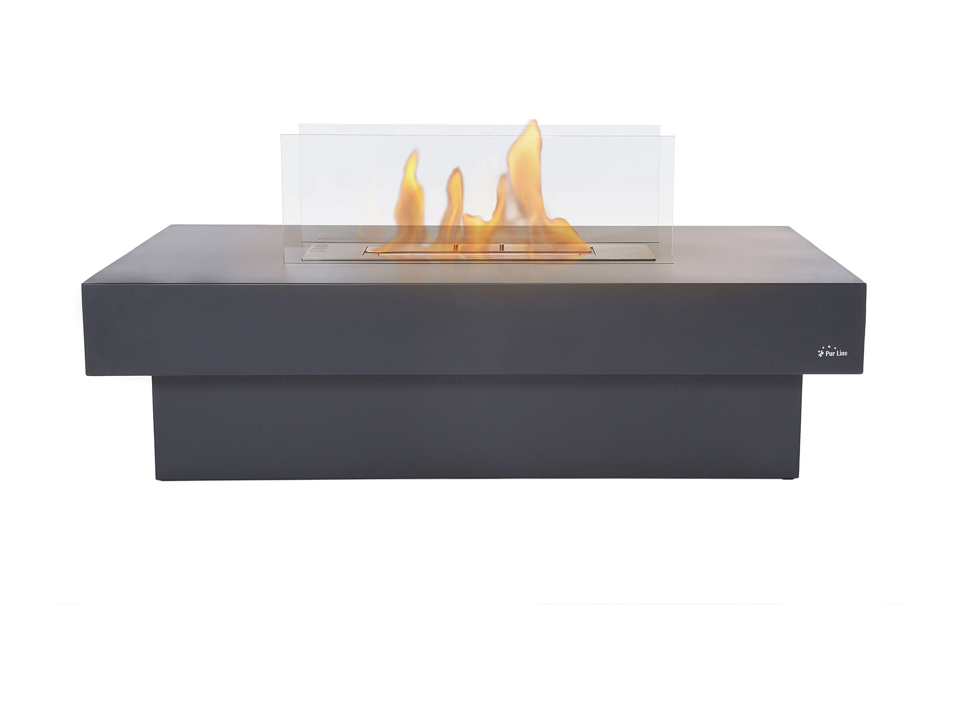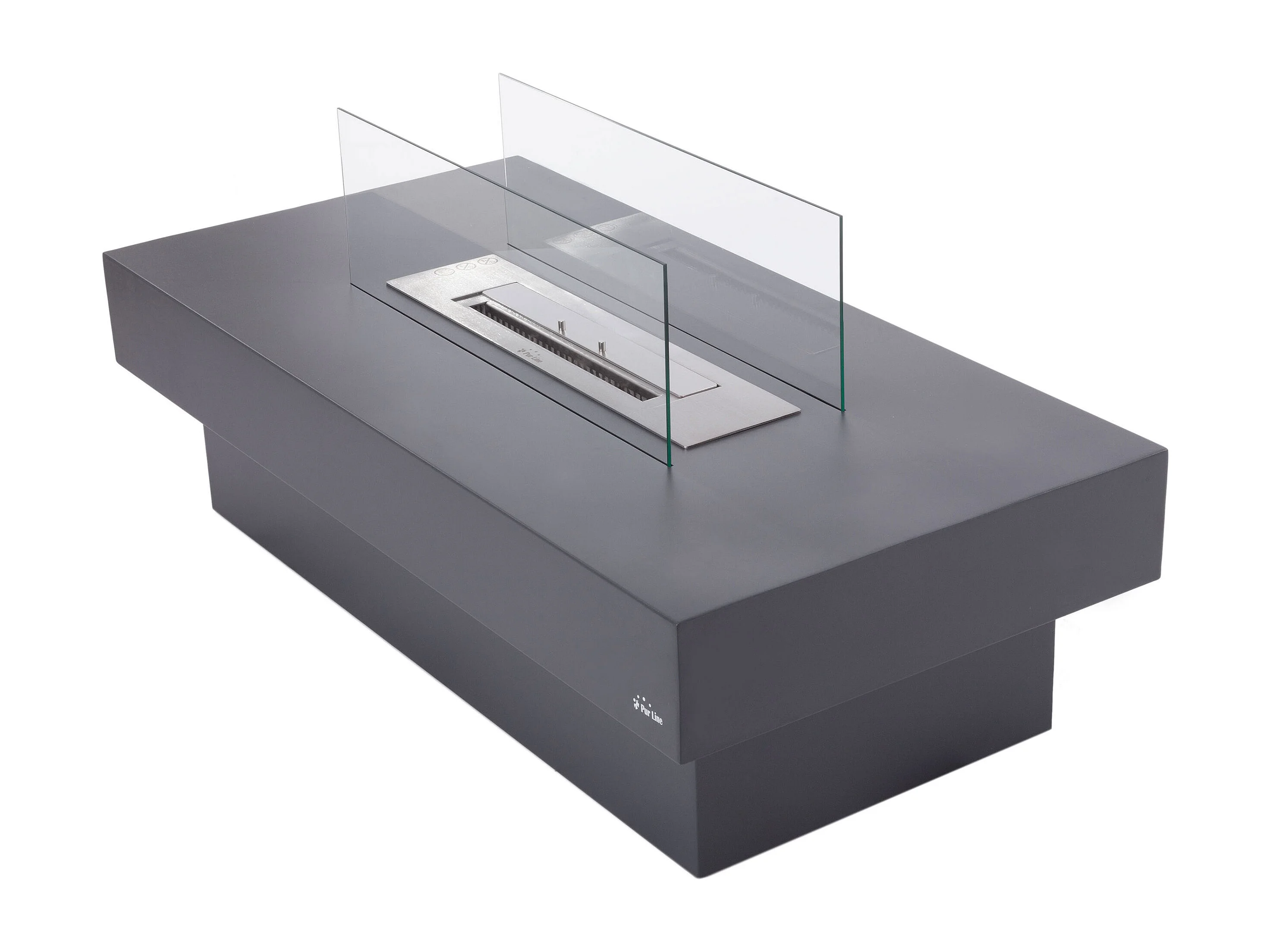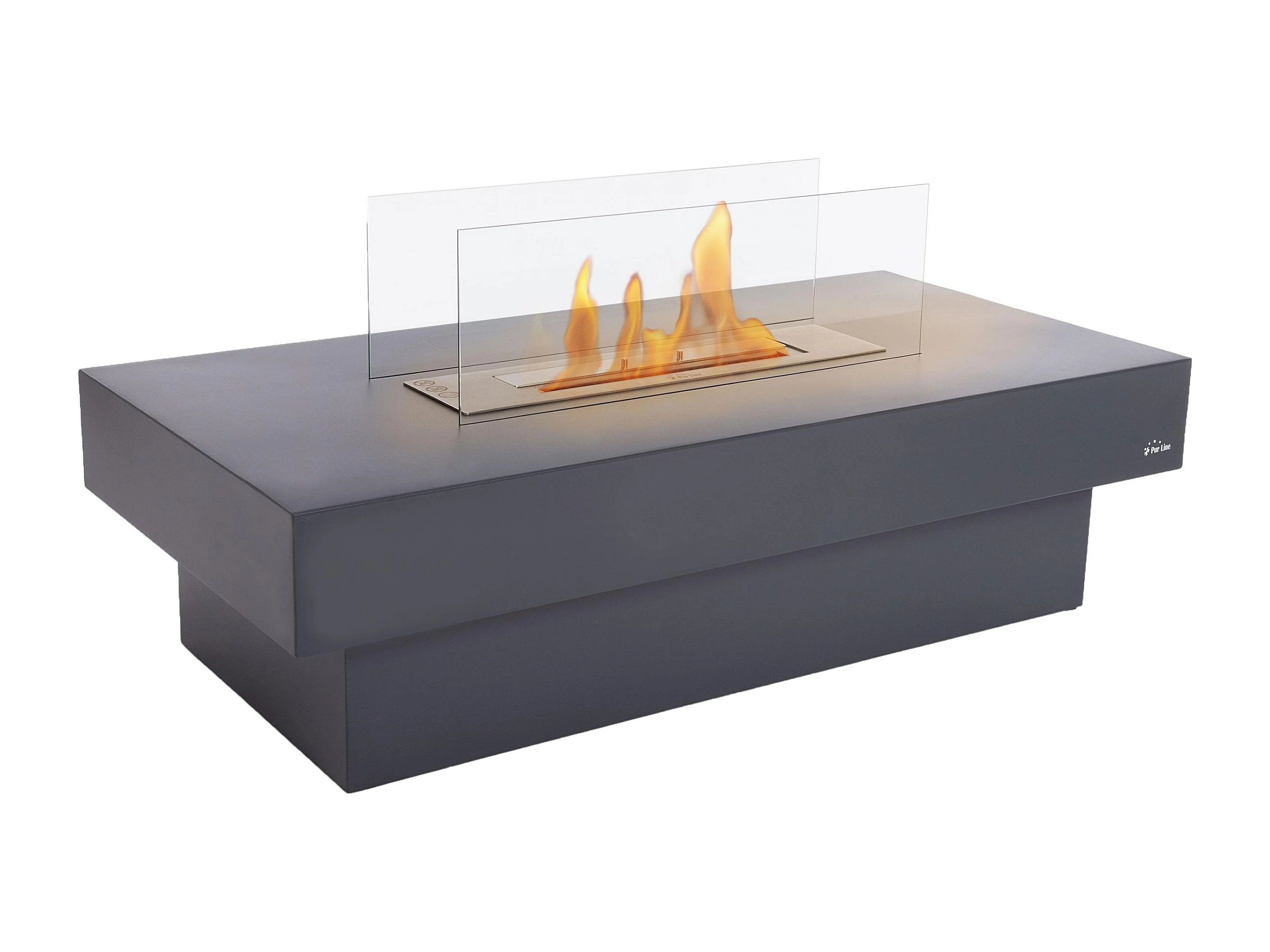 Cheminée éthanol au sol en acier noir avec brûleur central