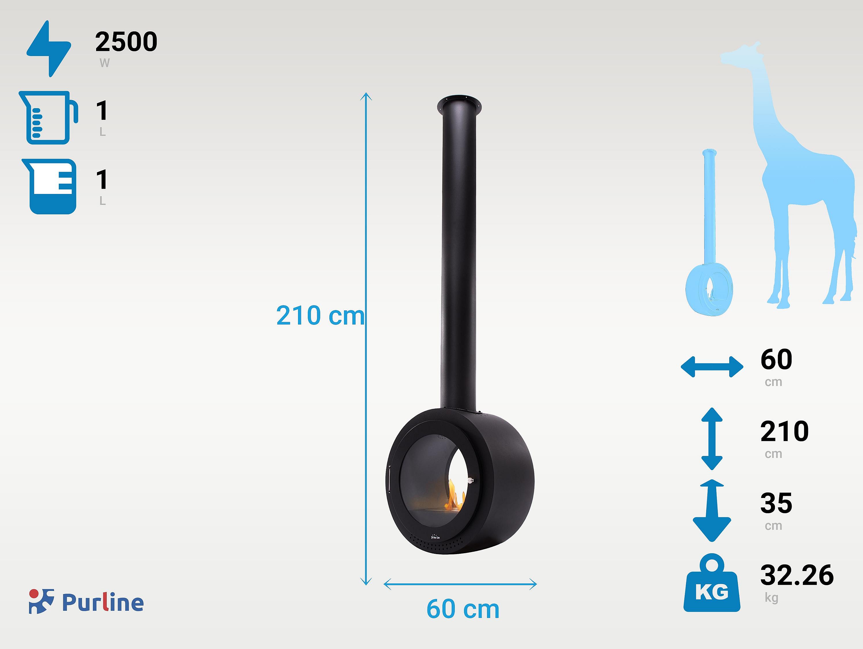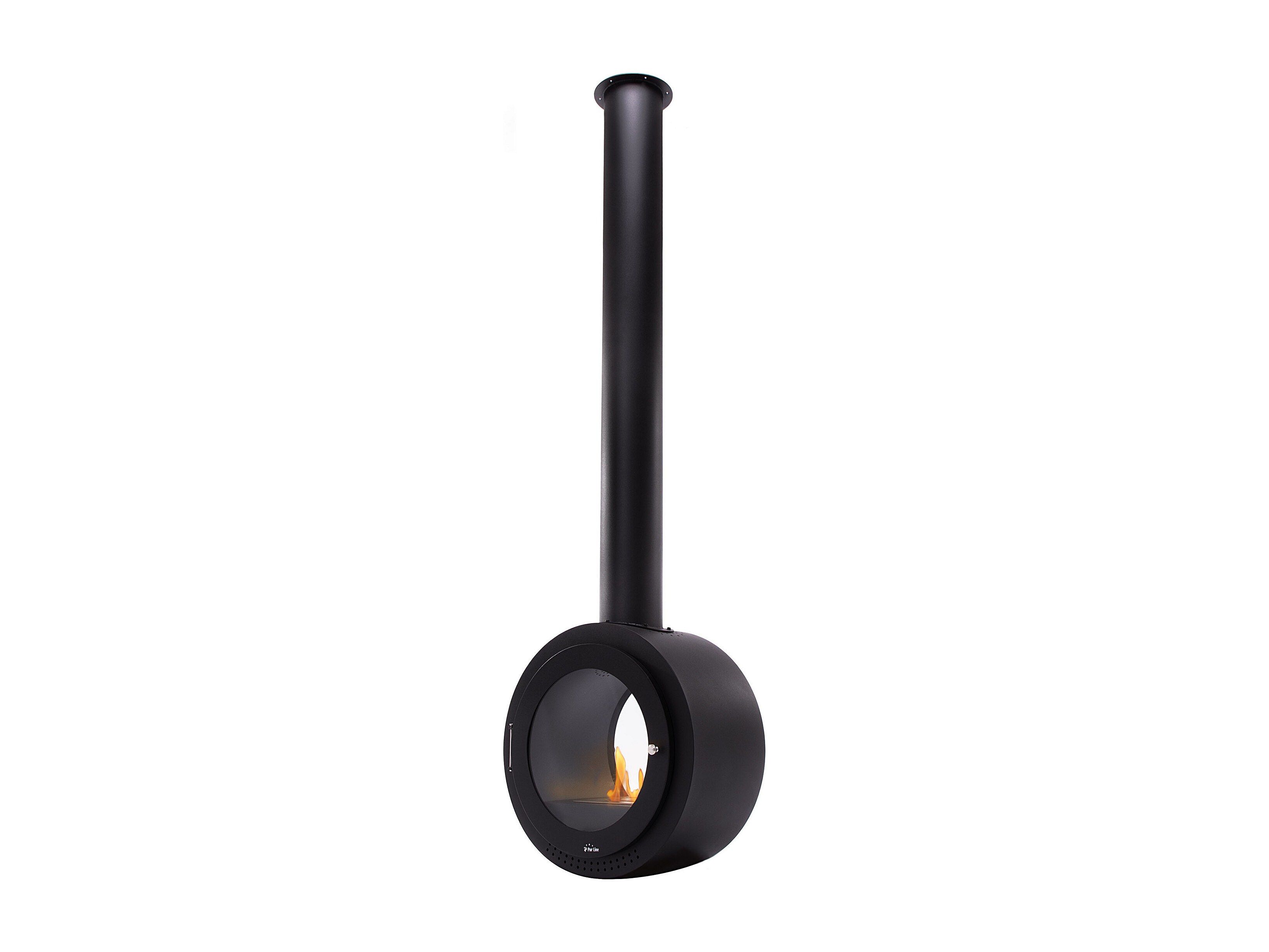 Cheminée à l'éthanol en noir avec des bûches décoratives