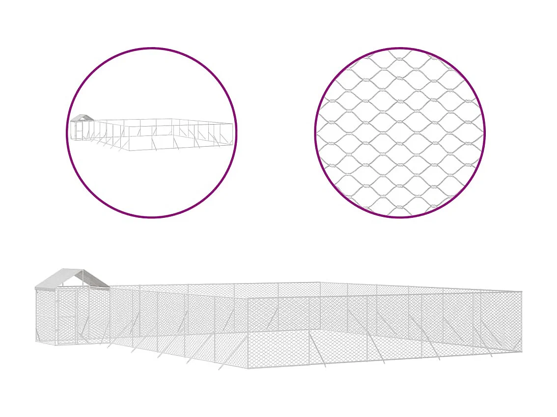 Chenil d'extérieur pour chiens avec toit argenté 12x12x2,5 m