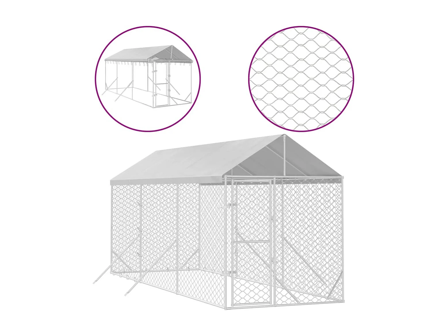 Chenil d'extérieur pour chiens avec toit argenté 12x12x2,5 m