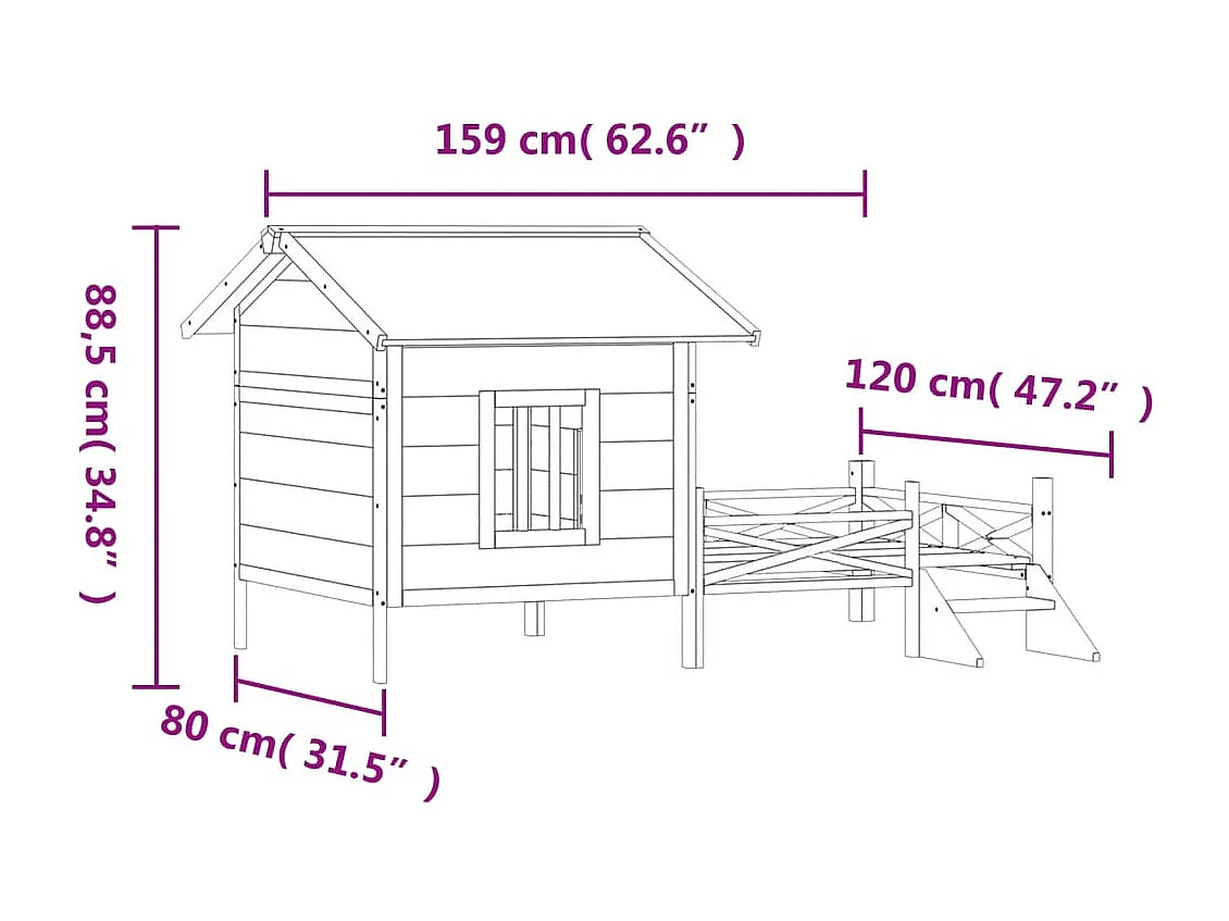 Chenil marron 159x120x88,5 cm bois de pin solide