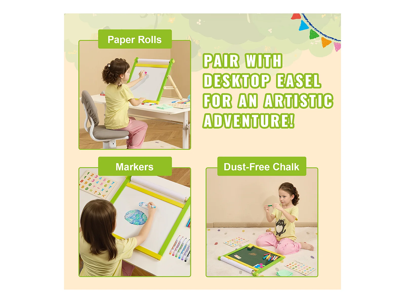 Chevalet d'Art pour Enfants SucceBuy, 32 Pièces de Craie, Marqueurs, Rouleaux de Papier pour Chevalet de Table