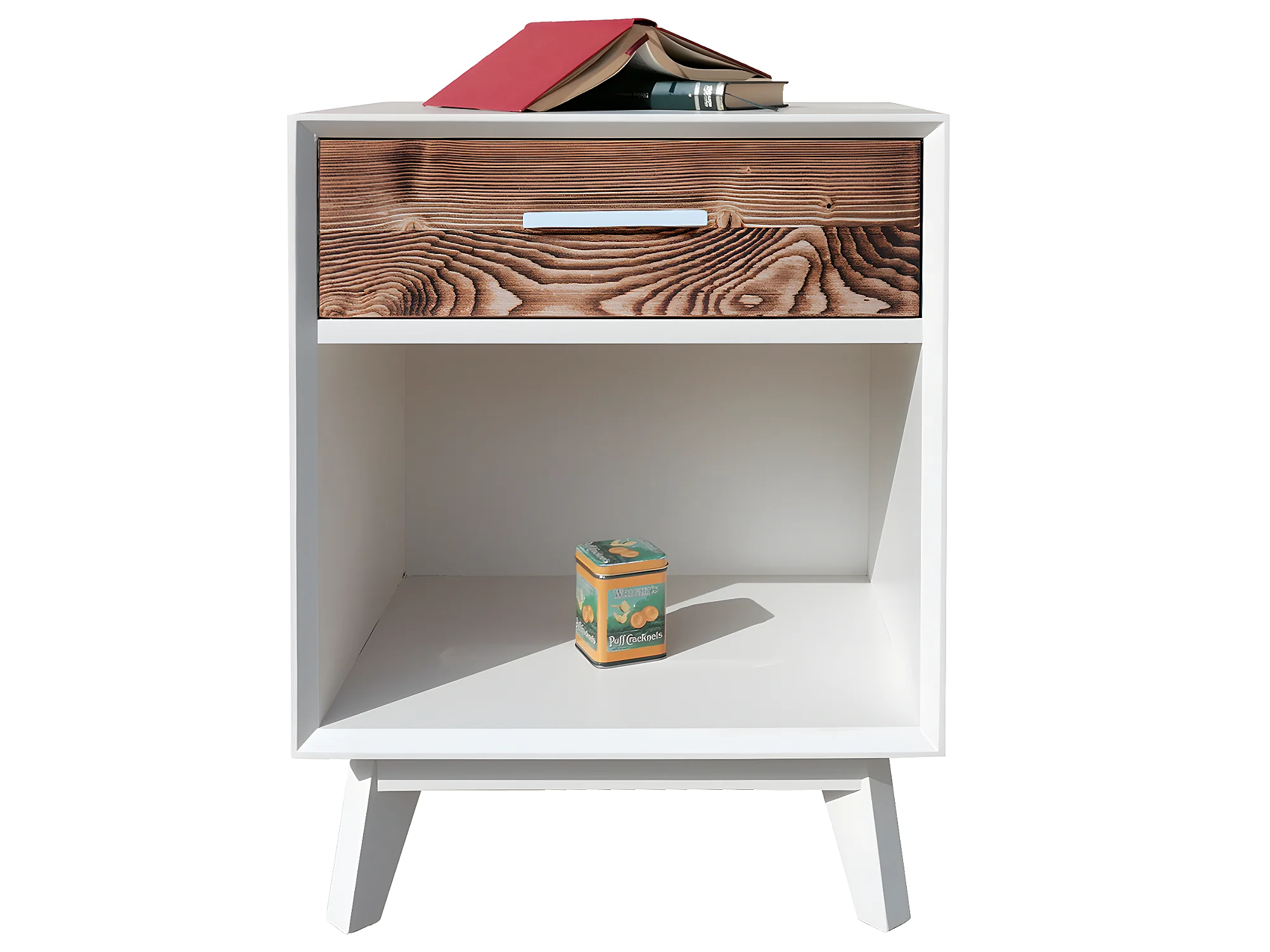 Chevet 1 tiroir 1 niche Nostalgie - Blanc et bois