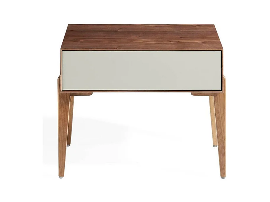 Chevet 1 tiroir bois laqué et bois noyer Muza-Couleur Country